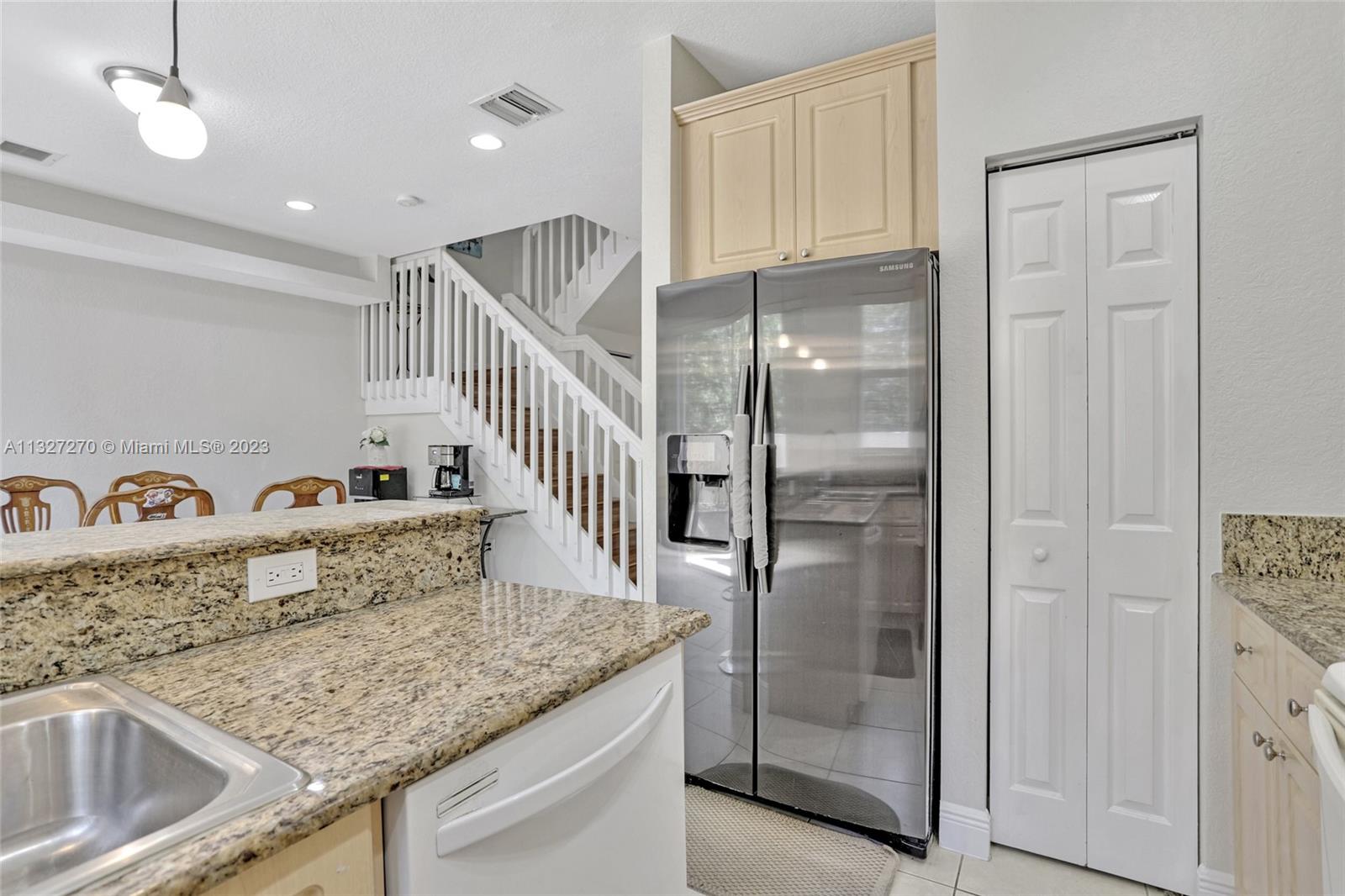 Beautiful townhouse in the heart of Davie- Great centralized location that is close to colleges with easy access to highways. This 3 bedroom, 2.5 bath, 1 car garage, features - New AC and water heater, an indoor laundry room, no carpet with tile up and downstairs, and laminate flooring on stairs, granite countertop, fenced yard with brick pavers and grassy area, Main bedroom with trey ceilings and frameless shower doors, and full hurricane protection. Community offers pool, tot lot, and a tranquil lake surrounded by trees. Only home for sale in Hidden Cove.