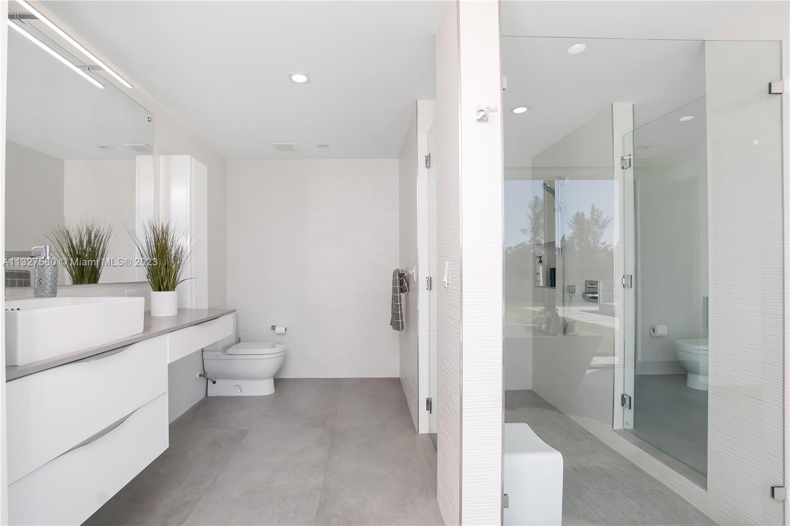 Entertainers delight with nothing left to be desired. Acre of private lakefront property, fully fenced with a heated salt pool, raised spa, and beach entry. Outdoor summer kitchen w/ marble patio w/ electric screens. Lavish in your private 1st-floor owner's suite complete with exercise room/yoga studio, office, and luxurious bath w/ vessel tub, oversized shower, and windows on the water. All additional bedrooms are ensuite, boasting designer materials. Separate guest house with 2 bedrooms, living room, kitchen, laundry, and a 2-car garage. Get ready to entertain! Additional game room/loft on the second level and access to rooftop terraces. European kitchen w/ the finest of amenities. Onyx wall, dual fireplace, full-impact protection, Savant smart home, exterior lighting, and modern design.