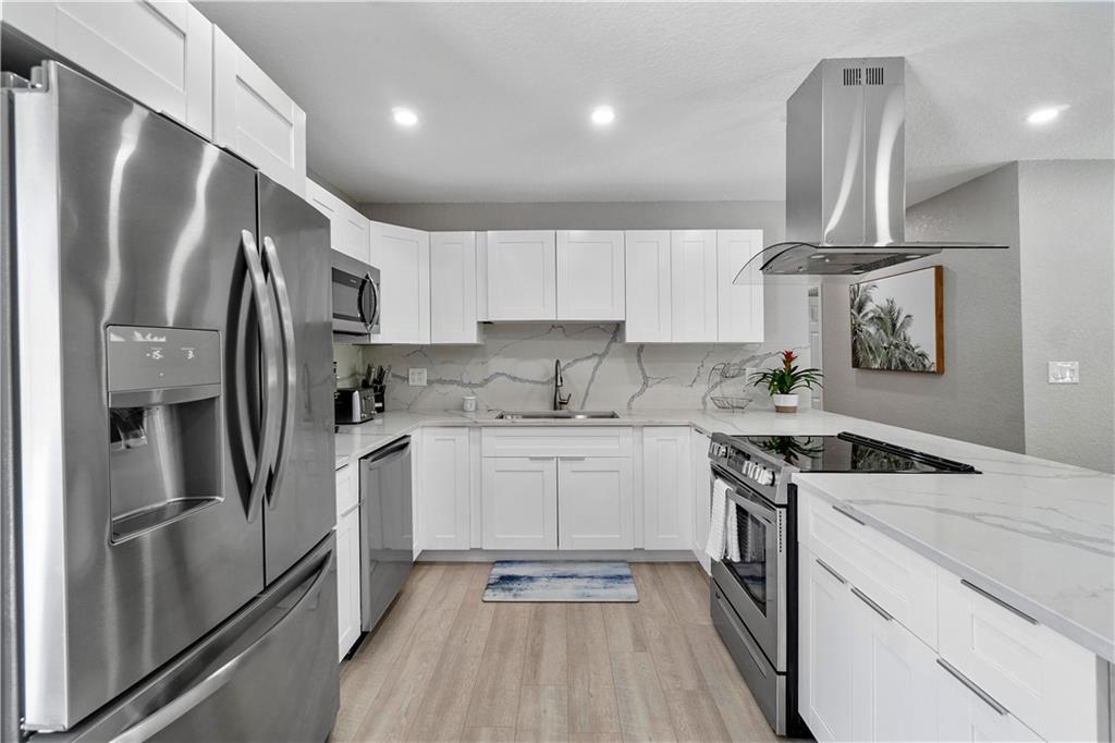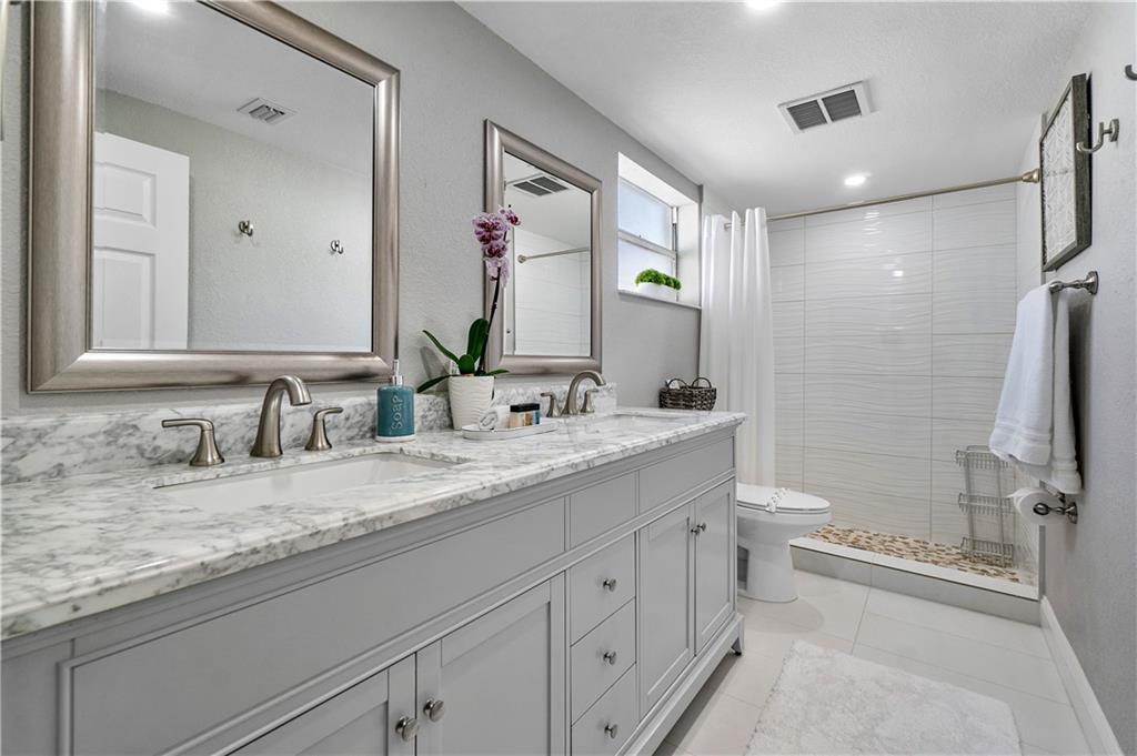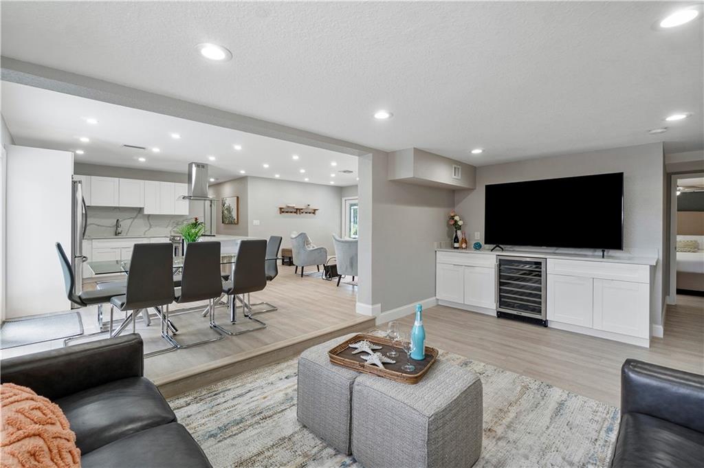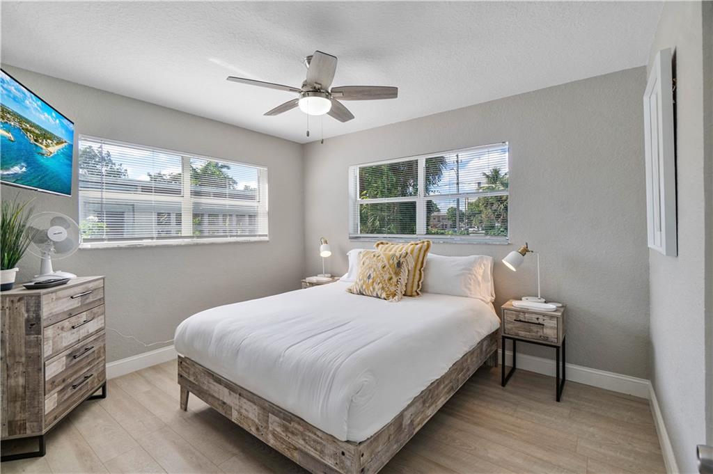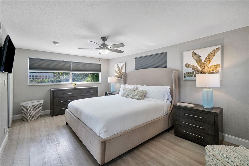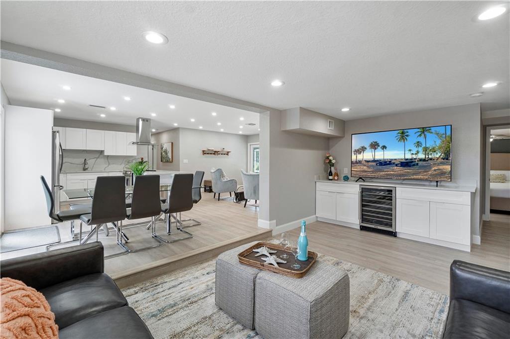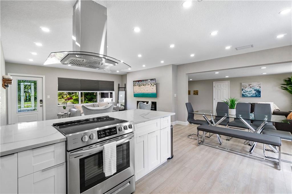 Stunning family beach house or Vacation rental opportunity! Gorgeously, updated home w/ brand new hurricane impact windows, new roof, new kitchen and baths. Features open concept with chef's kitchen, Calacatta marble counters/backsplash, new stainless appliances, water resistant vinyl electric fireplace, bar w/ wine cooler, Two primary rooms with en suites and split floorplan. Primary has large walk in closet, dual sinks, cabana bath, inside laundry room with new washer and dryer, pool resurfaced with new diamond bright tiles, modern fence for privacy, remodeled landscape, new fixtures and new water heater. Home only a mile from the beach in hot redeveloped Pompano east of US1, across from city park, golf course, boat ramp and restaurants. Walkable Harbor Village neighborhood!
