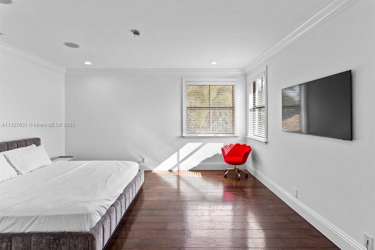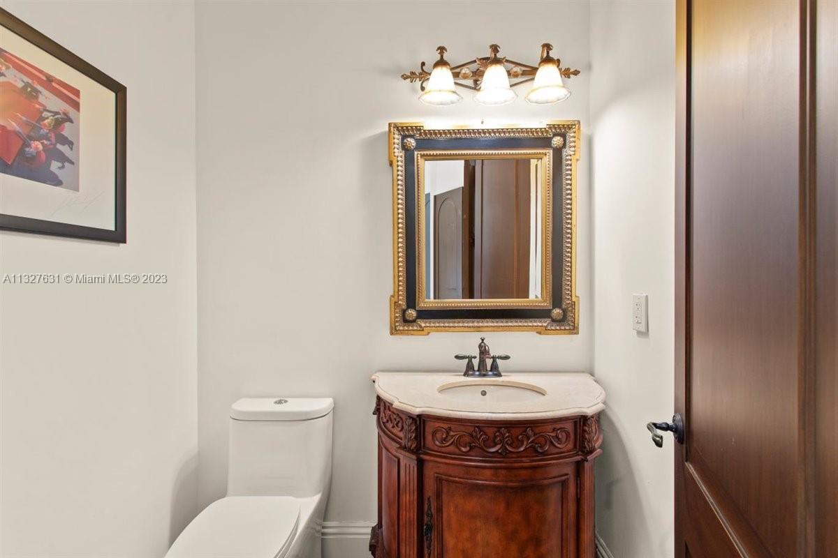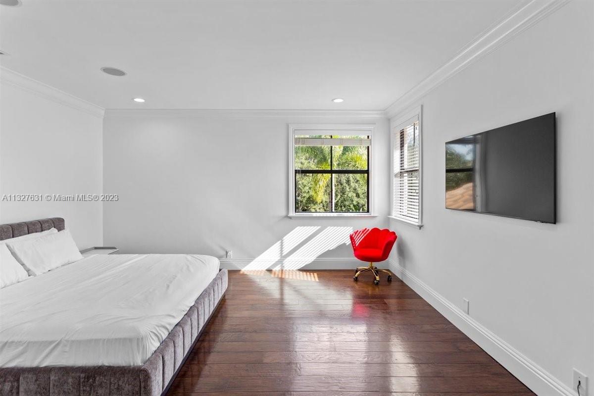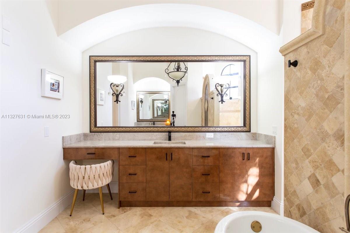 Beautiful 8247 sf Mediterranean Tuscan-style villa nestled in a private gated community featuring only 34 homes. Home is situated on cul-de-sac. Features 5 bedrooms+office and 6.5 baths. Oversized primary bedroom on ground floor w/ exquisite primary ensuite. In-law/guest suite equipped with private kitchen, living room, bathroom and private entrance. Remodeled chef's kitchen with beautiful quartz countertops, high-end appliances and gas stove. 3 bedrooms upstairs all w/ attached baths. Impact windows and doors. State-of-the-art security system and Sonos speakers integrated throughout. Step outside to your private outdoor tropical oasis w/ a fully equipped summer kitchen, resort-style lagoon saltwater pool and jacuzzi overlooking a lake and beautiful sunset views. Community Tennis court.
