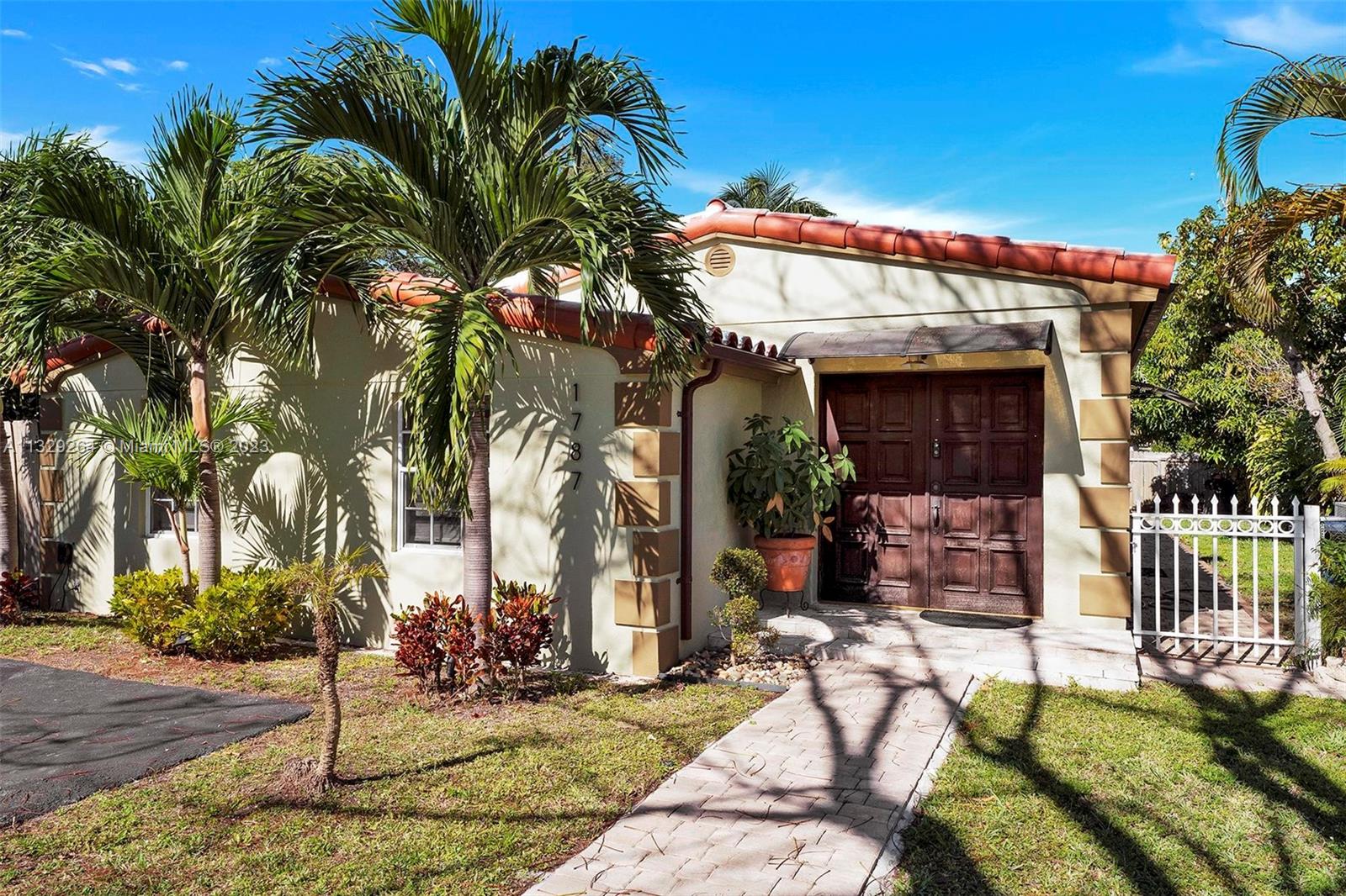 Charming, elegant, mediterranean inspired 3 bedroom/2 bath home in the heart of North Miami Beach. This home has been completely remodeled and upgraded throughout, has an additional 4th room used as a laundry/ utility space, and has an exceptional outdoor entertaining space as well. Walk outside through the French doors to a serene garden patio with complete privacy, enjoy a massive outdoor bar/barbecue area with TV, additional (third) outdoor bathroom, large storage shed, and plenty of additional space for a pool, and add-ons. This home is around the corner from Skylake plaza; Publix, Starbucks, restaurants, banks, gym, etc and walking distance to Shul. Schedule an appointment today!