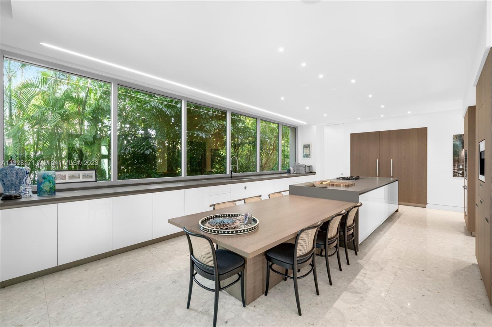 Masterful design and luxury are showcased in this immaculate 7,178 SF custom-built residence located in highly sought-after Key Biscayne. The 5-BD, 6.5-BA home offers an expansive layout with voluminous ceilings and sophisticated contemporary design. A gourmet Italian kitchen by Binova Cucine features all Miele appliances and a gas cooktop. Italian Quarella interior floors exemplify the no-expense-spared designer finishes throughout, graced by unexpected luxuries such as a whole house water purifying/filtration system, Crestron Smart Home system, Lutron power window treatments and EV charging port. The interior flows into private outdoor spaces with a 60 ft. lap pool, infinity hot tub, Roman travertine and Timura wood. Every detail of this home was carefully selected and quality crafted.