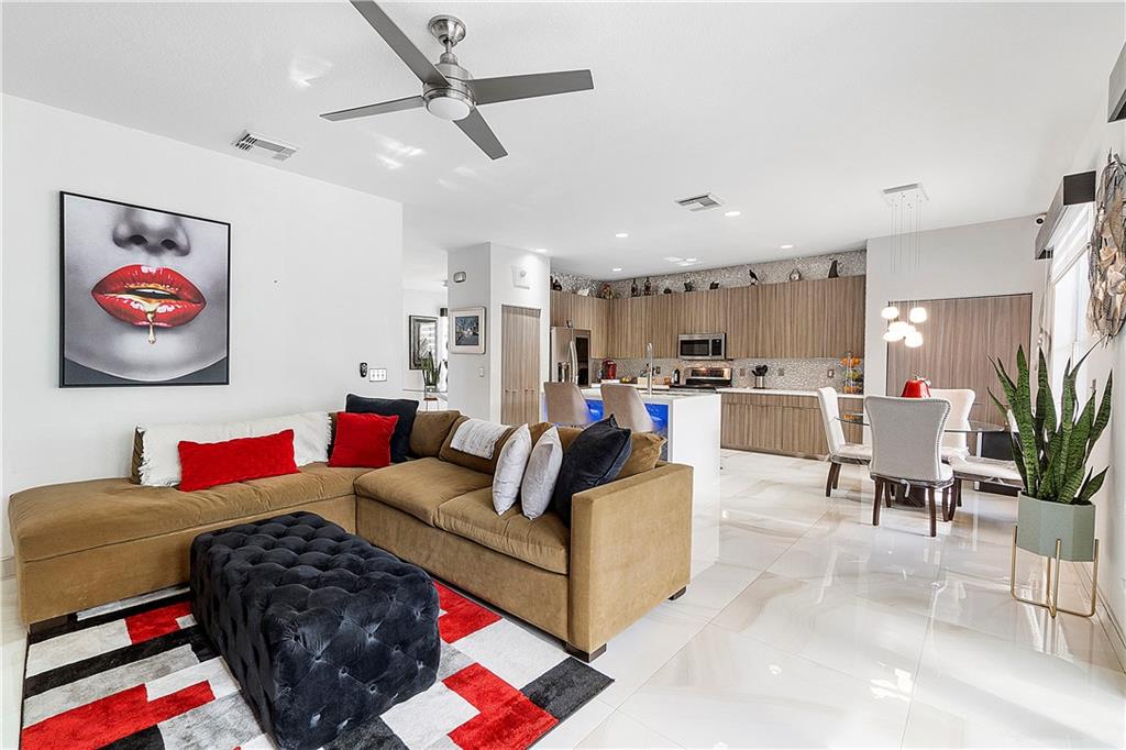 Completely remodeled and beautifully designed one-of-a-kind 5/3 home at Silver Falls perfect for entertaining. This home offers a modern home lifestyle, high-end upgrades throughout, and a custom design perfect for family and friends. This home features large marble tiles, beautiful glass staircase, custom closets, built-in storage, separate laundry room on the second floor, entry-level bedroom and bathroom, separate outside storage, modern kitchen with breakfast nook and an island, outside kitchen with both gas and coal grills, modern bathrooms, security cameras, and so much more. HOA includes internet and provides the best amenities Resort Style Clubhouse with pool, basketball court, tennis courts, playground, walking trails and fitness center.