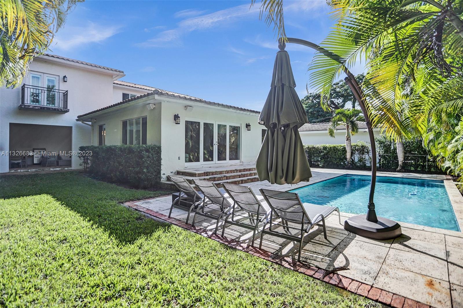 Welcome to this stunning two-story house nestled in upscale area of Coral Gables in the exclusive Riviera Golf Country Club area. 5 Bed, 4.5 Baths including a maid's quarters and laundry room. Enjoy the formal living, dining, and cozy family room with a working chimney. Contemporary eat-in kitchen with high end appliances and spacious baths. Private den/office and separate kid's study area. 6 parking spaces including 2 indoor garages. Private backyard with a beautiful large pool and covered terrace. Don't miss this opportunity to own an exquisite home in upscale Coral Gables in Miami Dade, FL. Built in 1951 and completely gut renovated/Effective year built in 2001 (See documents attached).