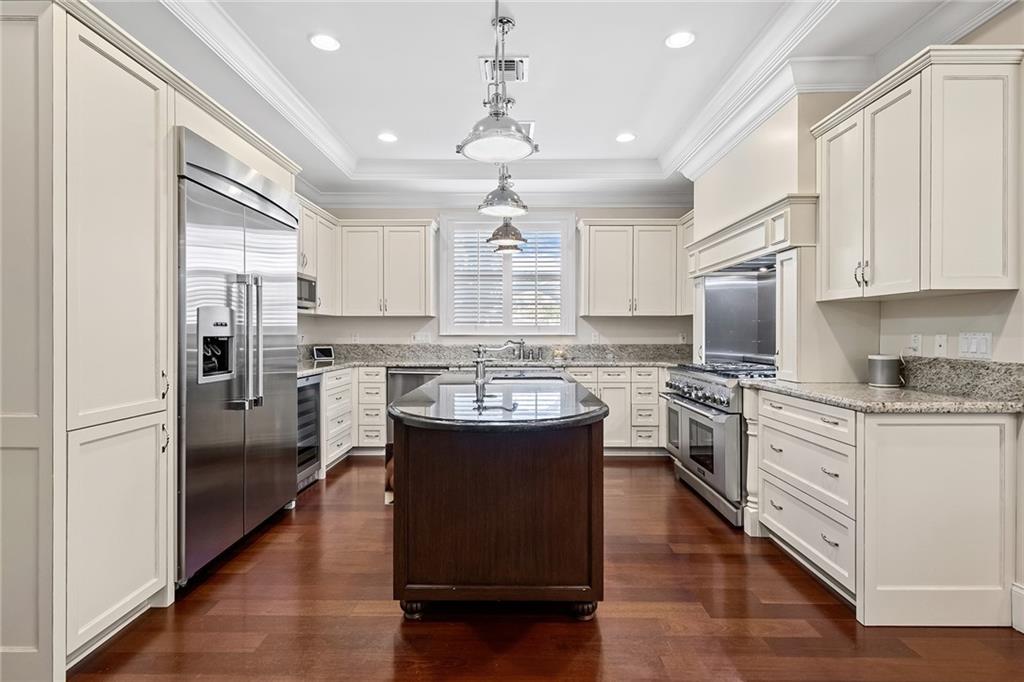 • Интерьер:WetBar, BreakfastBar, BuiltinFeatures, BedroomonMainLevel, BreakfastArea, ClosetCabinetry, DiningArea, SeparateFormalDiningRoom, DualSinks, Fireplace, HighCeilings, JettedTub, KitchenIsland, SittingAreainMaster, SeparateShower, UpperLevelMaster, WalkInClosets