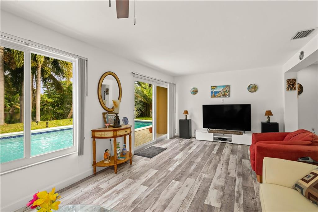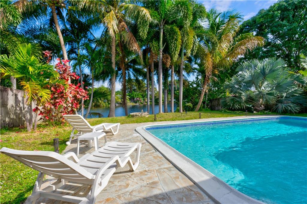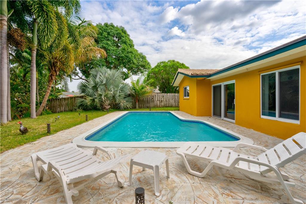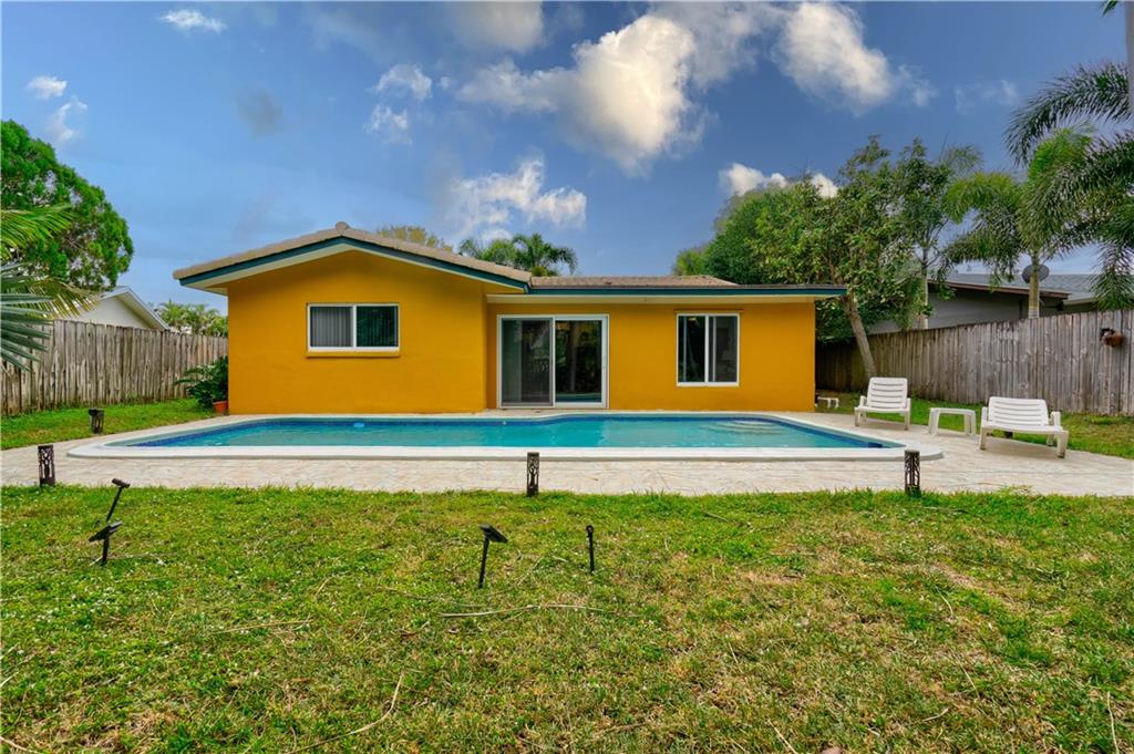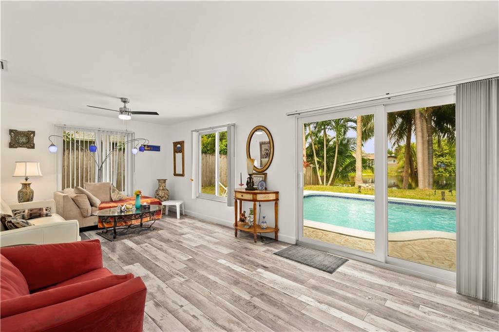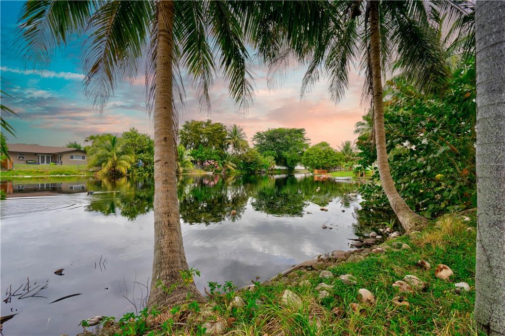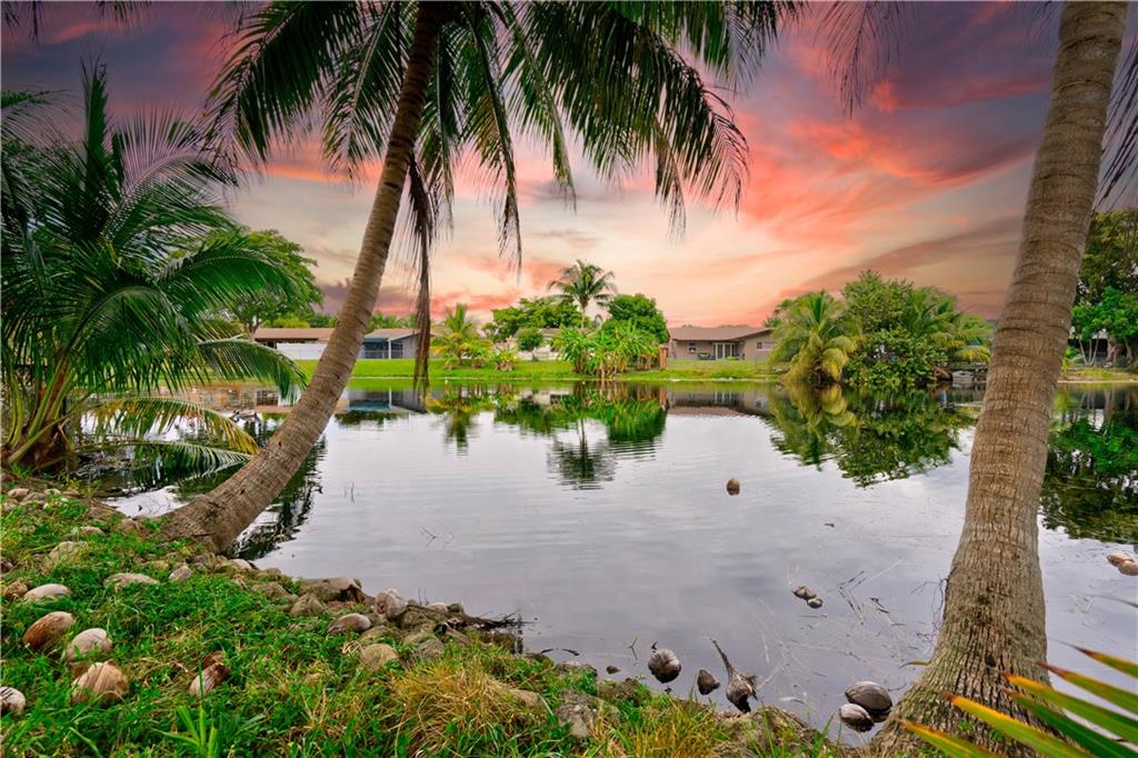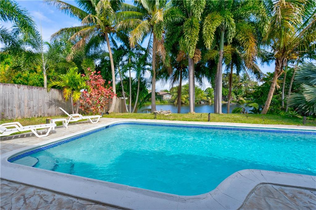 Drastic Price Reduction - Don't miss out on this beautiful home with tropical backyard in Palm Aire Village West with NO HOA! Impact Glass windows and Hurricane garage door, barrel tile roof, newer LVT flooring in all the bedrooms. This home has been meticulously maintained with three bedrooms 2 bathrooms, large kitchen with granite countertops and Florida room opening to pool and views of the water. Pool has been redone with new surfacing and tile with extra decking added around pool. Feel like you live in paradise year round or great Airbnb potential. Close to airports, restaurants, schools and a short drive to Florida's beautiful beaches. Don't miss out from this home and the gorgeous view from this backyard!