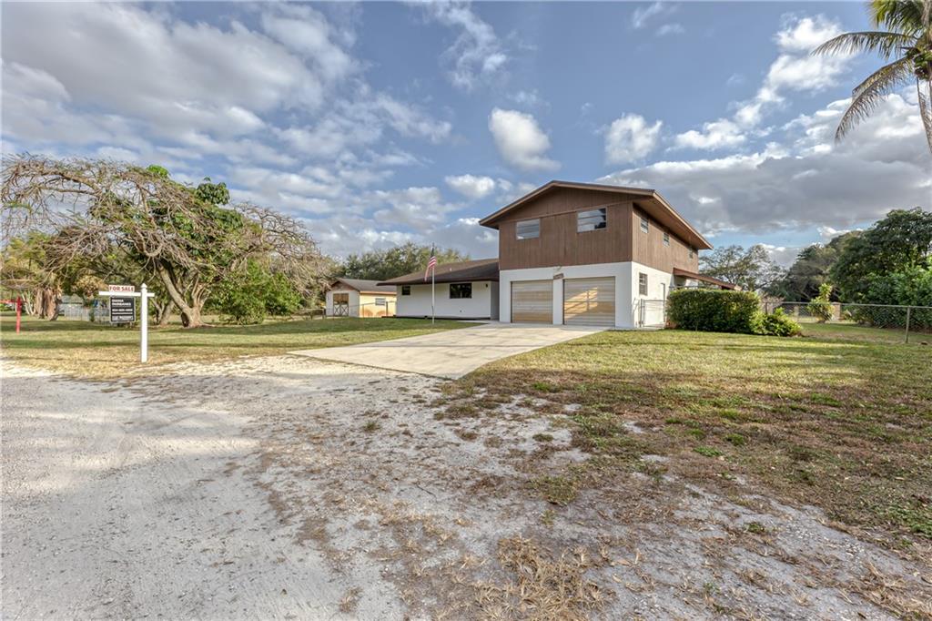 Spacious 2 story ranch style house sits on almost 1 acre of land located in central Davie. Zoned agricultural, permits horses and animals. Downstairs master bedroom has connected den/nursery room. Upstairs has 2 very large bedrooms, connected den with wet bar with option to separate out as desired. Huge detached shed/workshop has plumbing and plenty of storage for boats, toys, and RV's. Plans available to convert shed to living space. All new: septic tank & drain field & hot water heater. Two zone AC units. Beautiful hand-built, working fireplace and lots of wood throughout home gives a cozy, homey feel. This home has been owned by the same family and well-maintained for three generations.