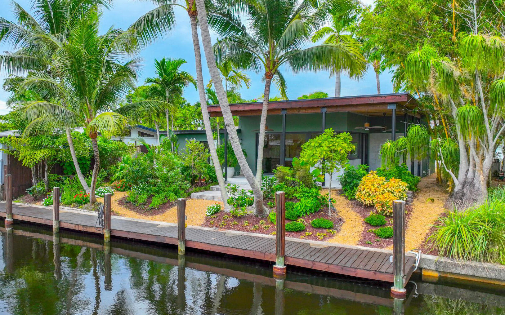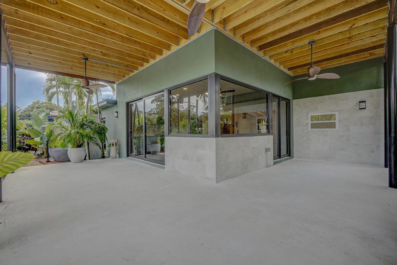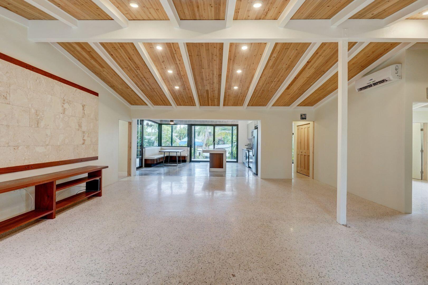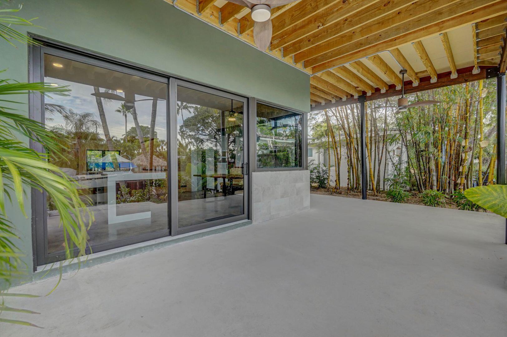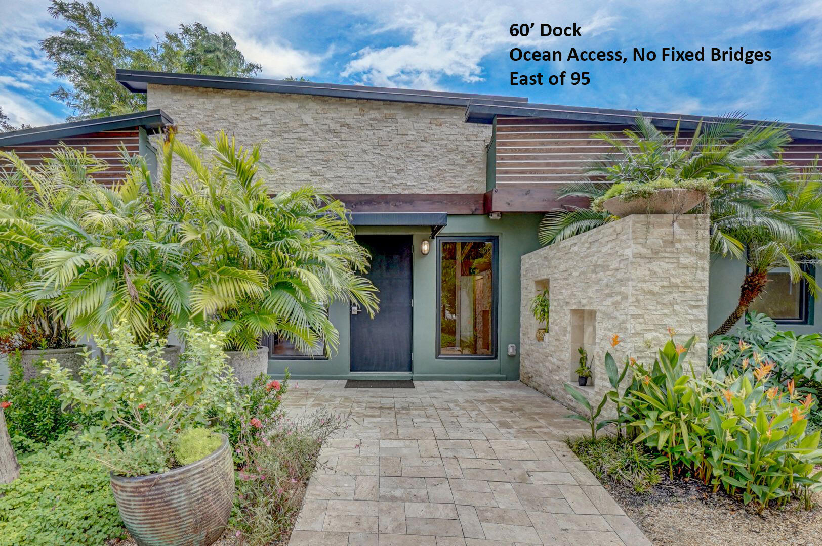 :Ocean access property E of 95 in sought after Shady Banks. No fixed bridges. No flood zone. This mid century modern home has been fully renovated with new 17' X 18' kitchen addition and 650 sf covered patio. Restored terrazzo floors and smooth plaster walls throughout. New whole house PGT impact windows and doors. New highly efficient, duct free mini-split AC system. All solid wood interior doors. Kitchen features built in banquette with solid mahogany table, kitchen island with 4 inch quartz countertop (seats 4), Kraus stainless farmhouse sink, marble backsplash and European cabinetry with mahogany accents. Whole house LED lighting inside and out. Outdoor spa w/ Japanese 2 person soaking tub & outdoor shower with tankless water heater.