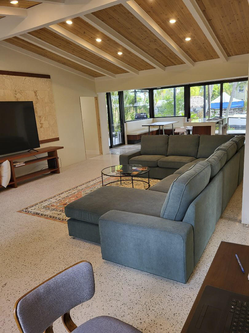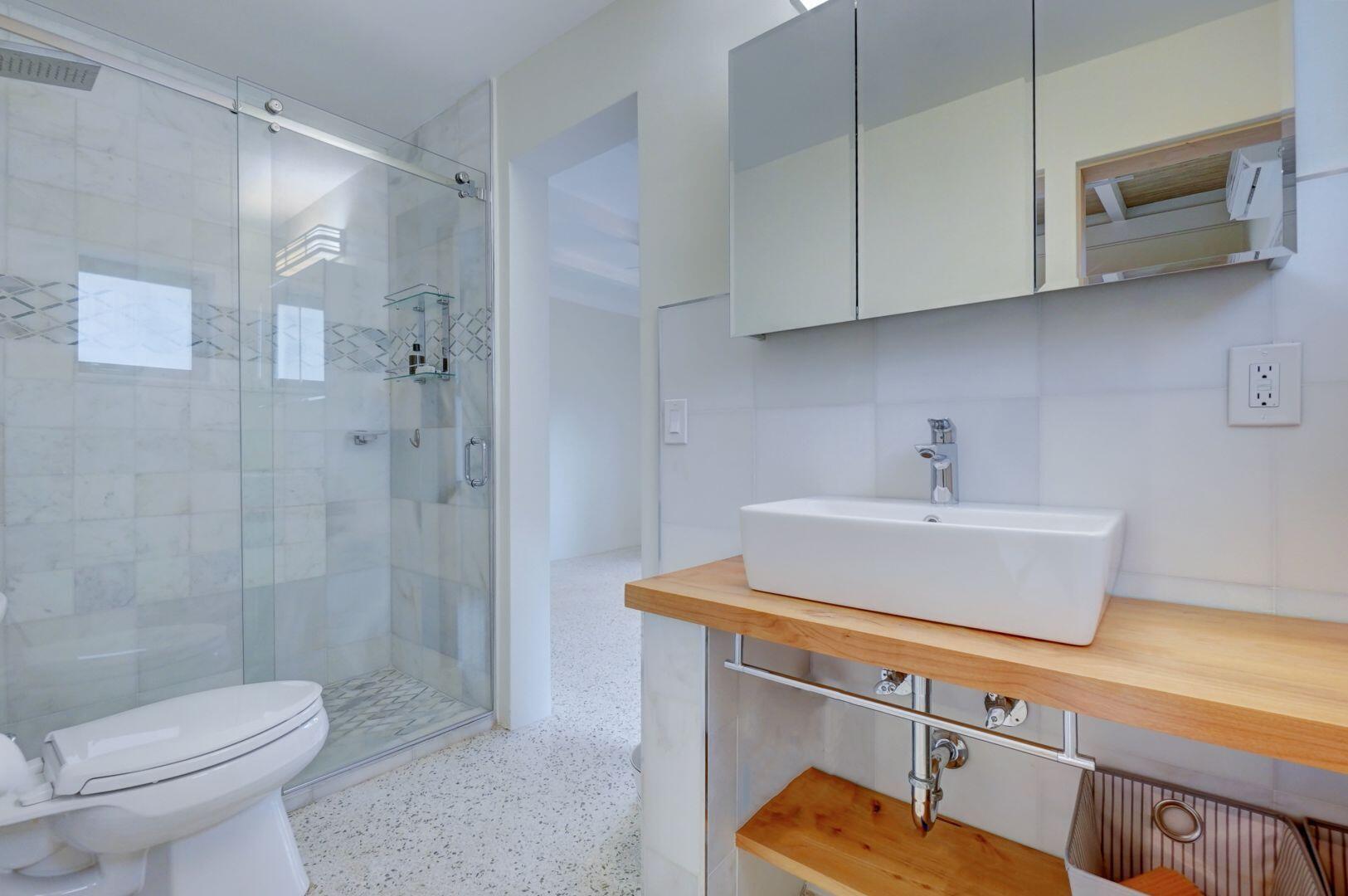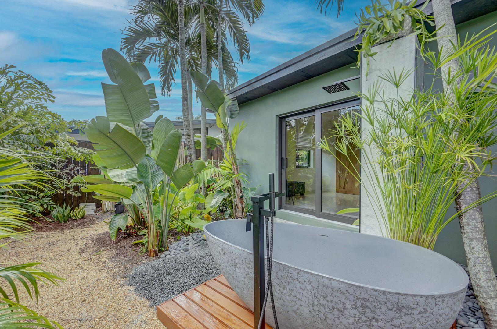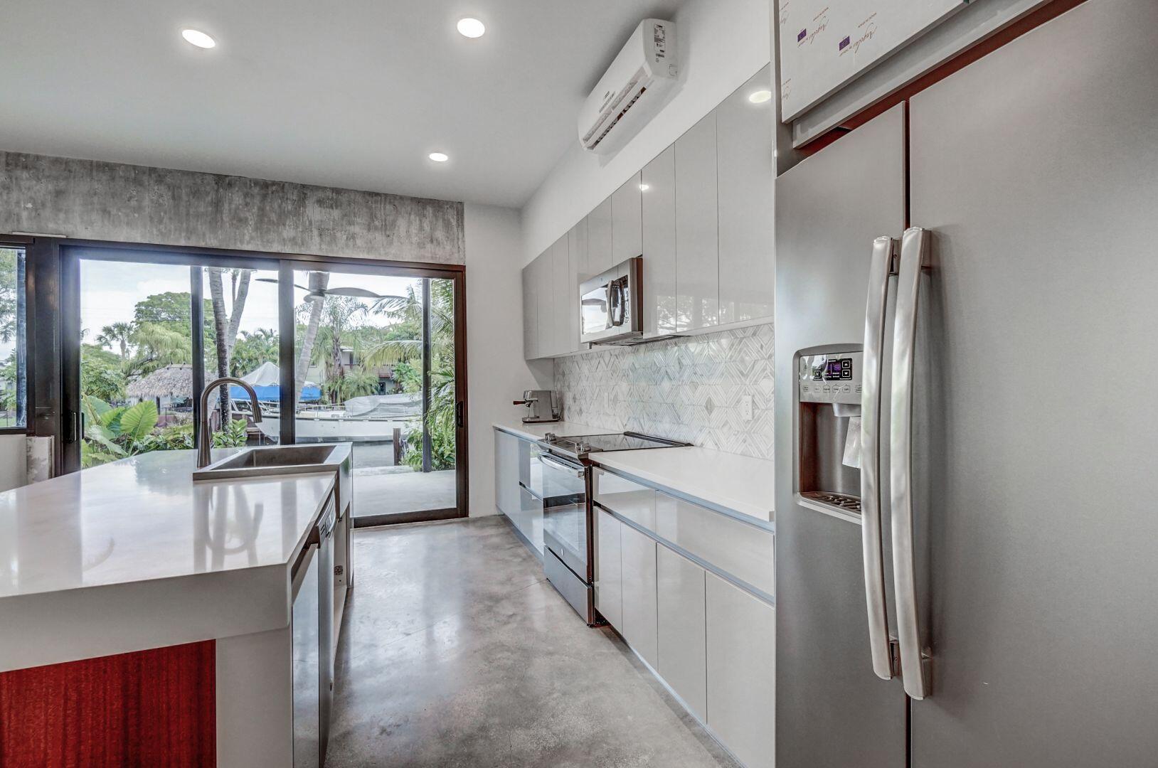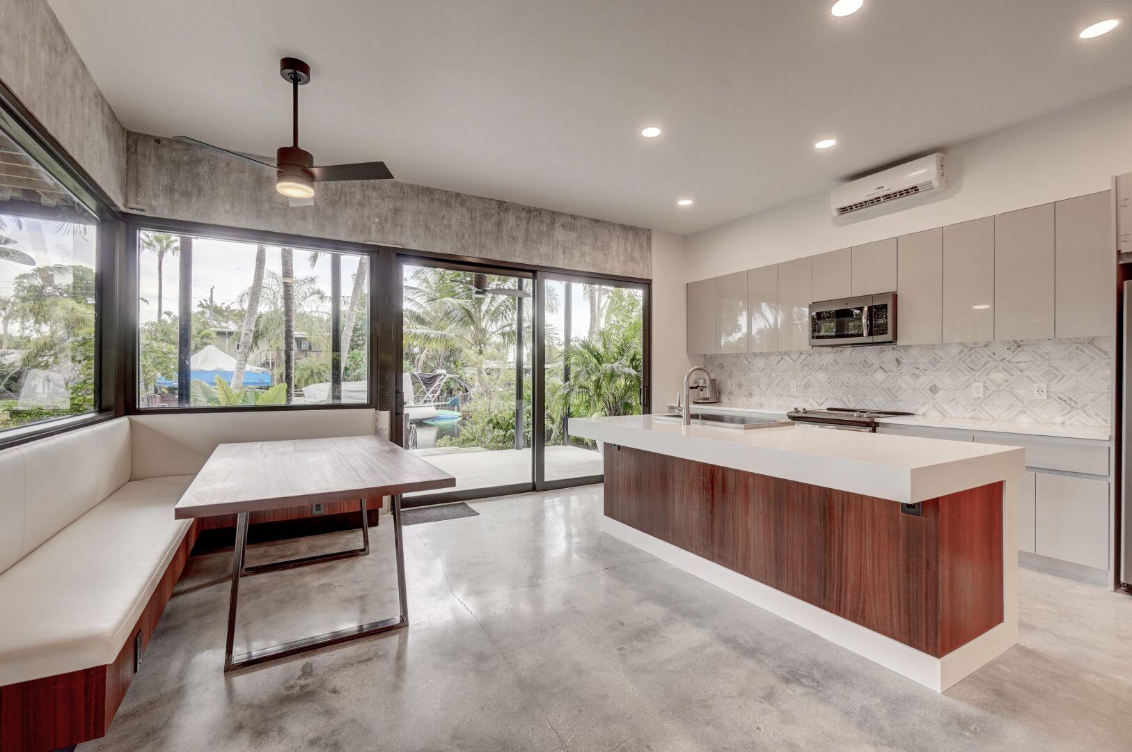 :Ocean access property E of 95 in sought after Shady Banks. No fixed bridges. No flood zone. This mid century modern home has been fully renovated with new 17' X 18' kitchen addition and 650 sf covered patio. Restored terrazzo floors and smooth plaster walls throughout. New whole house PGT impact windows and doors. New highly efficient, duct free mini-split AC system. All solid wood interior doors. Kitchen features built in banquette with solid mahogany table, kitchen island with 4 inch quartz countertop (seats 4), Kraus stainless farmhouse sink, marble backsplash and European cabinetry with mahogany accents. Whole house LED lighting inside and out. Outdoor spa w/ Japanese 2 person soaking tub & outdoor shower with tankless water heater.