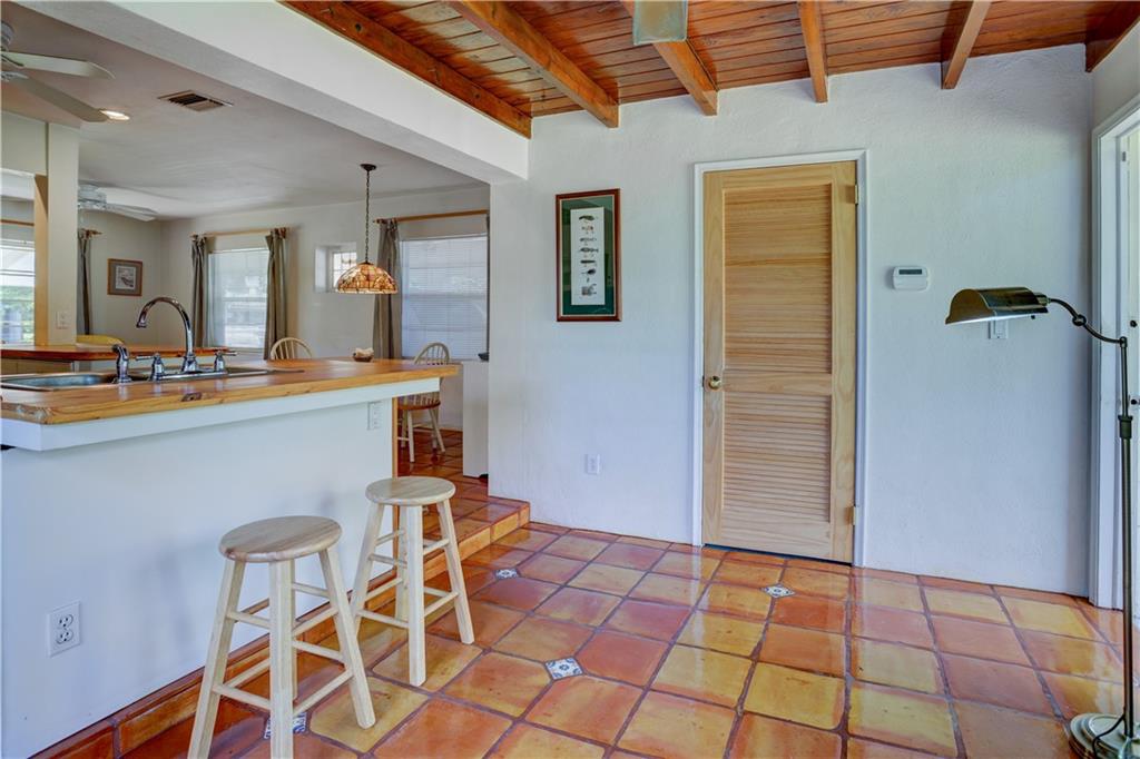 Wonderful house in popular Croissant Park on generous sized lot with plenty of room for pool! The open floor plan and large windows invite natural light and fresh breezes into the home. A spacious interior walk-in laundry/utility room combination is convenient for everyday access and storage. There is a separate workshop/tool shed connecting to the carport, and a fenced garden shed area with an outside shower. The S tile roof was replaced in approximately 2017 and newer wide awning windows have storm shutter panels (number and locations to be confirmed.) The kitchen is wide open with eating bars on both sides. This home has been very well cared for over the years and its location convenient to everyday shopping, the beach, downtown and more! Perfect starter or second home.
