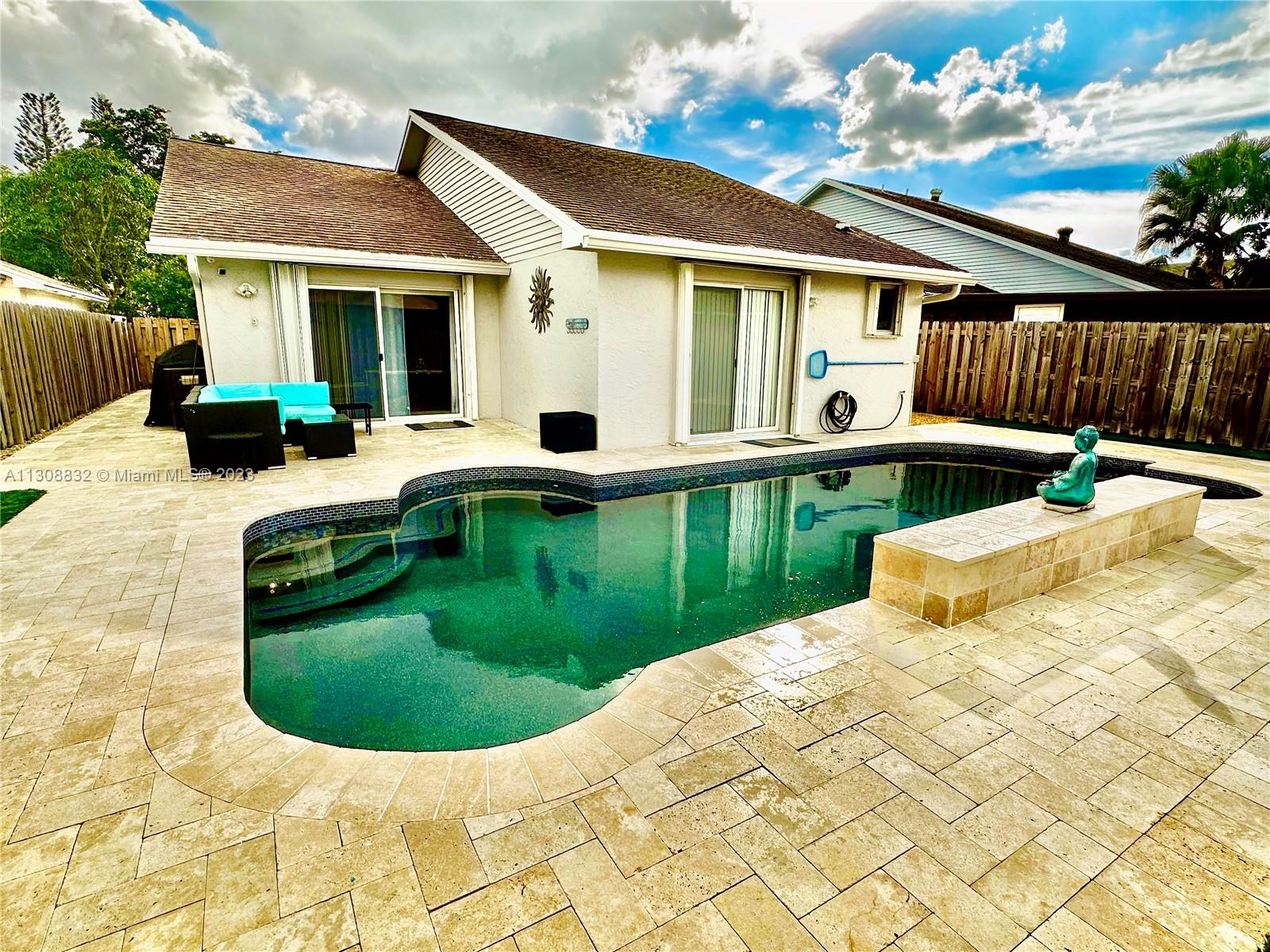 GORGEOUS 3/2 POOL HOME!!!! LIGHT AND BRIGHT!! REMODELED IN 2017!! BEAUTIFUL POOL, WATERPROOF LAMINATE FLOORS, UPGRADED MASTER BATH, STAINLESS STEEL APPLIANCES WITH EAT-IN KITCHEN, HOT WATER HEATER, ACCORDIAN HURRICANE SHUTTERS!! UPDATED POOL PUMP W/HEATER IN 2020. GREAT LARGE FAMILY ROOM INCLUDES LIVING/DINING ROOM!! FENCED YARD!! LARGE 2-CAR GARAGE!! WALK TO PARK!!
