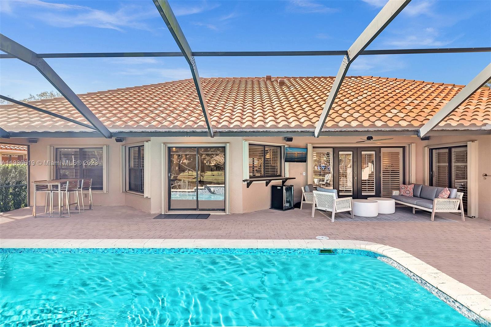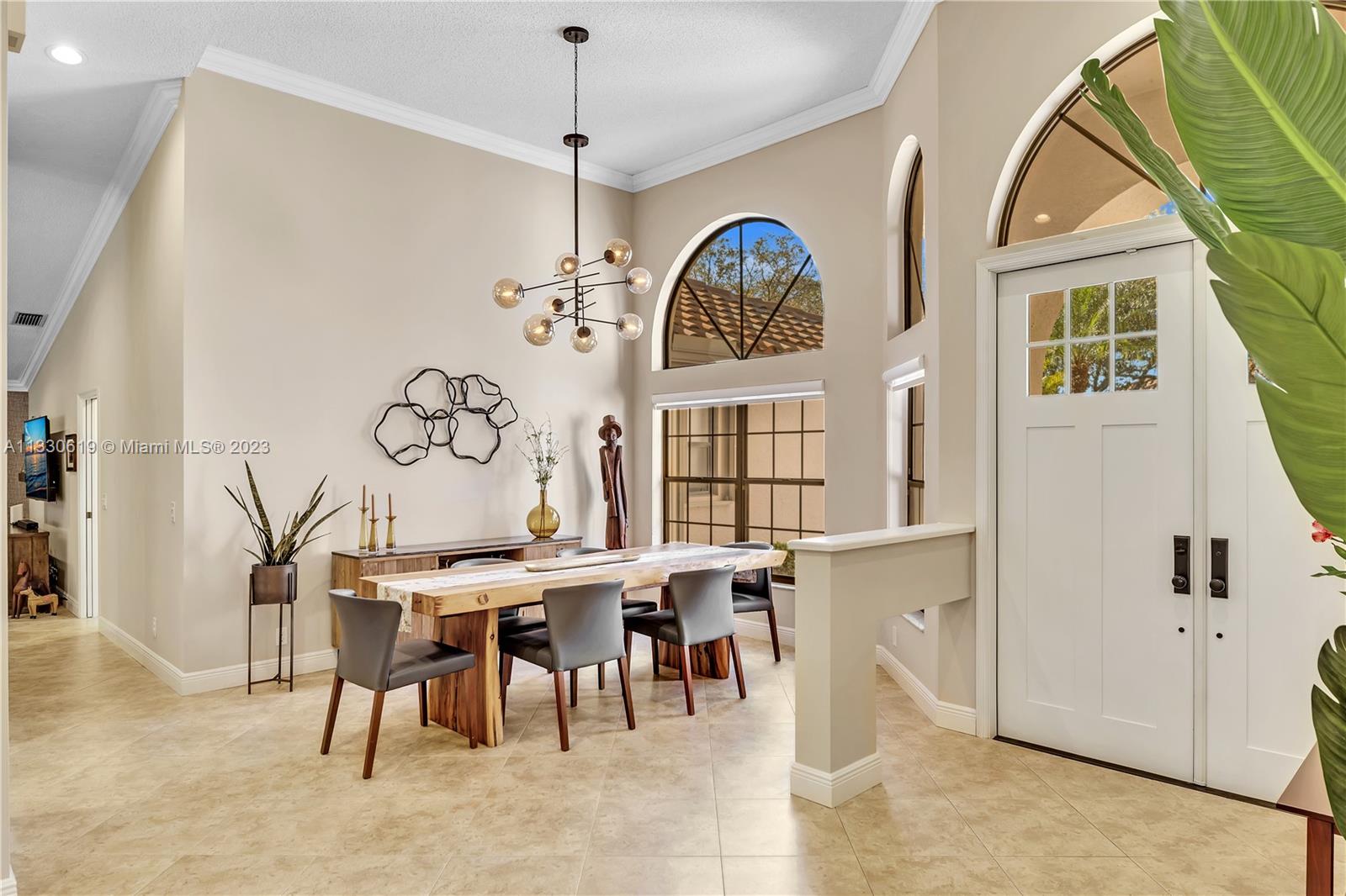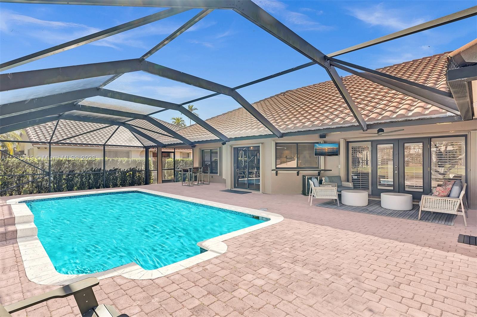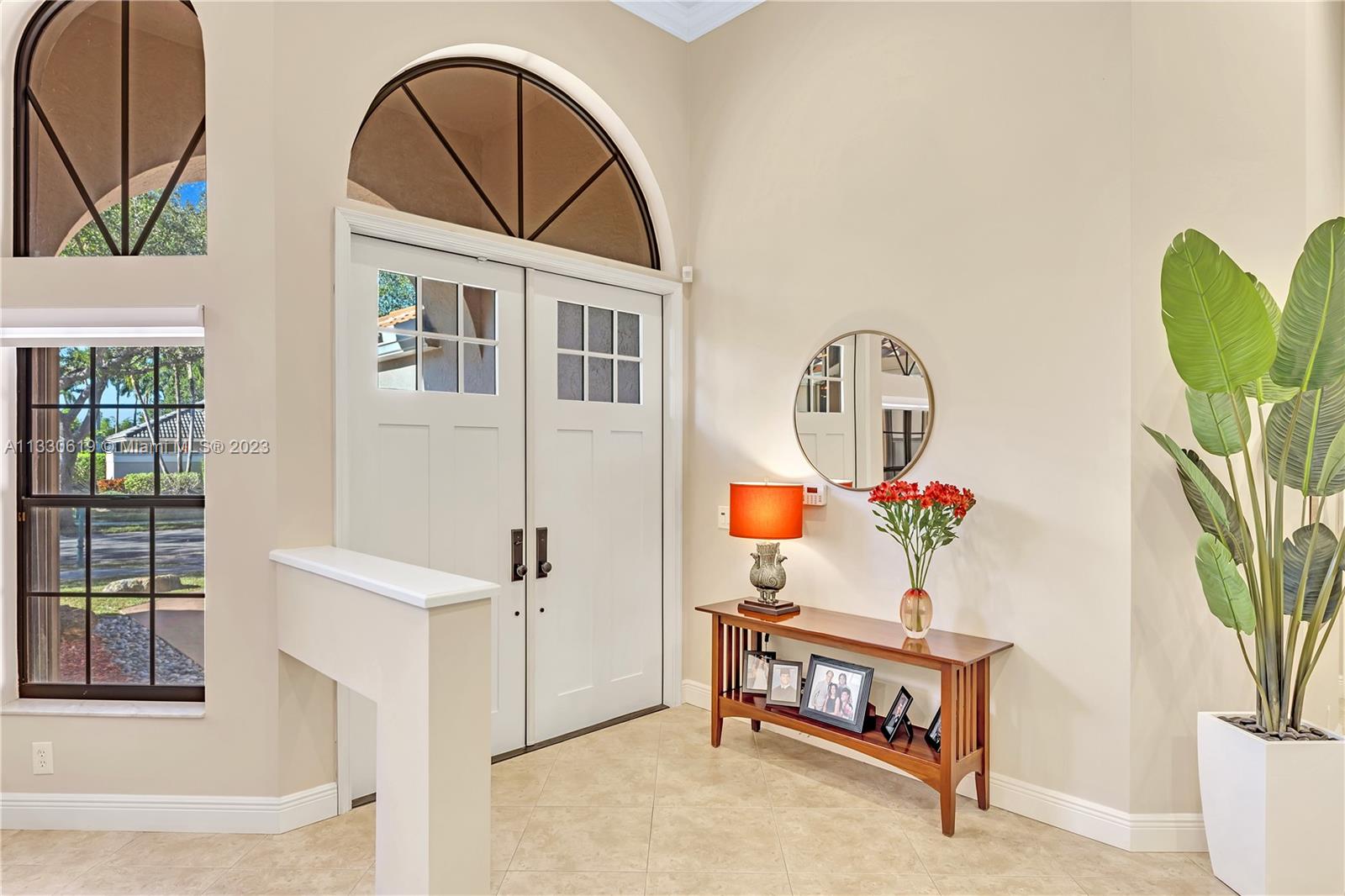 This graciously updated one story 5 bed/3 bath home is executed with a transitional flair, completed w/fine taste and attention to detail! Nestled in the exclusive guard gated tree-lined Weston community of Tequesta, the property sits on a private waterfront lot. Chef's kitchen, w/custom cabinetry, top of the line GE appliances, double oven, unique tile backsplash, quartz counter tops and wine cooler, overlooks the breakfast area and spacious family room. Spa-like master bathroom exudes a zen-like feel. Additional features include Plantation shutters, custom closets and split bedroom plan. Step onto the screened and paver patio and lounge in the pool while enjoying the view, perfect for outdoor lifestyle. Accordion shutters, Roof 2017, pool resurfaced, enclosure re-screened 2020 and more!