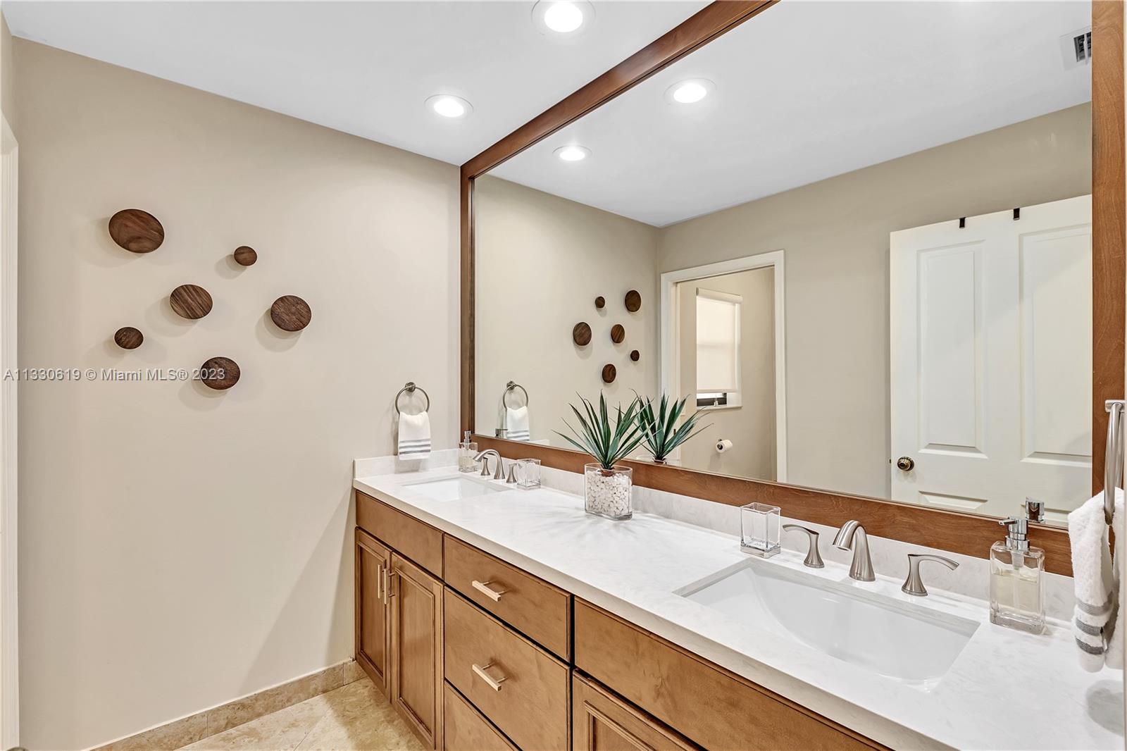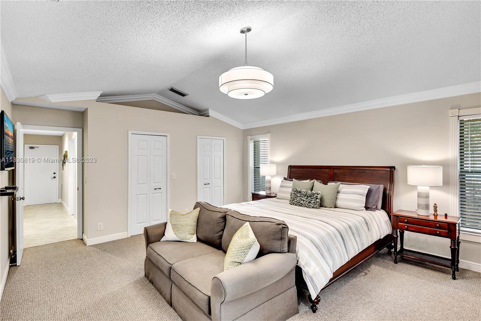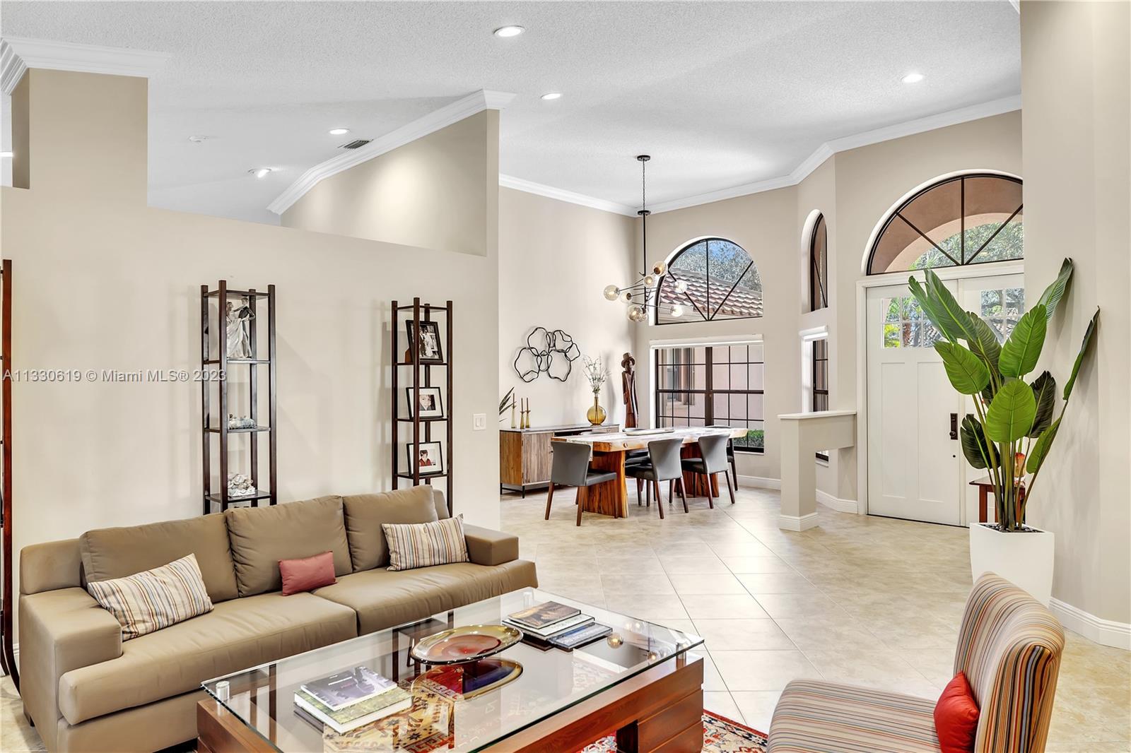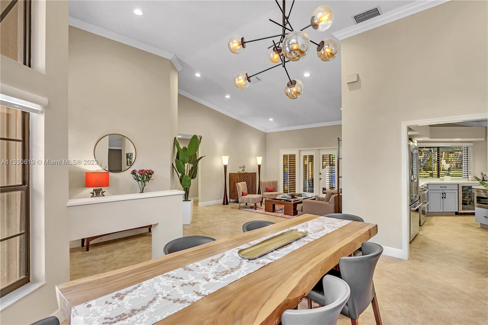This graciously updated one story 5 bed/3 bath home is executed with a transitional flair, completed w/fine taste and attention to detail! Nestled in the exclusive guard gated tree-lined Weston community of Tequesta, the property sits on a private waterfront lot. Chef's kitchen, w/custom cabinetry, top of the line GE appliances, double oven, unique tile backsplash, quartz counter tops and wine cooler, overlooks the breakfast area and spacious family room. Spa-like master bathroom exudes a zen-like feel. Additional features include Plantation shutters, custom closets and split bedroom plan. Step onto the screened and paver patio and lounge in the pool while enjoying the view, perfect for outdoor lifestyle. Accordion shutters, Roof 2017, pool resurfaced, enclosure re-screened 2020 and more!