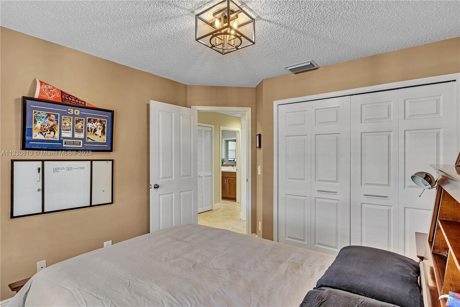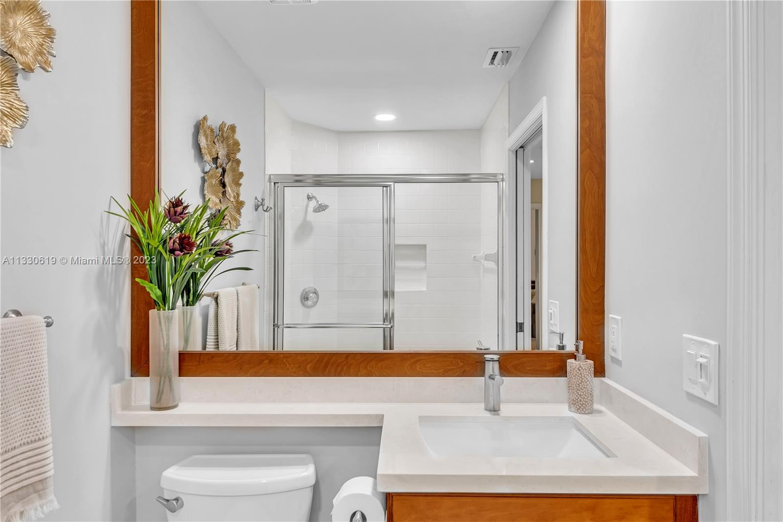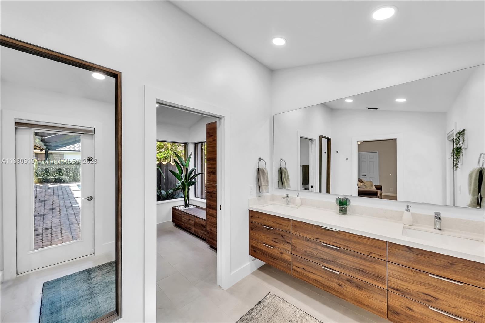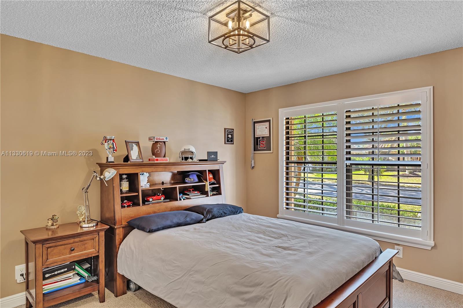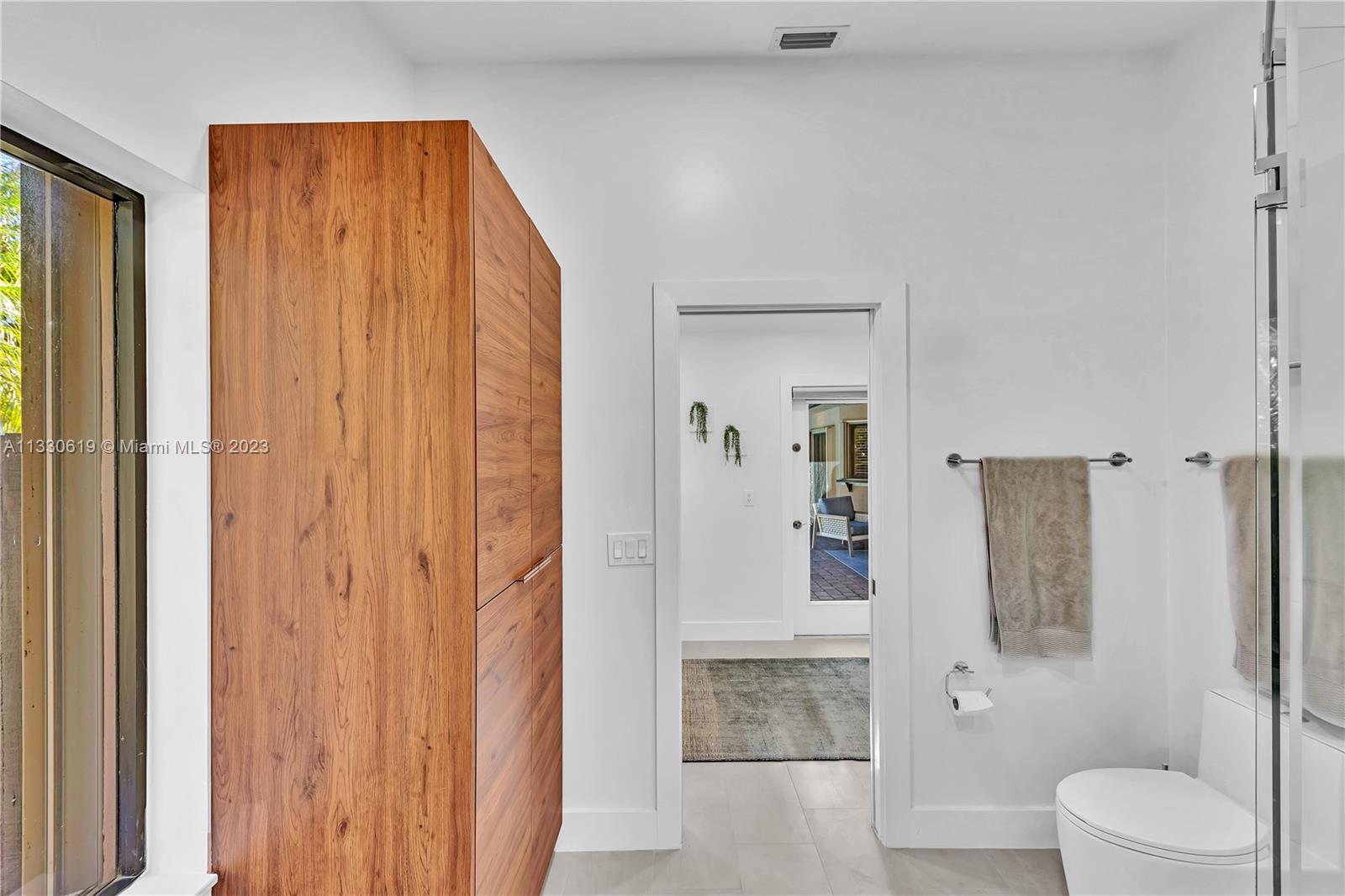 This graciously updated one story 5 bed/3 bath home is executed with a transitional flair, completed w/fine taste and attention to detail! Nestled in the exclusive guard gated tree-lined Weston community of Tequesta, the property sits on a private waterfront lot. Chef's kitchen, w/custom cabinetry, top of the line GE appliances, double oven, unique tile backsplash, quartz counter tops and wine cooler, overlooks the breakfast area and spacious family room. Spa-like master bathroom exudes a zen-like feel. Additional features include Plantation shutters, custom closets and split bedroom plan. Step onto the screened and paver patio and lounge in the pool while enjoying the view, perfect for outdoor lifestyle. Accordion shutters, Roof 2017, pool resurfaced, enclosure re-screened 2020 and more!