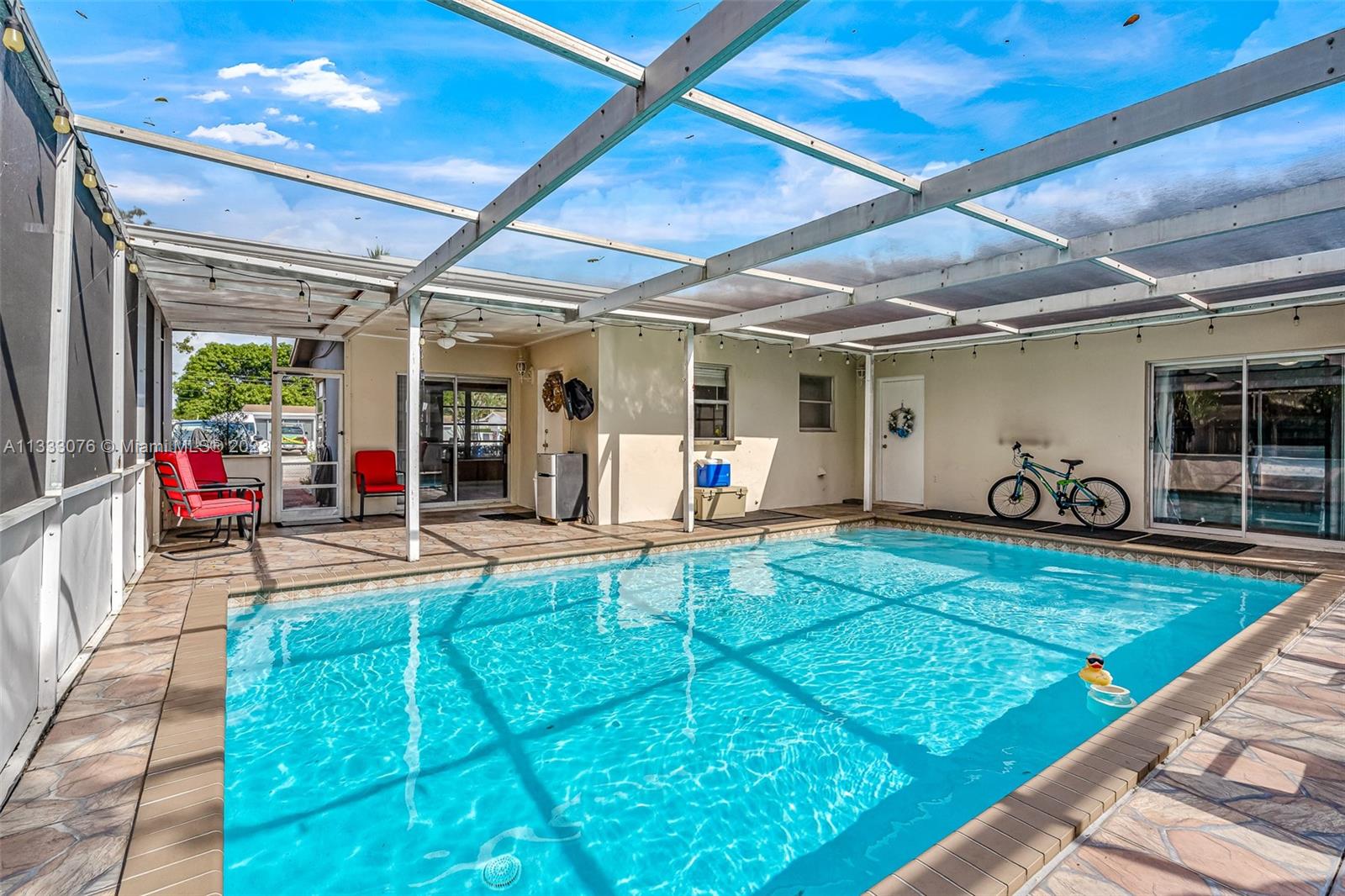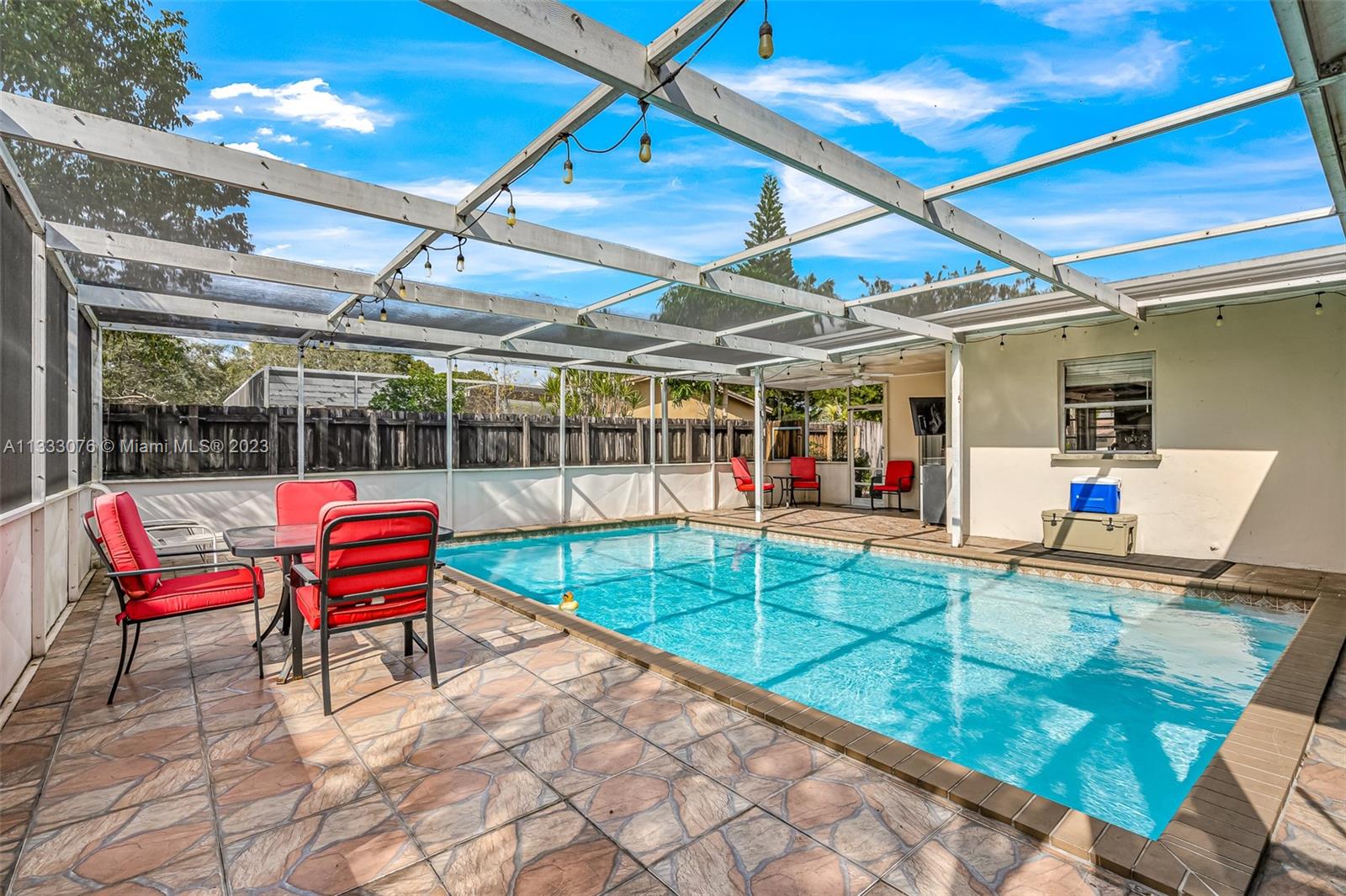Wow... what a deal! This house is in a quiet, family-friendly neighborhood near the hard rock, restaurants, grocery stores, and much more. The beautiful covered outdoor patio and the large pool was the main feature that captivated the owner. The outdoor space is a perfect area for entertaining and hosting events. It provided a private and relaxing space for lounging on the weekends or after a long stressful day at work. The large pool is enticing during the hot Florida summers. The fenced yard is perfect for pets and provides enough space for a small garden. The house offered a surplus amount of space for a growing family, including a bonus space that is currently used as our entertainment room. The ample space is great for movie nights, playing video games, and spending time with family.