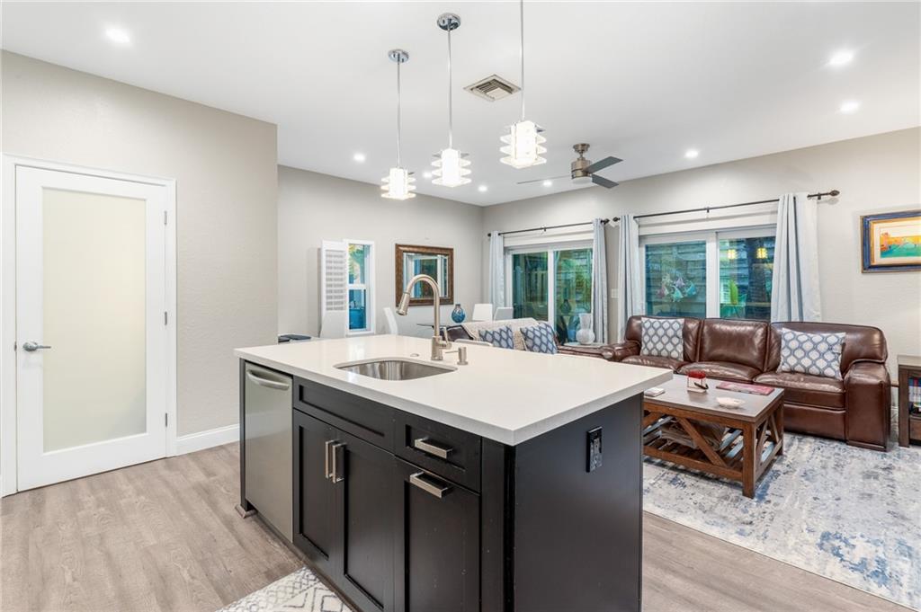 Bright, clean & sophisticated from the moment you walk in. This is a highly desirable end unit w/ brand new impact windows & doors. New upgraded flooring greets you as you walk in downstairs. The kitchen has been opened up to feature an island plus above-cabinet lighting, & SS appliances. The upstairs holds both of the bedrooms w/ newer bathrooms, closet organizer systems & has wooden floors plus vaulted ceilings. The 1 car garage is large enough to hold a full size Audi SUV. Excellent location w/ easy access to Wilton Drive & downtown Fort Lauderdale! Units are rarely available in this GATED community, so act fast! INSURANCE INCLUDED! Plus association is fully funding reserves. Ok to Rent! (30 day min, max 3 times per 12 month period). (All info believed accurate but not warranted)