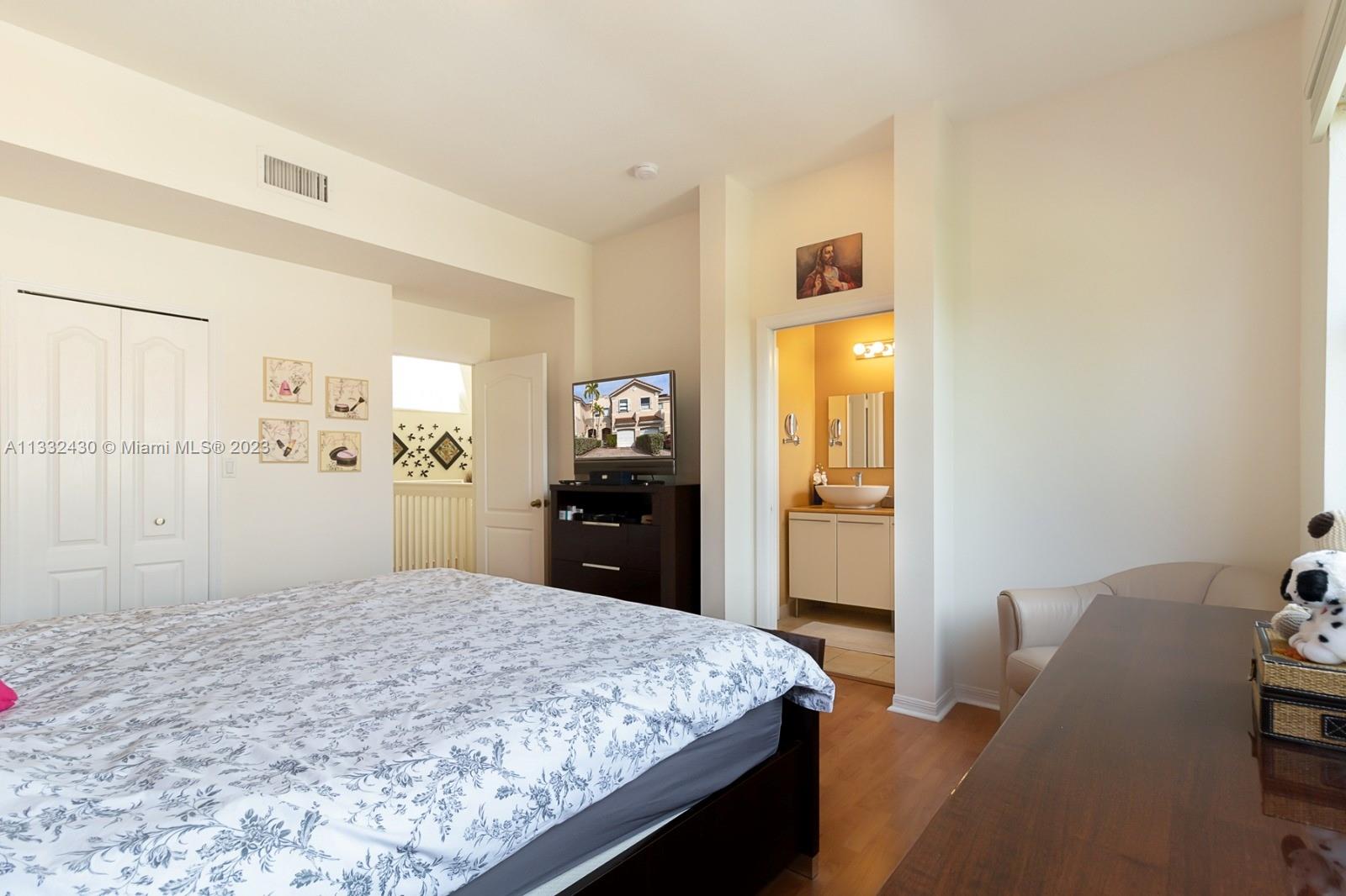 Beautiful 2 bedrooms, 2.5 baths townhome with garage in the extremely desirable gated community of Hawksnest in the heart of Doral. This fabulous townhome offers laminate floors throughout the living spaces and ample of storages. Spacious and function layout, kitchen includes stainless steel appliances, granite countertops, lots of natural light, full size washer and dryer, and well maintained. Two master bedroom suites with walk in closet on both. Centrally located near great schools, supermarkets, restaurants, easy access to highways and so much more. Small cozy community with only 72 homes, LOW HOA fee.