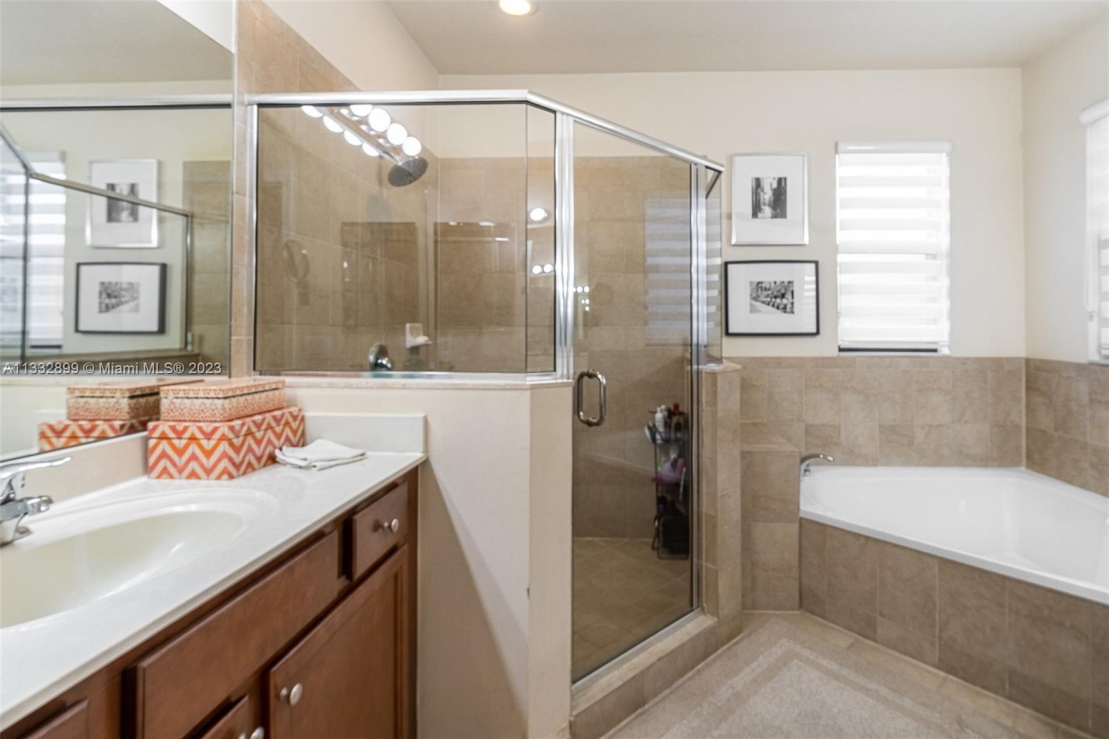 Spectacular home at Aragon. Property features 5 Beds and 4.5 baths and 2 car garage. Very spacious on the first floor. Modern remodeled kitchen with S/S appliances. 2 master bedrooms upstairs. Zebra blinds. Glass staircase. Entertain your family and friends in the fenced tile backyard with a gazebo. Space up to 4 car parking spots in front of the unit.