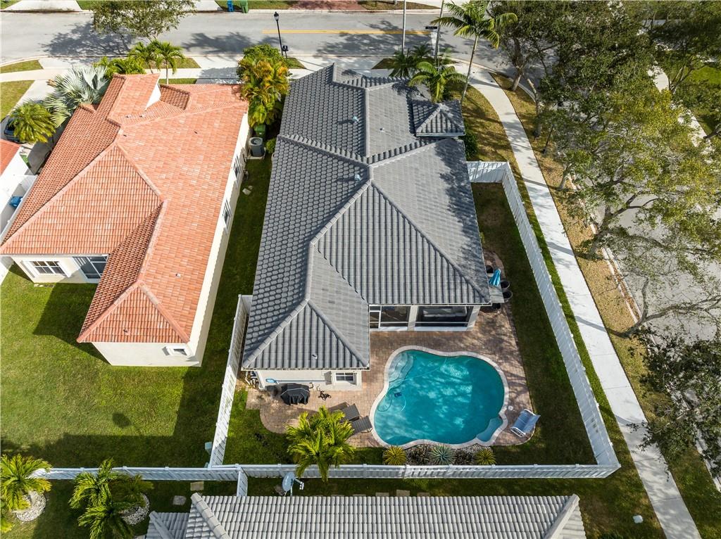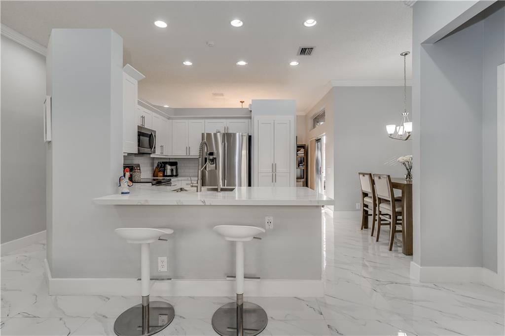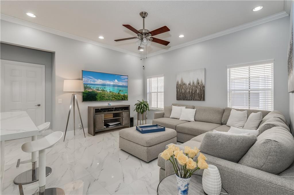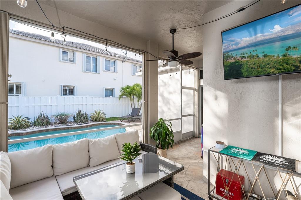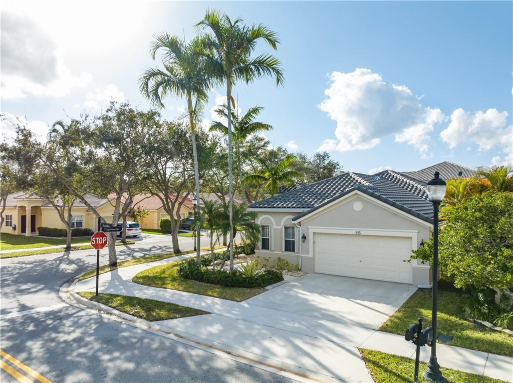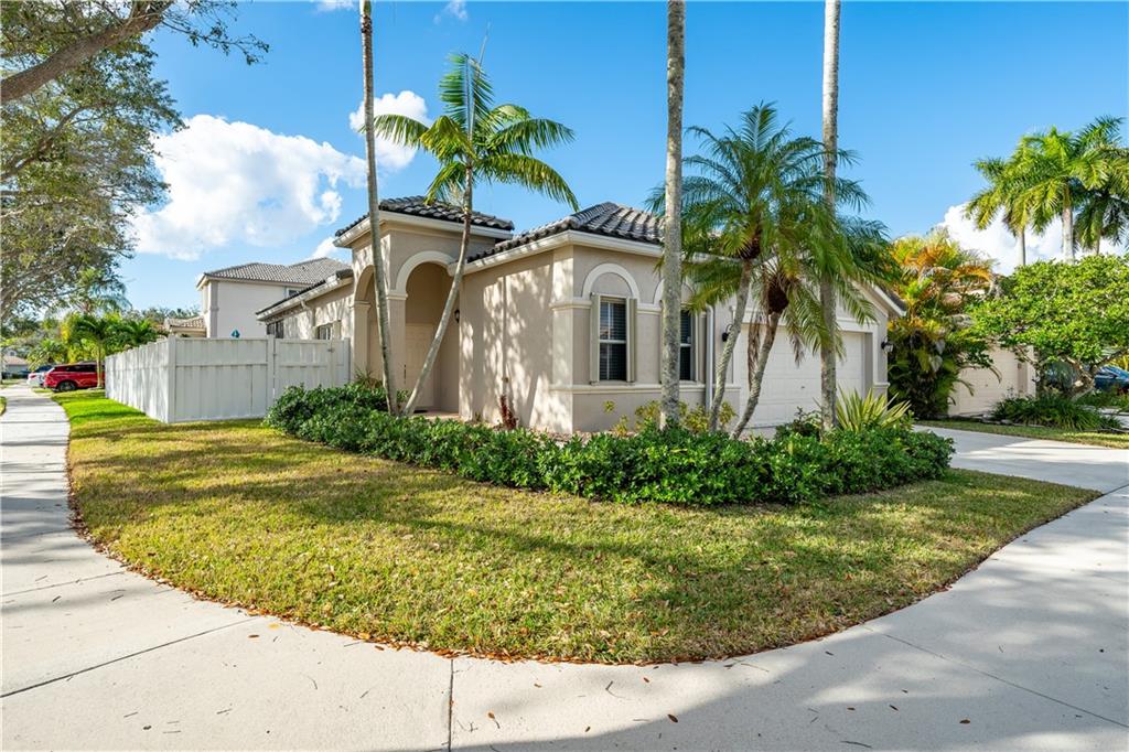 Do not miss this stunning CORNER LOT, MOVE-IN ready home in the exclusive guard gated community of The Meadows! This beautiful home features gorgeous porcelain tile flooring, an open kitchen with stainless steel appliances and quartz countertop, 3 spacious bedrooms, TWO updated bathrooms, a NEW 2020 ROOF with gutters, and a NEWLY painted exterior. Enjoy an outdoor lifestyle with a screened-in patio, and a fabulous SALT WATER pool! The backyard is completely fenced in with a white PVC fence...perfect for privacy, entertaining, and pets! Short distance to the community pool, kids' playground, and basketball court. Top rated A+ schools nearby!