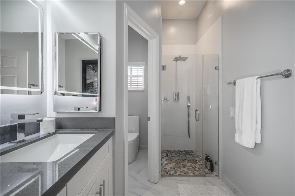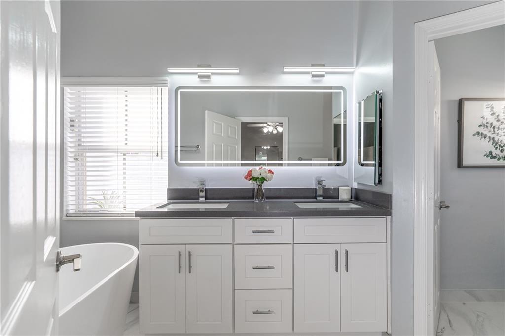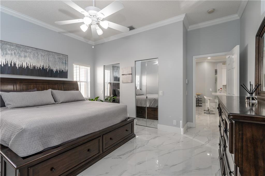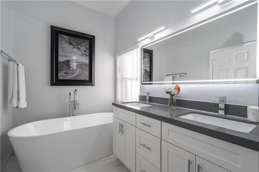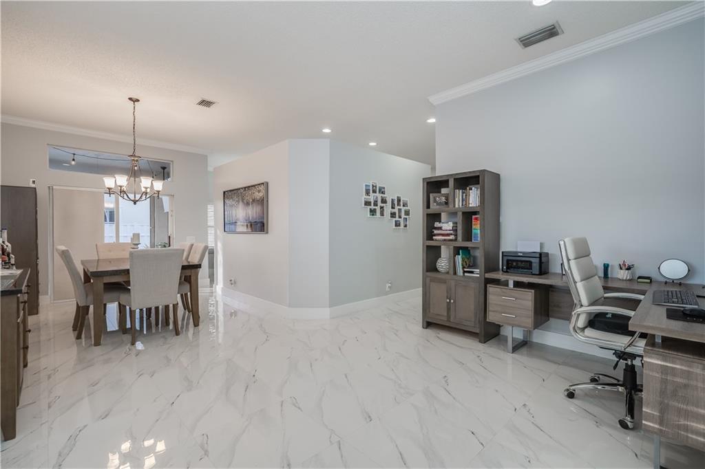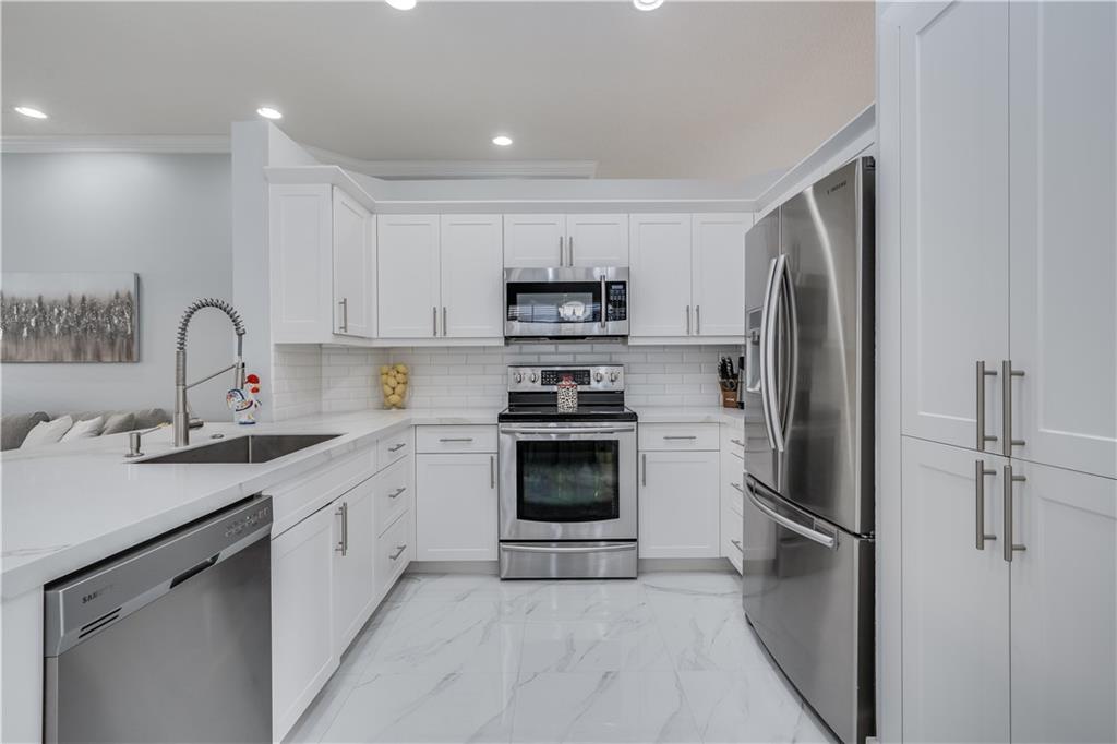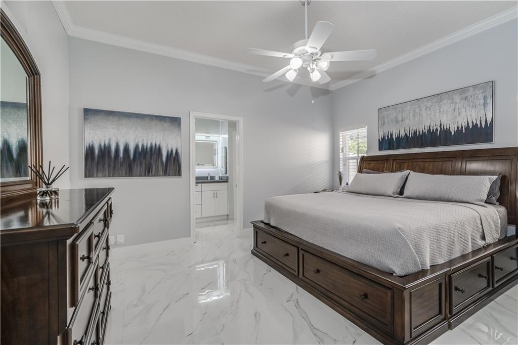 Do not miss this stunning CORNER LOT, MOVE-IN ready home in the exclusive guard gated community of The Meadows! This beautiful home features gorgeous porcelain tile flooring, an open kitchen with stainless steel appliances and quartz countertop, 3 spacious bedrooms, TWO updated bathrooms, a NEW 2020 ROOF with gutters, and a NEWLY painted exterior. Enjoy an outdoor lifestyle with a screened-in patio, and a fabulous SALT WATER pool! The backyard is completely fenced in with a white PVC fence...perfect for privacy, entertaining, and pets! Short distance to the community pool, kids' playground, and basketball court. Top rated A+ schools nearby!