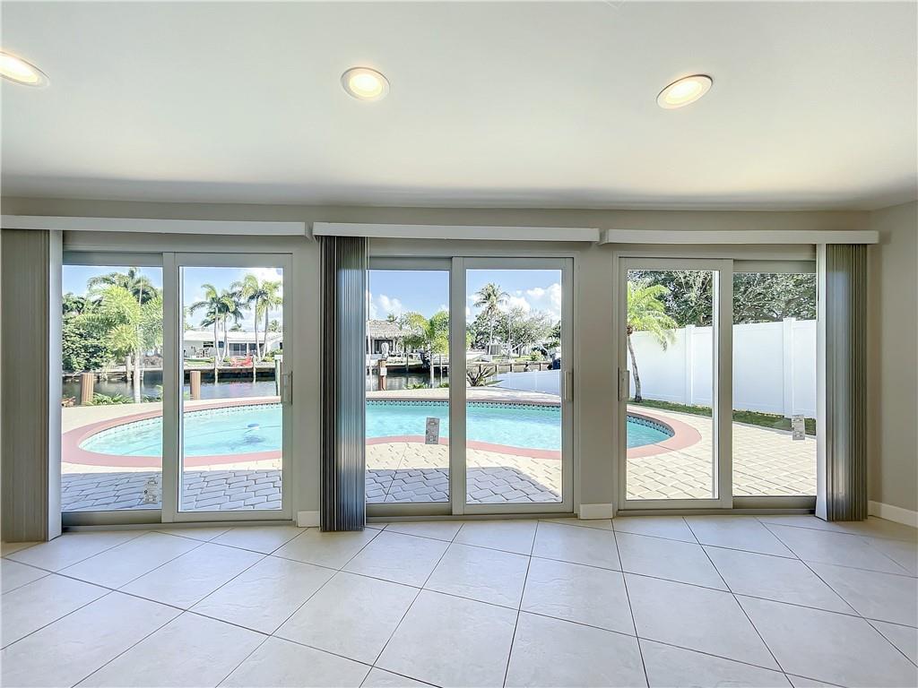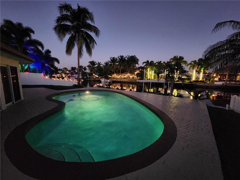 Beautiful spacious waterfront home with ocean access and 10,000 LBS. boat lift in the desirable Garden Isles section of Pompano beach. Located in a quiet area on a dead end street. Brand New Roof 2022, Impact windows with aluminum frame installed in 2022, Gas stove in new kitchen. This turnkey home is over 2,100sq feet under AC with a spacious living room and family room. Master bedroom with double door entry, the 2nd and 3rd bedrooms have enough space for king size beds. AC is new, Washer/Dryer are new. Nice clean back yard with a beautiful pool gets lots of sun all year round. private boat dock, 2 car garage with horseshoe driveway. The fixed bridge will be raised to accommodate larger boats.