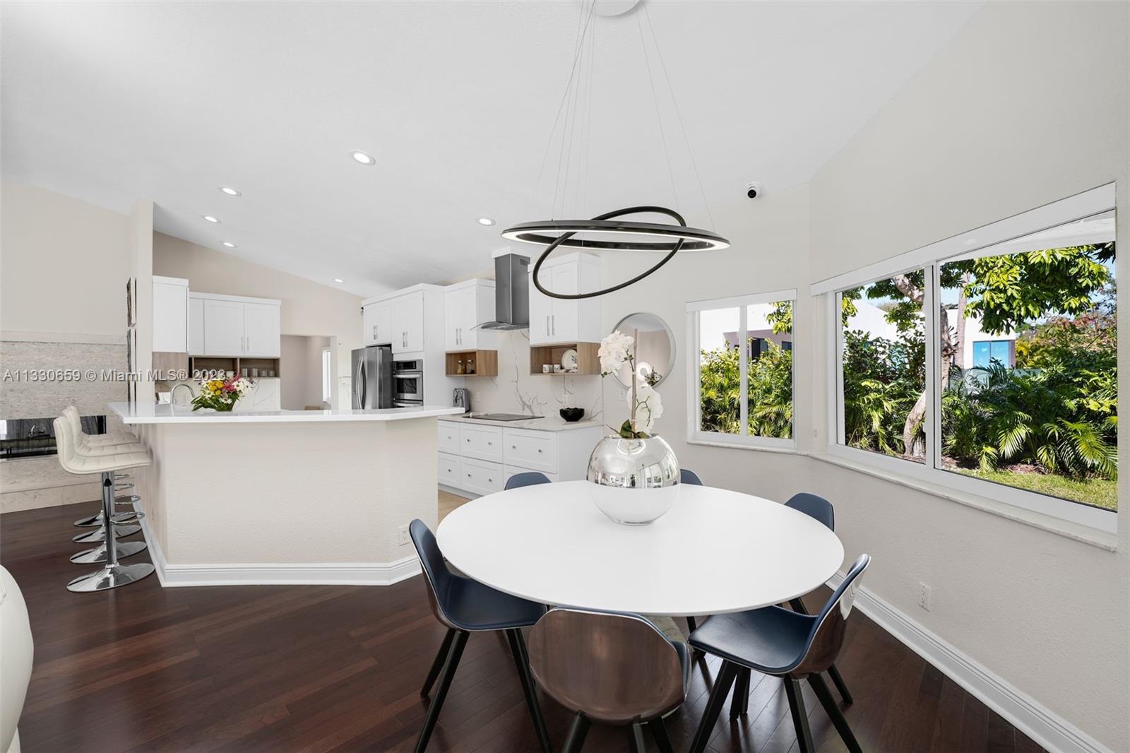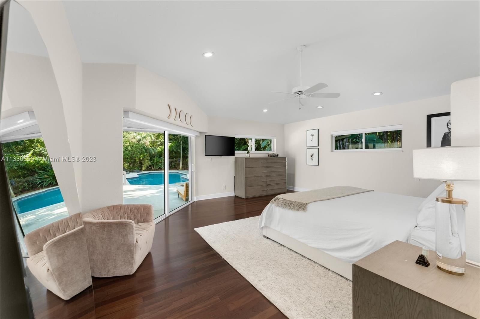 Stunning and sophisticated home located on a quiet street of Pinecrest. Extensive 2021 renovations, this home sits on a 20,000 SF lot offering privacy, tranquility, and luxury with a lush tropical patio & pool area, zen garden and fruit trees. Spacious 5 bed, 4.5 bath home with open floor plan, high ceilings and tons of natural light. Living & dining all open & overlooking the lovely pool & deck that was newly resurfaced, perfect for those that like to entertain. Additionally, home features a modern kitchen,new appliances,cabinets & quartz counters;wine cooler/bar, summer kitchen, wood floors; new impact windows/doors; all new wifi controlled AC units, new metal roof & a pristine 3-car garage. Excellent location close to several parks & top private schools.Perfect for raising a family!