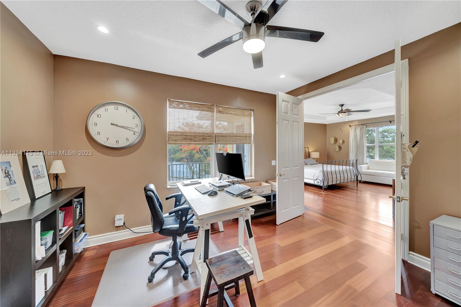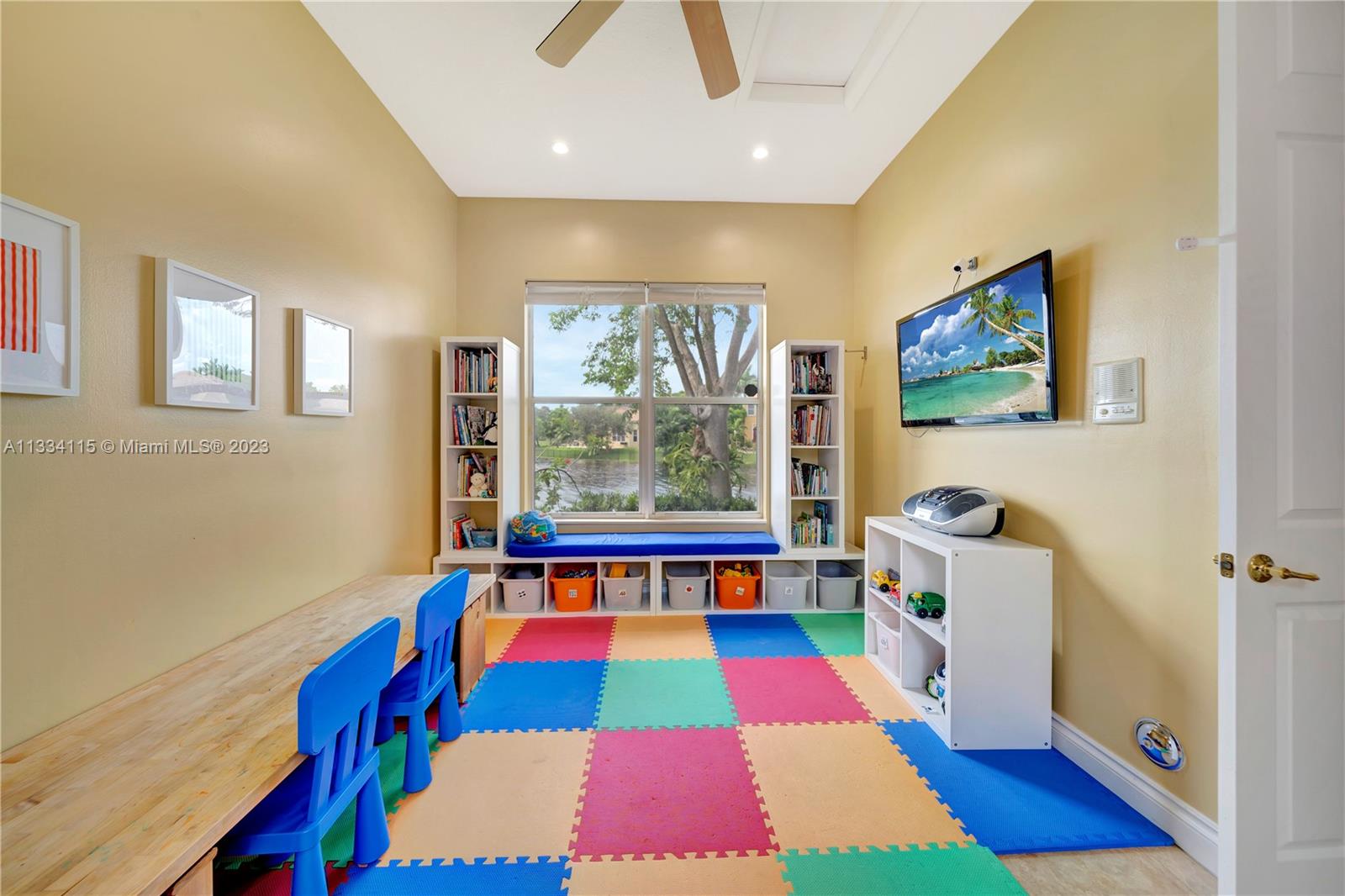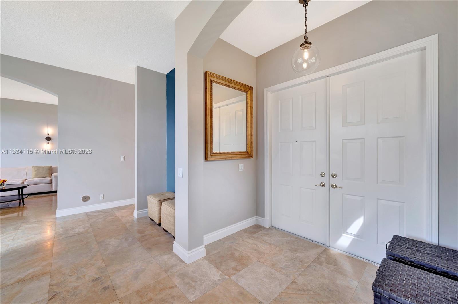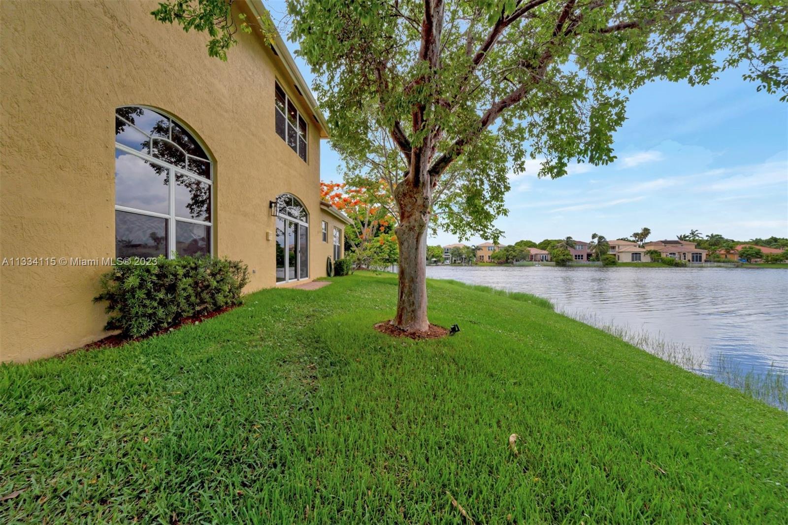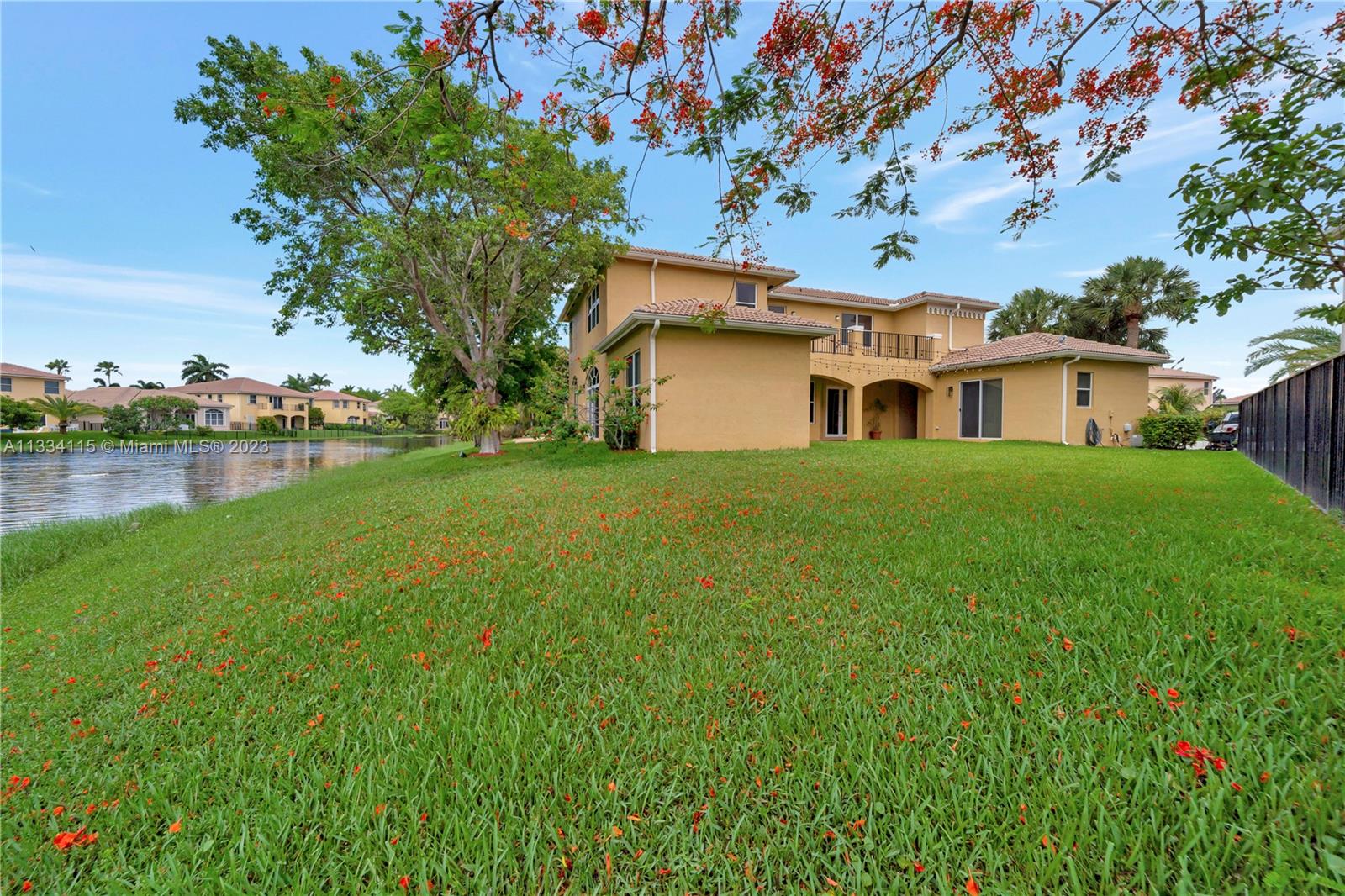 Spectacular 5 bed, 4 bath lakefront home in the gated community of Monarch Lakes! Fall in love w/ the serene lake view & warmth of this home’s modern, contemporary style from the moment you step through the front door. Extremely spacious layout featuring one bedroom & full bathroom on the 1st floor along w/ an additional in-laws quarters in the courtyard showcasing a 2nd bedroom and full bathroom. Build your dream pool & outdoor kitchen in the spacious courtyard over looking the water. Oversized master bedroom w/ dual walk-in closets, a large master bath w/ a soaking tub & a balcony w/ unobstructed water views. All rooms are spacious with w/ custom closets. This inviting home also features a laundry room with sink, panel shutters, and a 2 car garage with plenty of space for storage.