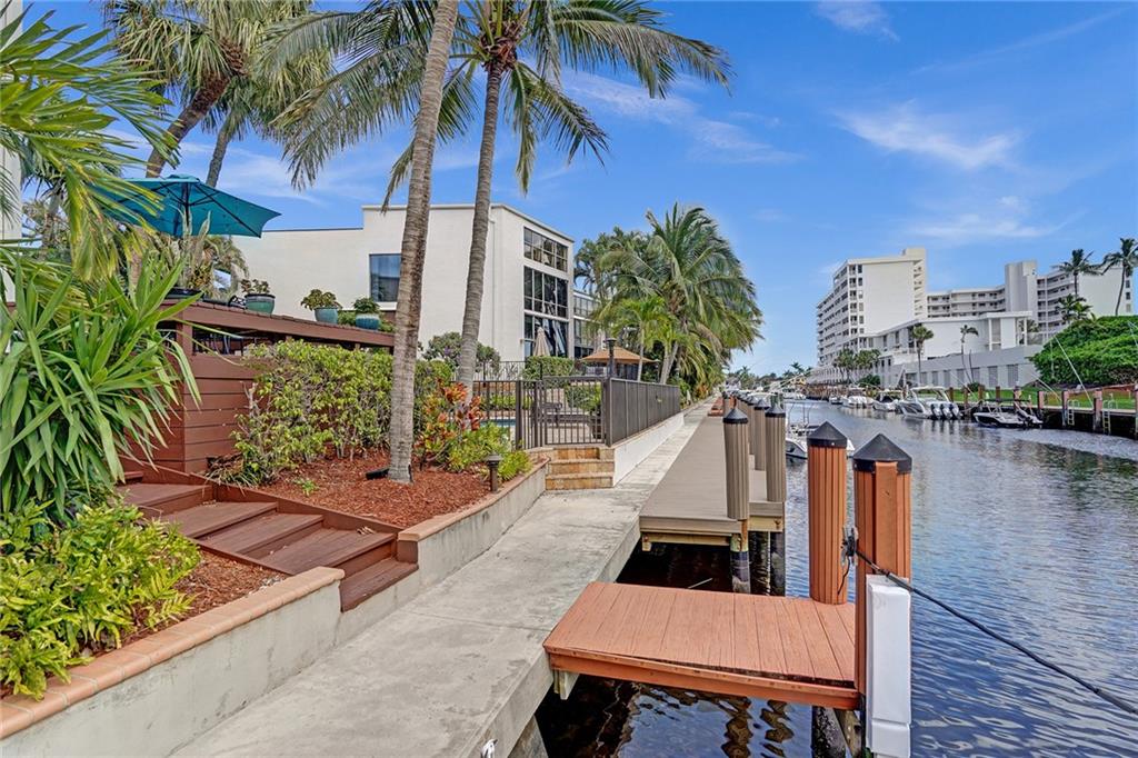 Welcome to 49th Street Townhomes, a California Contemporary Style unit featuring a 32' boat slip and floor to ceiling windows overlooking the tropical waterways of Fort Lauderdale. This corner unit offers direct ocean access, a two-car garage, a private patio and just steps to the pool. A master craftsman created new staircases and custom built-ins throughout the townhouse including an updated kitchen, updated bathrooms and a spacious loft perfect for your home office or theater room. Walk to fabulous restaurants and Lauderdale by the Sea or take your boat. The options are effortlessly endless.