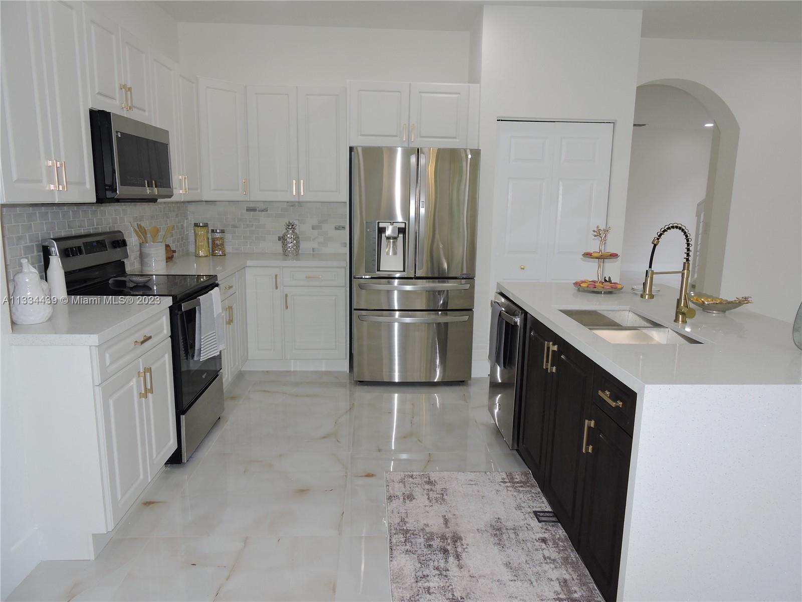 Stunning corner home 5/4. Located in a private cul-de-sac. Upgrades throughout including kitchen cabinets, quartz counter tops, SS appliances. Huge master bedroom suite with sitting area and 2 walk-in closets. His/her master bath with freestanding tub .Porcelain title in first floors and waterproof laminate in the second floor. All bathrooms have also been remodeled. Light fixtures have been upgraded. One large bedroom on the first floor with independent entrance; could be used as a home office or a separate apartment for in laws. Laundry room upstairs. Located in West Miramar, in the gated community of Silver Shores with great amenities to enjoy, Community pool, Tennis Court and Exercise room. Minutes from I-75, Hospital, shopping malls, restaurants and more.