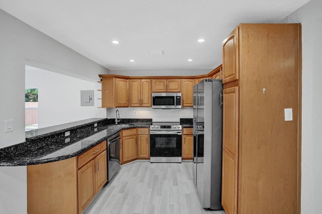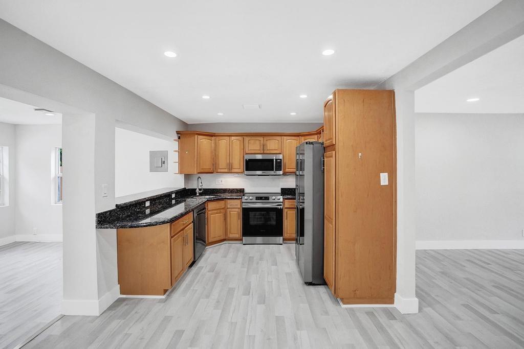 4 Bedroom 2 Bath with 1 Car Garage in Riverland Section of Ft. Lauderdale. The Open Floor plan property has an upgraded kitchen with granite countertops, Samsung Stainless Steel Appliance Set, New Roof, New HVAC system, jacuzzi tub in hallway bath, vinyl waterproof floors throughout, LED lighting, 1 car garage with oversized laundry room area, new Hot Water Heater, fully fenced with large storage shed in back yard and lush landscaping.