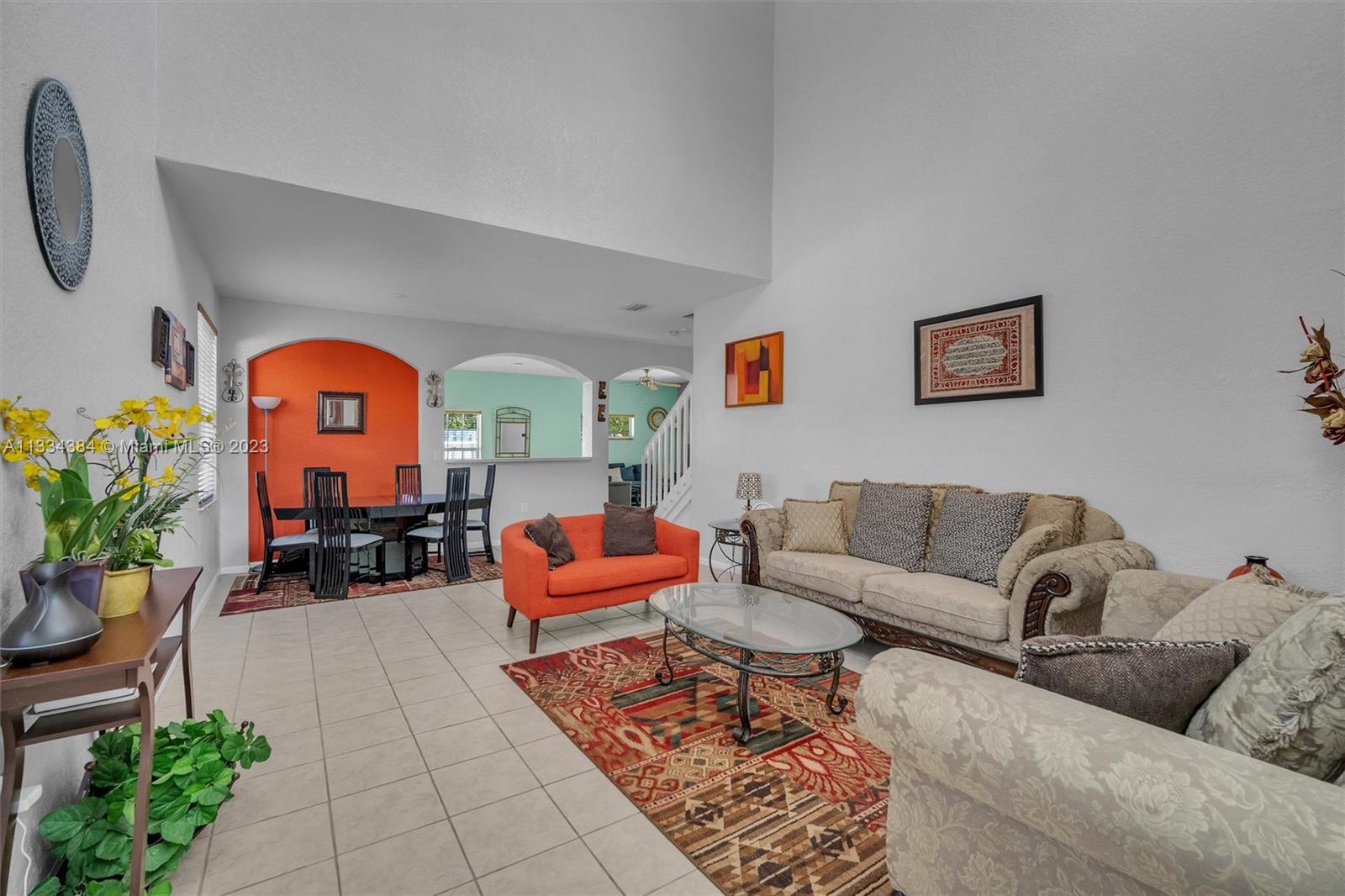 Beautiful and spacious single-family home in the desirable Monarch Lakes development in Miramar. Soaring two story high ceiling as soon as you enter. This home is very spacious, has plenty of natural light, high volume ceilings and neutral tile throughout the first floor and wood floors upstairs. Great layout for the Living, dining and Family room with an open concept kitchen with new SS appliances overlooking living room. Large master bedroom with hardwood floors and a walk-in closet; master bathroom with roman tub, standing shower, and dual sinks. Split floor plan upstairs. Backyard is completely fenced - in with covered siting area great for entertainment. Close to highways I-75 and Turnpike, shopping stores and malls, Great schools, and recreation parks.
