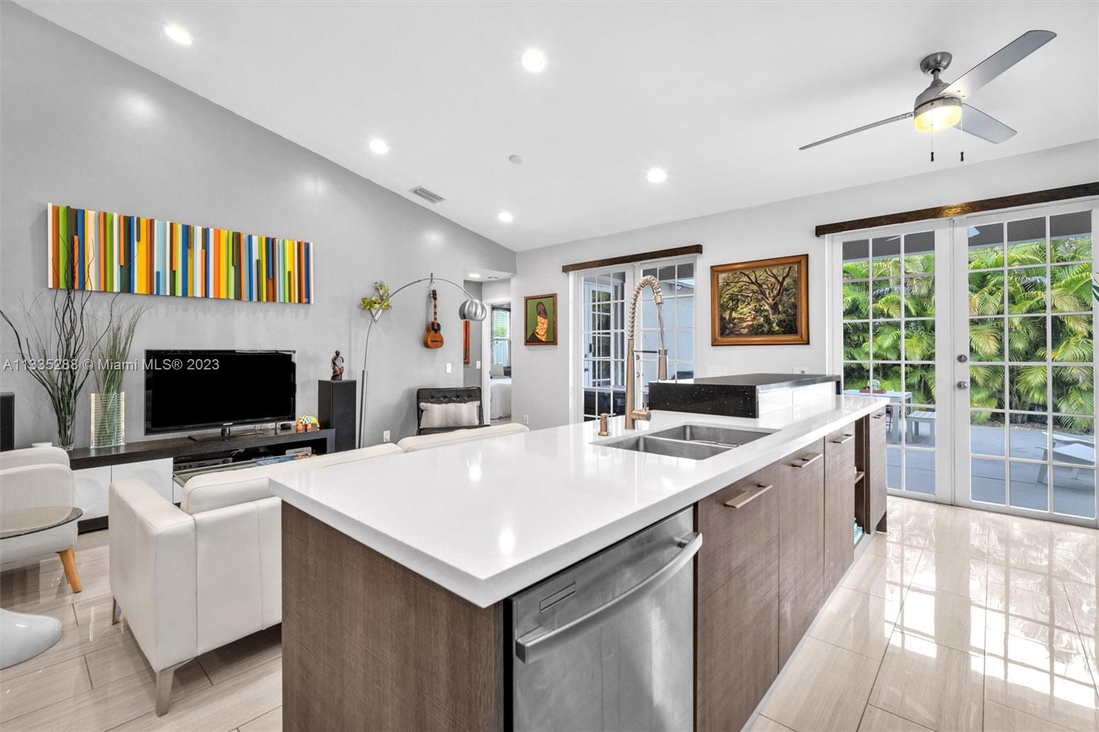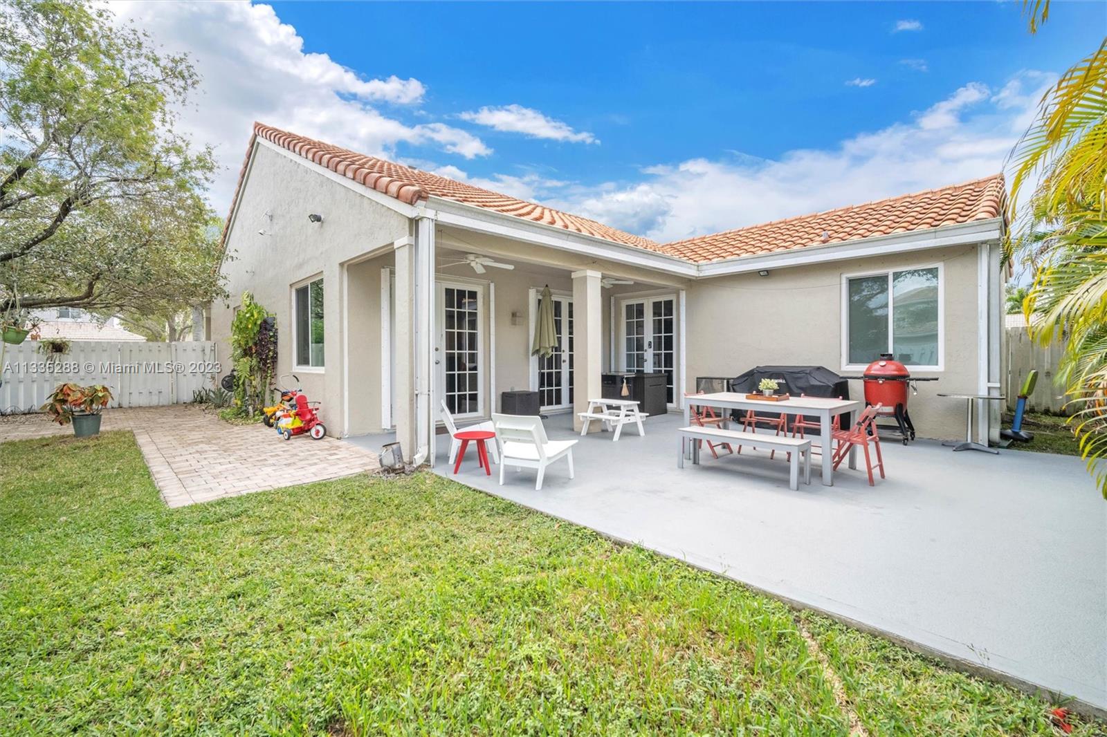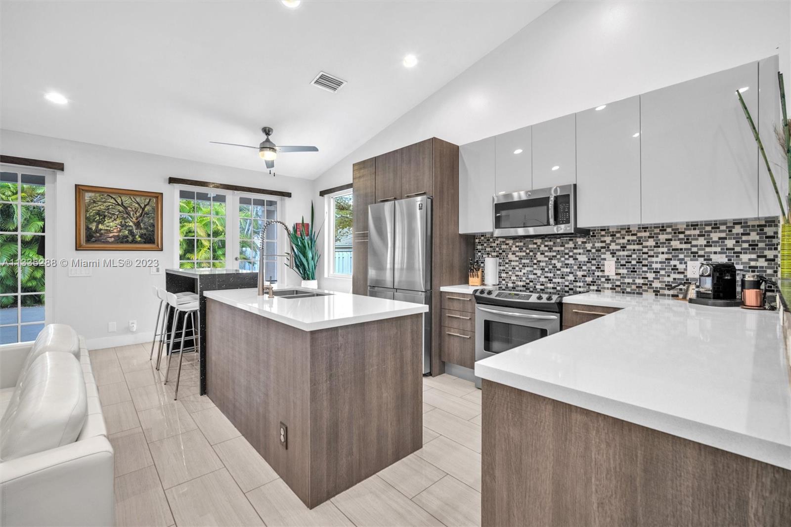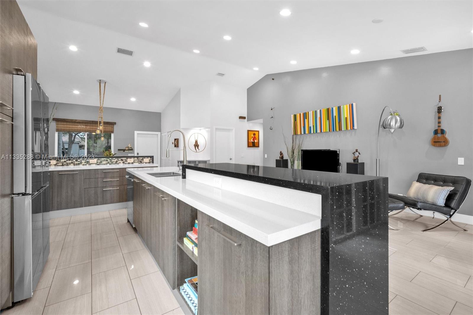 Totally renovated 3-bedrooms 2-bathroom home. ROOF & HVAC 2018. Corner lot w/ dramatic popcorn free volume ceilings, open concept Italian kitchen, designer accents including quartz waterfall edge countertops & stainless-steel appliances including new refrigerator. Tasteful porcelain floors in the main areas & the primary bedroom, laminate floors in both bedrooms. Bathrooms are updated featuring a neutral modern design. The master bathroom features a large shower with designer finishes & a dual vanity with oversized countertop space. The Falls is a 24hr surveillance-gated community, zoned for Weston's A Rated Schools. A community pool, volleyball, basketball court and tot lot complete this meticulous community. Enjoy shopping and dining all close to mayor highways for an easy commute.