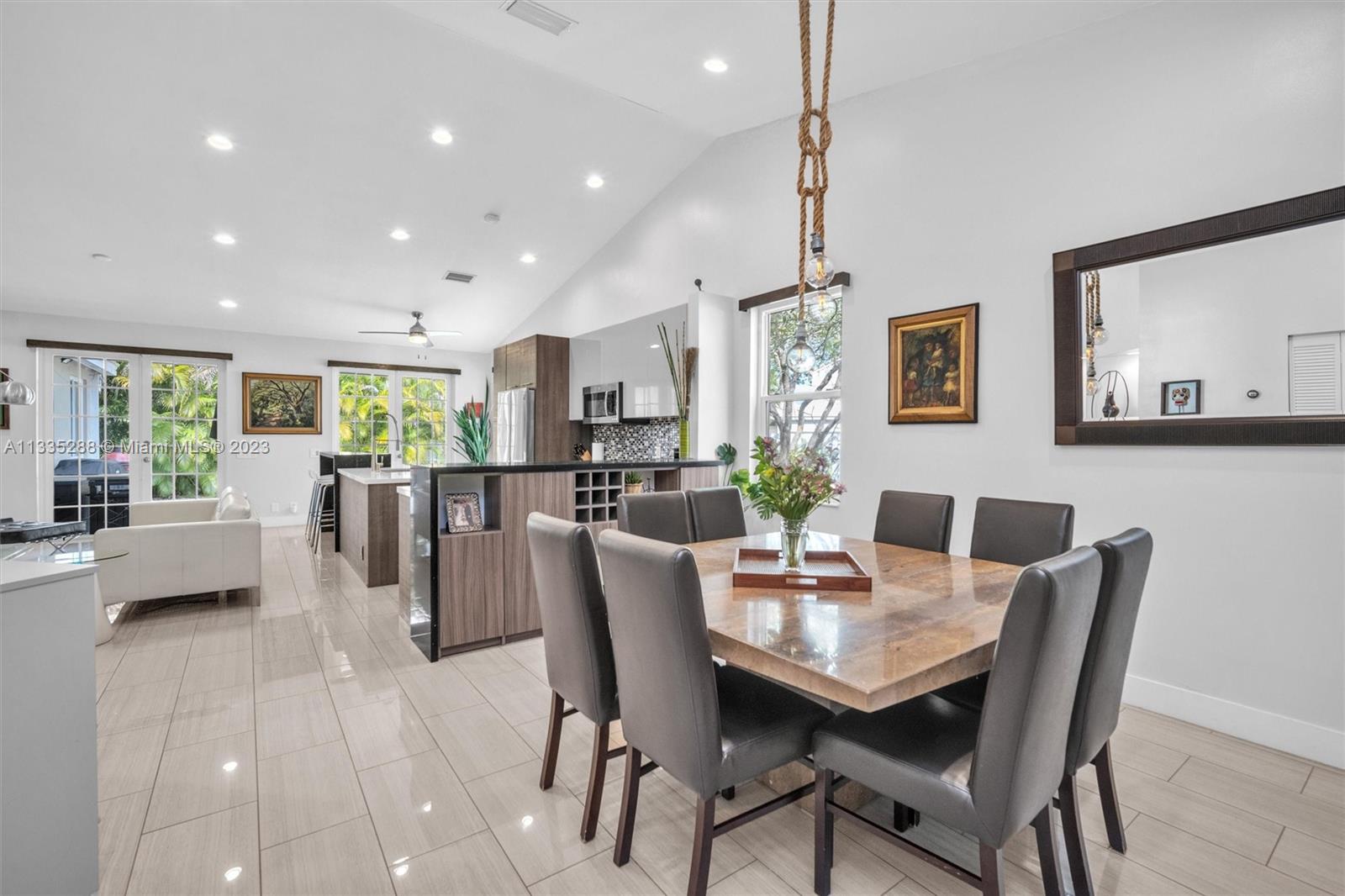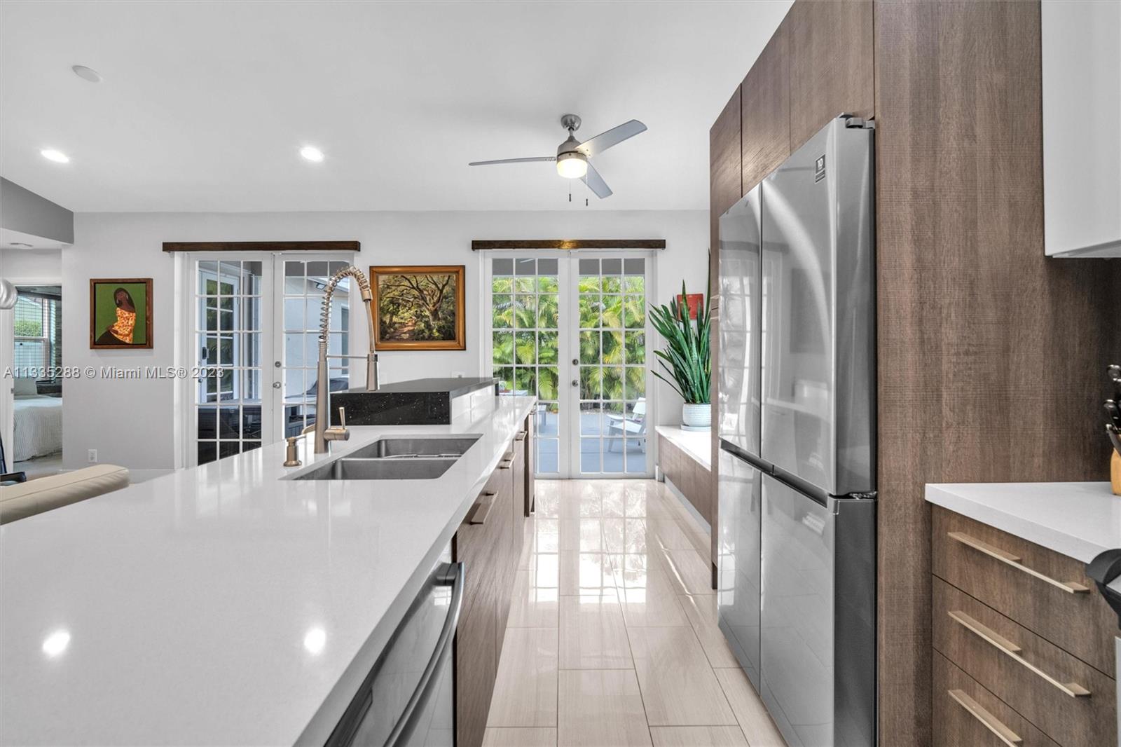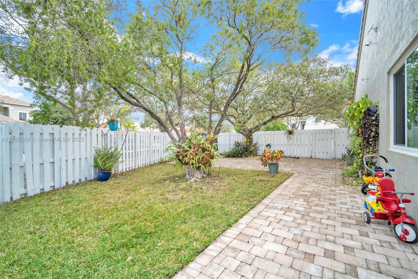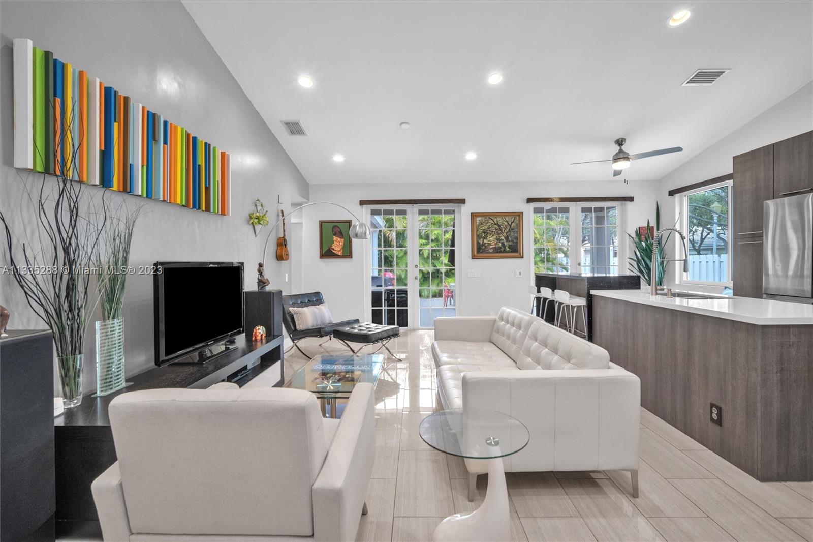 Totally renovated 3-bedrooms 2-bathroom home. ROOF & HVAC 2018. Corner lot w/ dramatic popcorn free volume ceilings, open concept Italian kitchen, designer accents including quartz waterfall edge countertops & stainless-steel appliances including new refrigerator. Tasteful porcelain floors in the main areas & the primary bedroom, laminate floors in both bedrooms. Bathrooms are updated featuring a neutral modern design. The master bathroom features a large shower with designer finishes & a dual vanity with oversized countertop space. The Falls is a 24hr surveillance-gated community, zoned for Weston's A Rated Schools. A community pool, volleyball, basketball court and tot lot complete this meticulous community. Enjoy shopping and dining all close to mayor highways for an easy commute.