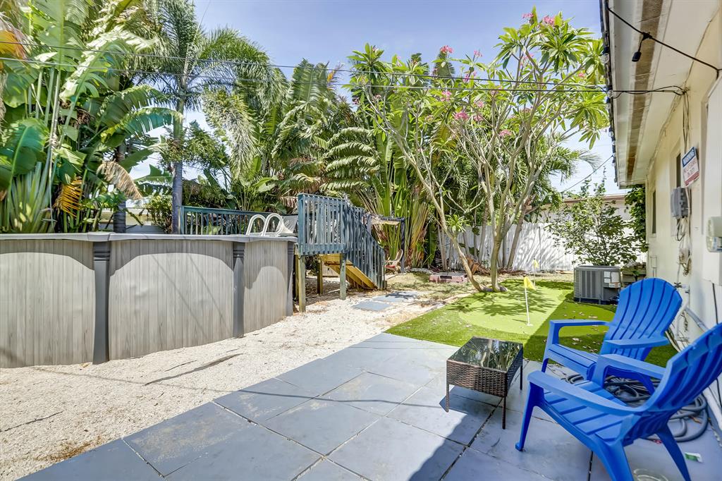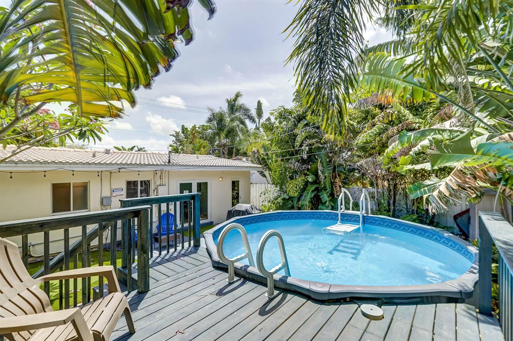 EAST FORT LAUDERDALE - POINSETTIA HEIGHTS AREA 3 BED/2 BATH with newly added above ground heated salt water pool with deck, putting green, gazebo and fire pit. Walking distance to the towns funky bars and shops. Near Beaches, Las Olas, Best Dining, Art Galleries, Museums, Live entertainment and nightlife. Minutes to Fort Lauderdale Airport.Presently an active airbnb permitted with city, furnished, turnkey