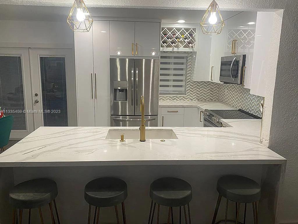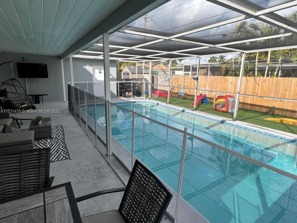 Beautifully renovated 3 bedroom + 2.5 bath single family house with converted garage that can be used as a 4th bedroom or office. Chef's kitchen with acrylic soft close cabinets, 2 Lazy Susans, pull out spice rack and utensil storage, touch activated sink and brand new kitchen appliances. Amazing master bath with 2 shower heads and floating double vanity. Whole House Water Filter System. New roof from 2020, hurricane windows and doors. Security system. Circular driveway to accommodate additional parking. Large screened in pool. Storage shed. Artificial Grass. In a great neighborhood close to the turnpike, very quiet with friendly neighbors. NO HOA.