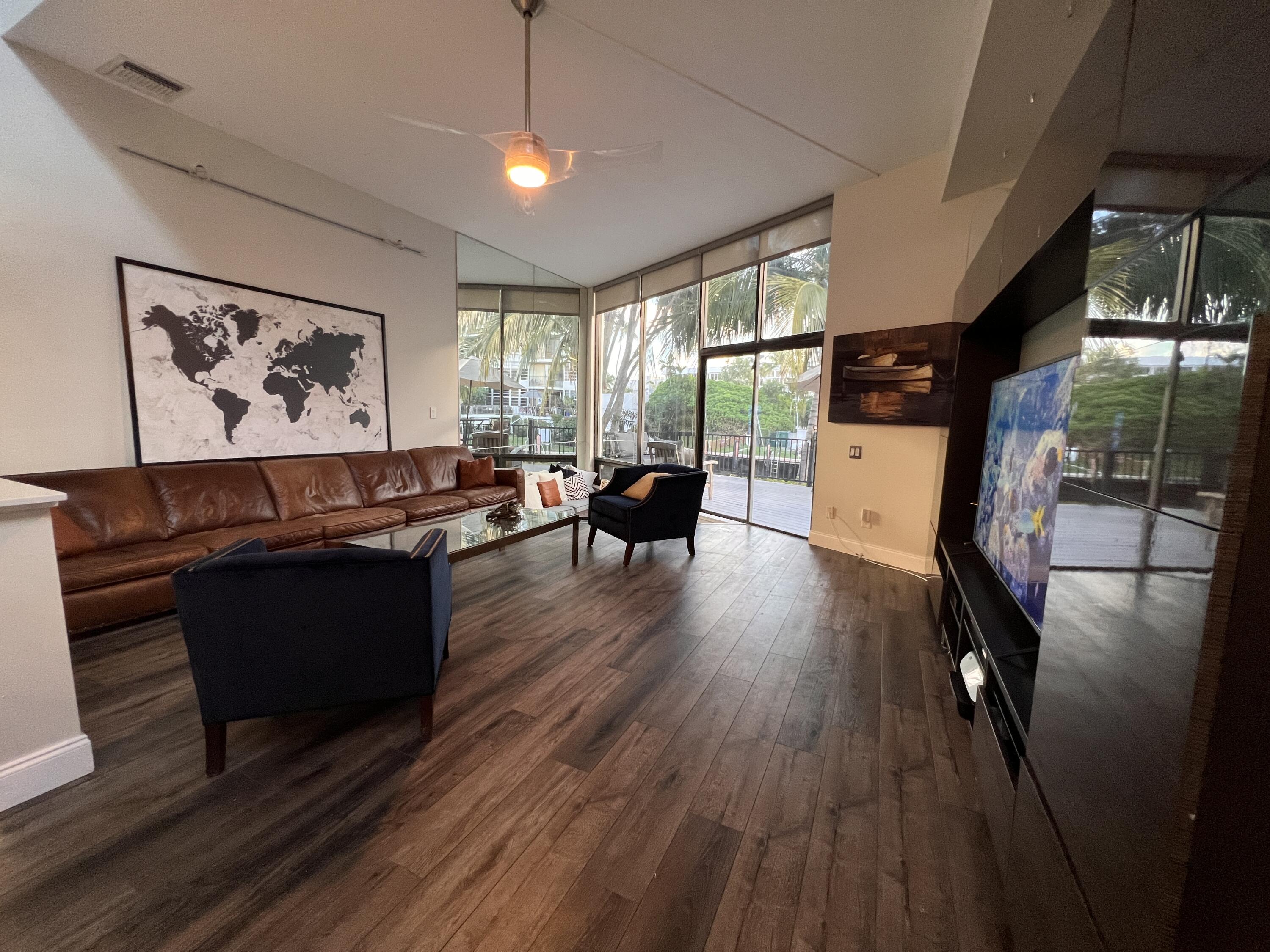 Move In and Boat Ready! Beautiful, multi-level, corner unit townhome. Enjoy your own private (aka personal) deck, a 32-foot assigned dock - NO Fixed Bridges - just steps below, and 2-car garage. This home is architecturally stunning with a modern, well-appointed, bright kitchen which looks out towards the pool and over the living room. Two spacious bedrooms located on the second floor, each featuring updated bathrooms with walk-in showers. The front bedroom has a balcony and room for a sitting area, the second bedroom overlooks the canal. The loft is on the third level and is able to accommodate a queen size bed, plus has an area for an office or another sitting area and a half bath. Kaluz and the Intracoastal Waterway are 0.1 mile away, the Lauderdale By the Sea beach is 0.7 miles away.