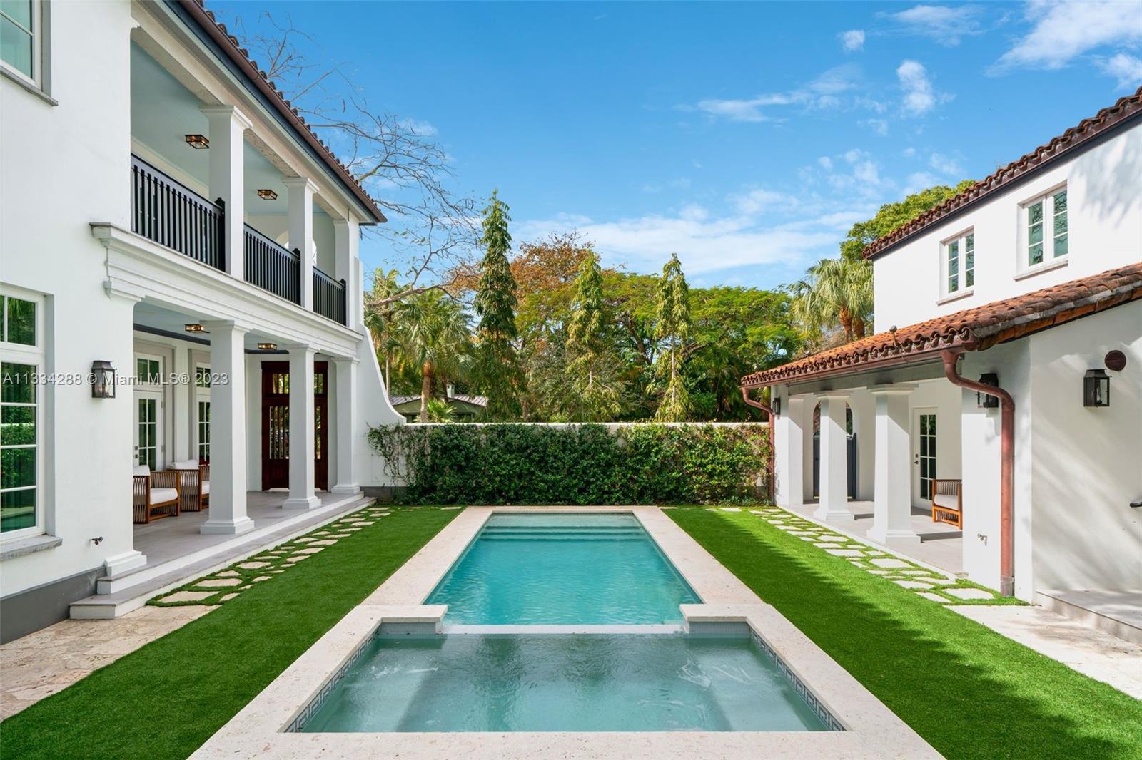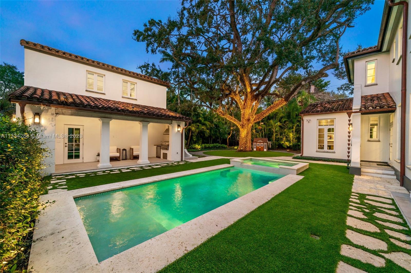 Located on prestigious North Greenway Drive in Coral Gables, the 5-bedroom, 5/1-bathroom main residence and charming guest house was the 2019 recipient of the notable Addison Mizner ICAA architectural award. The award-winning 4,813 SF home is situated on a sizable 11,000 SF lot. An impressive gourmet kitchen offers top-of-the-line appliances with a Wolf gas range and double oven, Sub-Zero refrigerator, freezer, and wine fridge. The expansive primary bedroom suite includes a separate seating area, kitchenette, and an oversized walk-in closet. The outdoor entertainment area features a beautiful heated saltwater pool with spa and a fully-equipped summer kitchen with built-in barbecue. Additional features include a whole house generator and covered terraces overlooking the backyard.