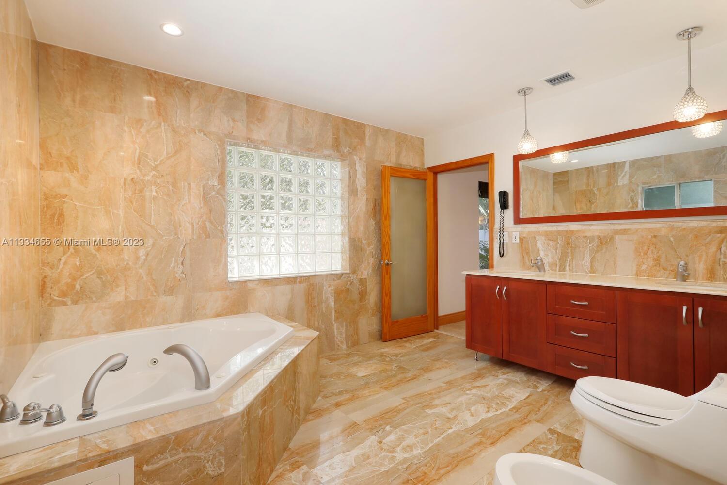 Lovely home set on an expansive lot (18,000 SF) and surrounded with lush tropical landscaping. Located in the coveted Village of Pinecrest, recognized as one of the most beautiful neighborhoods in South Florida. Custom kitchen with wood cabinetry, granite countertops, stainless appliances, wine refrigeration, cooking island, and breakfast nook. Light-filled living spaces feature formal living, dining, and family room that overlooks the sparkling pool, covered patio, and oversized yard. Pinecrest is known for its highly rated schools, nearby shopping & dining and its many public parks including Pinecrest Gardens: a 20-acre botanical garden with winding trails & children’s play areas.