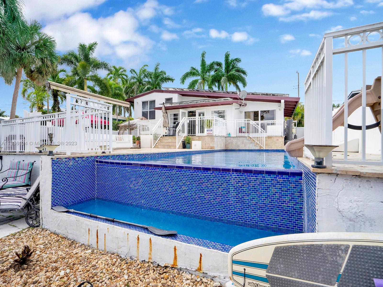 Waterfront Tri level Home in sought after Lauderdale Isle's community this property is Very Well Maintained, Freshly Painted throughout, Beautiful Brazilian Wood Leaded Glass Doors with Colored Glass, New Dock, Large saltwater heated pool, recently installed solar panels, 65 ' of Waterfront Ocean Access (55' Clearance No Fixed Brid), 3 Bedrooms 2 Baths, WetBar, Split Bedroom Plan, Community has boat ramp, Yatch Club Membership available, Centrally located to Downtown, I-95,595, Turnpike, Hard Rock * * EASY TO SHOW * * *