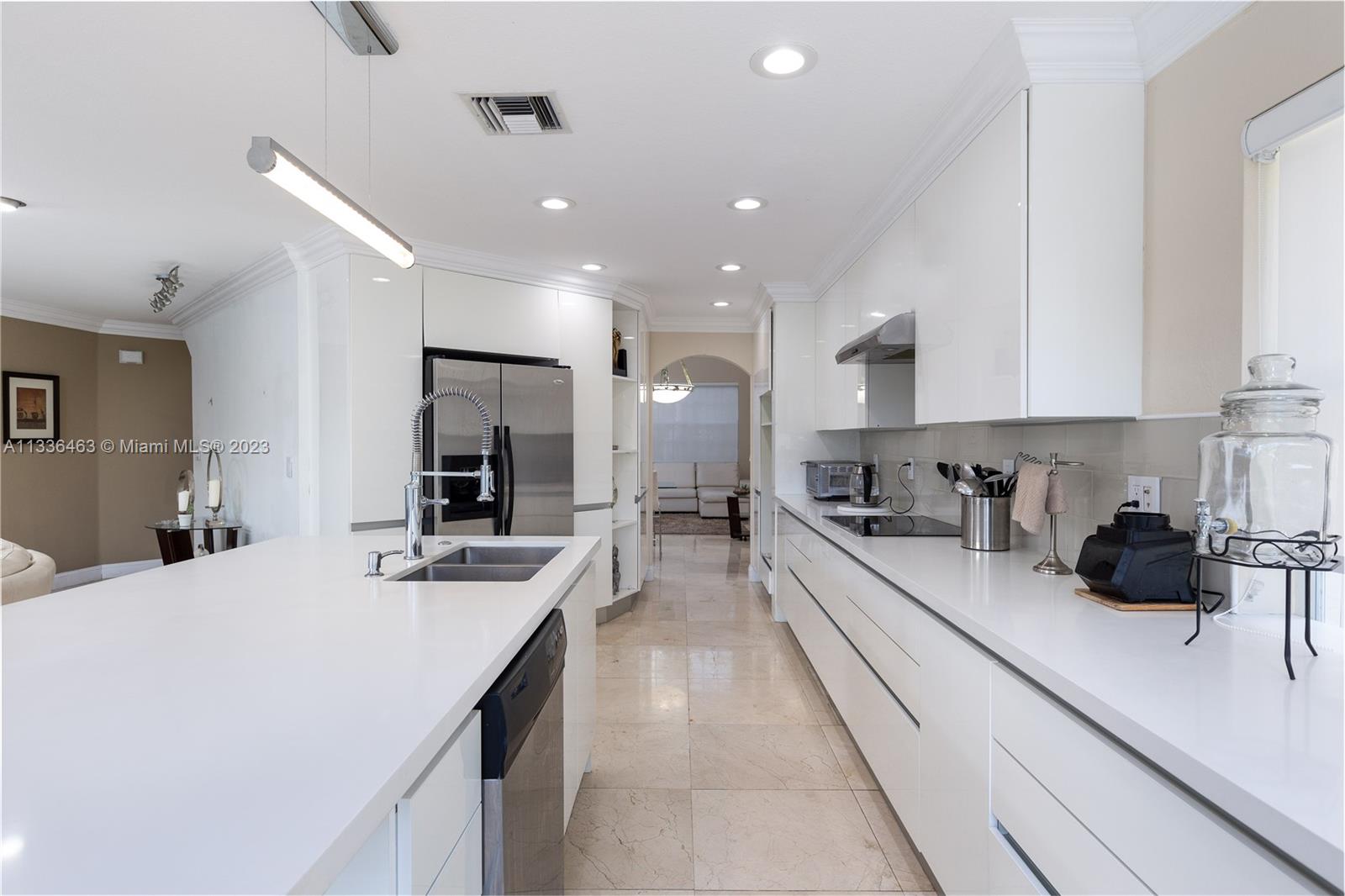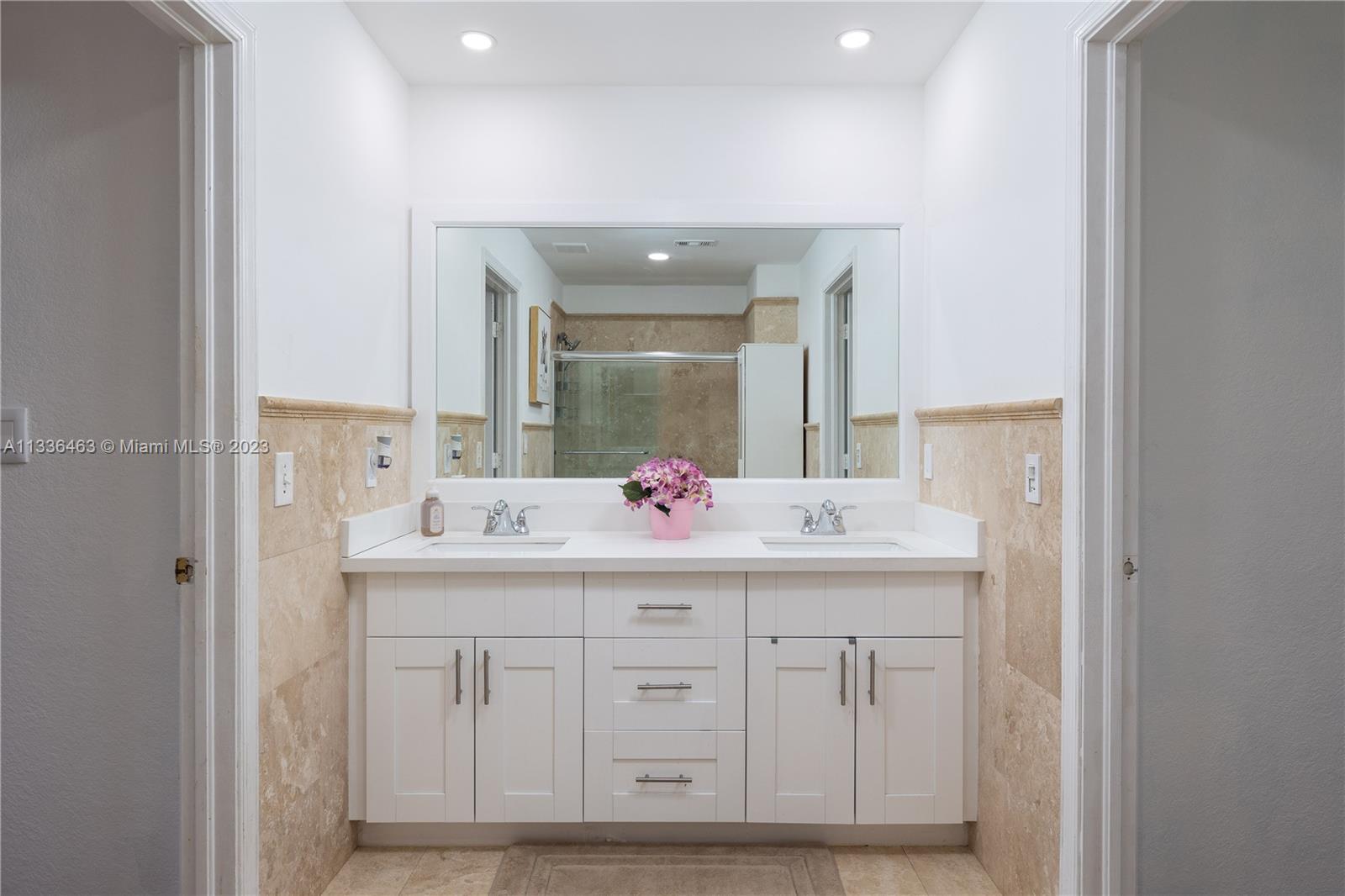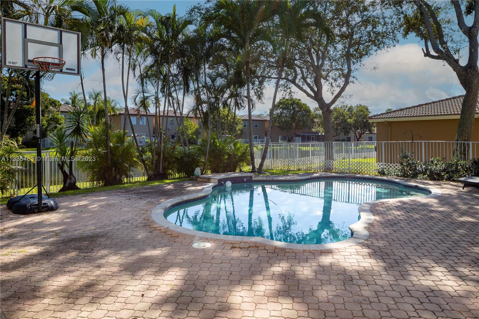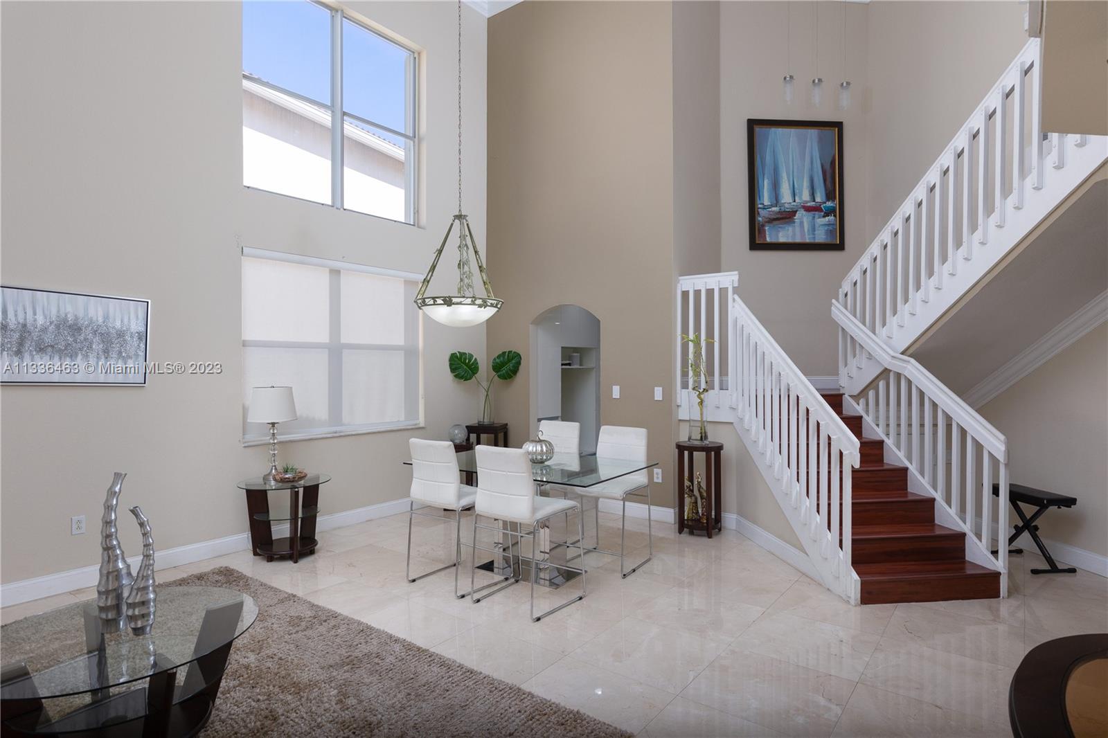 **Back on the market**& **priced right**. The current buyer stepped back-no inspection has been done-. Owners are downsizing. Some furniture was custom made and can stay: bedroom 1st-floor wall shelf & closet and, master wall closet. The house has been well taken care of and the family loved it. Most of the features that made the house unique are first-floor marble throughout; amazing white cabinets & quartz counters, custom-made kitchen w/a lot of storage space; 1 bedroom and 1 full bathroom downstairs used as an office, it was originally conceived to be an inlaws-or guest room). The patio and the pool have great potential, just imagine this environment with an outdoor kitchen, BBQ, and gazebo to enjoy the sunny days and the fresh breeze during winter days. Don't wait, call for details!!