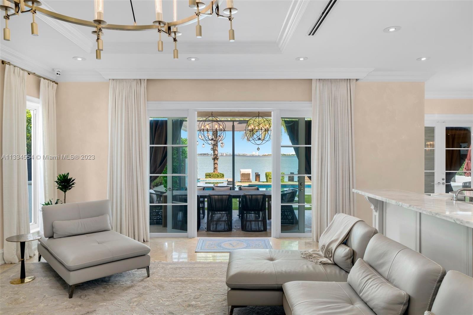 PRICE ADJUSTMENT. Reduced by $1.5M. Seller Will Entertain Reasonable Offers! This Gated Waterfront Home is a classic design located on a Venetian lsland dead-end street. Enjoy the ultimate Miami lifestyle with unobstructed north wide bay views and the Miami Skyline. With 65’ Open Water Frontage, the private dock can accommodate 2 boats. This 7 bedroom, 7.5 bathroom + Home Office is just under 6000 SF of indoor living space on a 9100 SF lot. There is a gracious living room / dining room and a large kitchen / family room. The primary bedroom suite is approx. 1000 SF with a large walk-in closet and a private balcony. Marble floors run throughout the house. The spacious outdoor living space includes a heated pool, jacuzzi, outdoor kitchen and dining room plus a separate entertaining area.