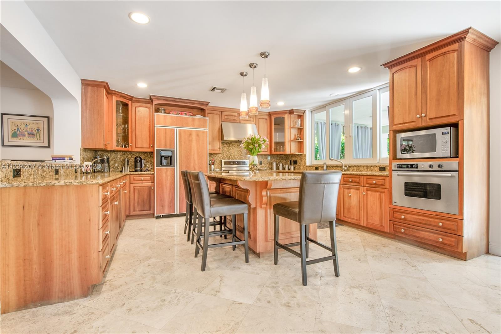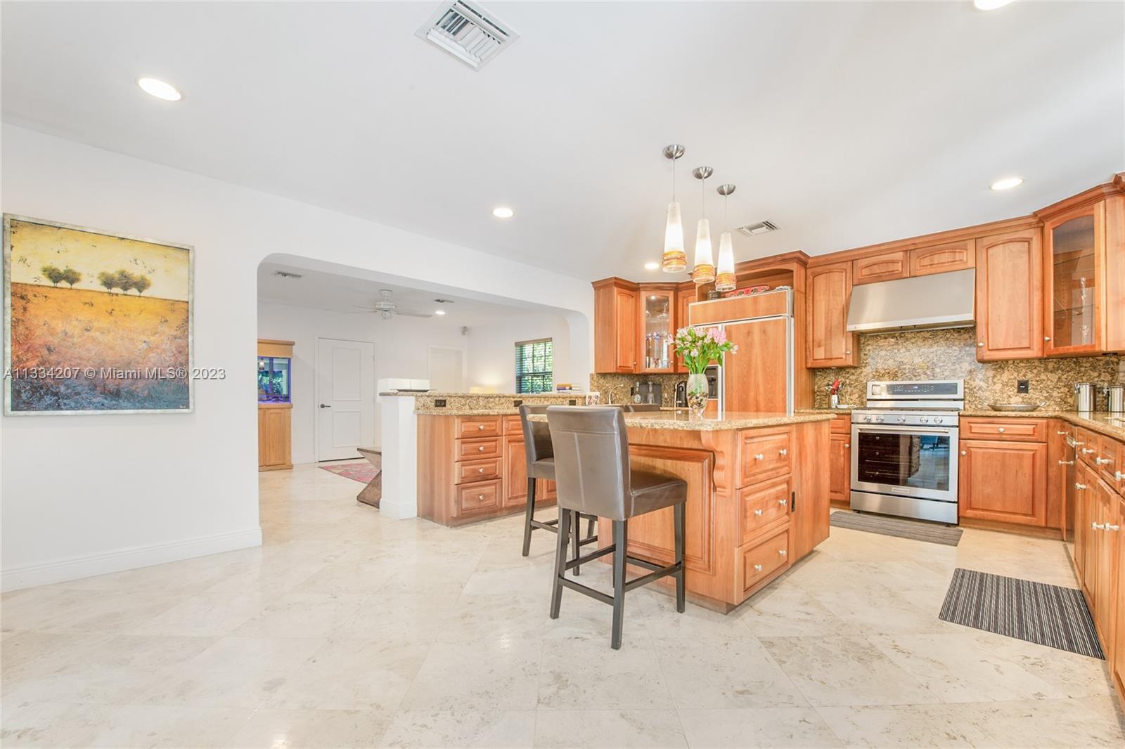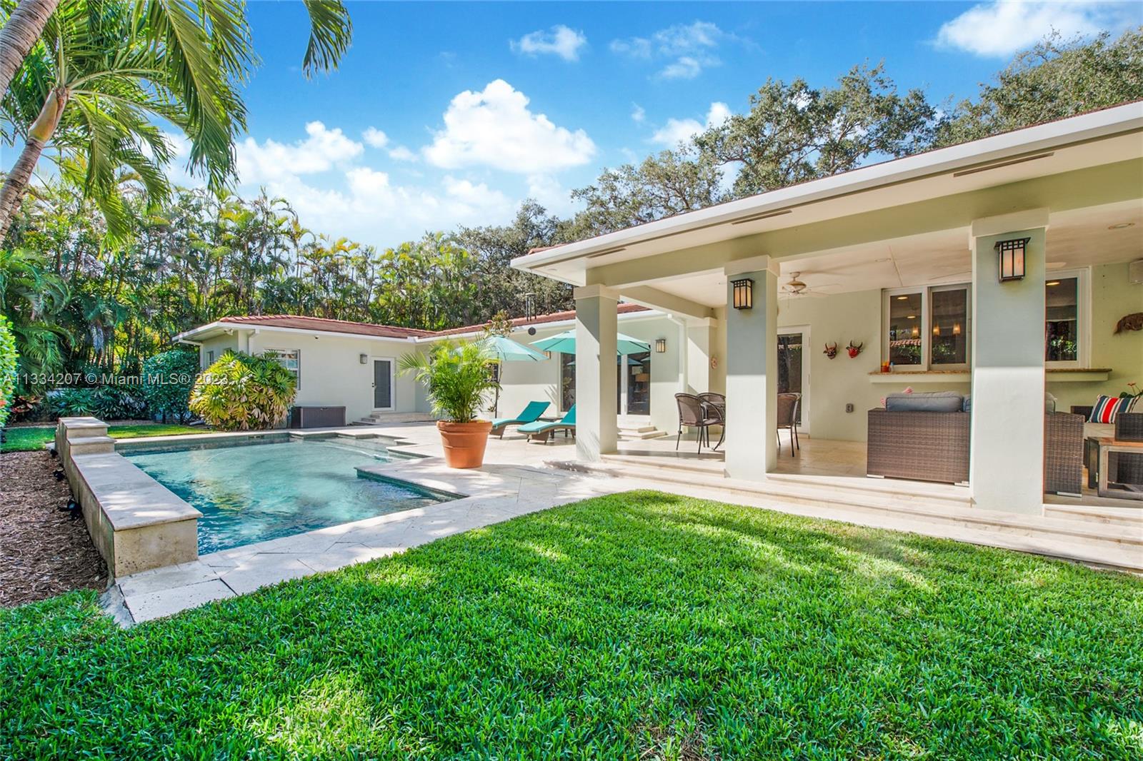 Situated on one of South Gable’s loveliest tree-lined streets, this bright and cheery Florida classic aesthetic blends modern updates with Gables charm and versatility. Numerous living spaces for entertaining and beautiful updates, impact window & doors, roof 2 years old, recently painted in and out and custom pool with fountains and heater. Other features include a wood burning fireplace, plantation shutter window treatments, marble floors and large chef kitchen with gas stove and 2 sinks. This home also has a very large patio off the kitchen and a private and pristinely manicured oversized 12k sqft lot. Come see for yourself and fall in love with this wonderful 3bedroom 2.5 bath pool home 2 car garage on a great location for scenic walks over one of Coral Gables waterway bridges.
