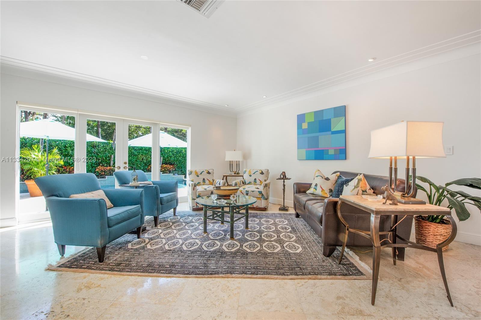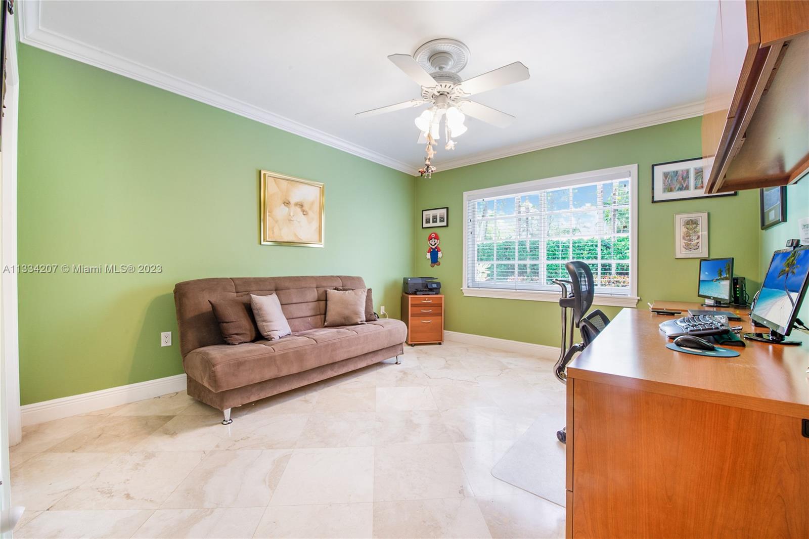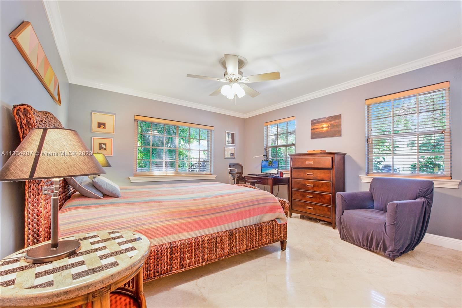 Situated on one of South Gable’s loveliest tree-lined streets, this bright and cheery Florida classic aesthetic blends modern updates with Gables charm and versatility. Numerous living spaces for entertaining and beautiful updates, impact window & doors, roof 2 years old, recently painted in and out and custom pool with fountains and heater. Other features include a wood burning fireplace, plantation shutter window treatments, marble floors and large chef kitchen with gas stove and 2 sinks. This home also has a very large patio off the kitchen and a private and pristinely manicured oversized 12k sqft lot. Come see for yourself and fall in love with this wonderful 3bedroom 2.5 bath pool home 2 car garage on a great location for scenic walks over one of Coral Gables waterway bridges.