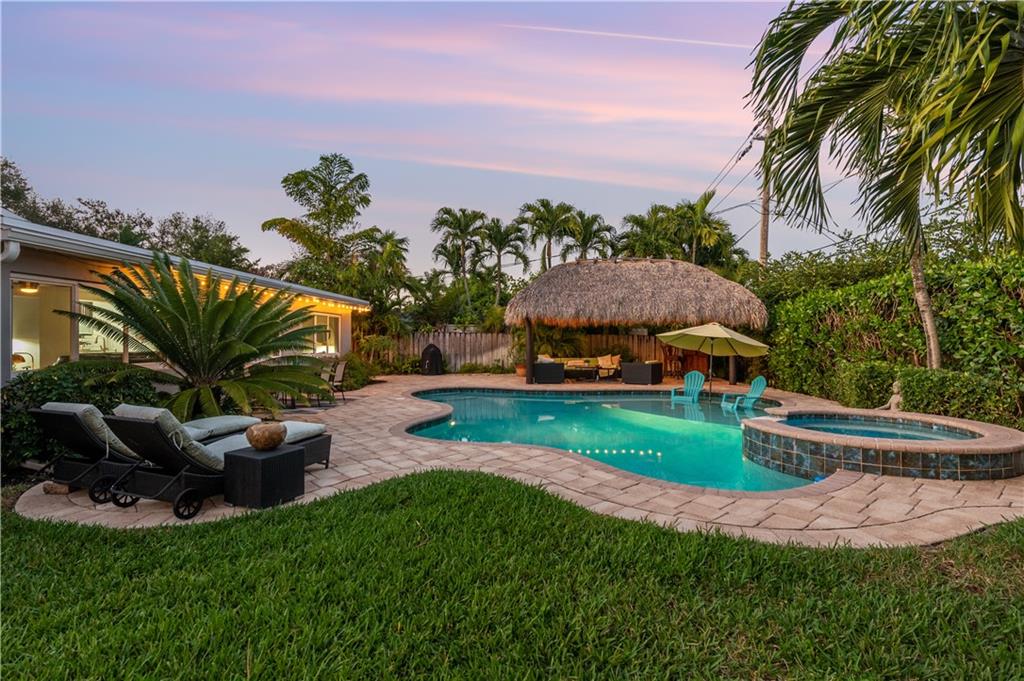 Beautiful Tropical Oasis nestled in the Prestigious Imperial Point area. Move-in-ready home features a tropical landscape, large swimming pool with sun shelf, oversized in-ground hot tub flowing into the pool, outdoor heated pool shower and covered bar. Spacious 3 bed 2 bath home offers two dining areas, large walk-in pantry accessible to kitchen, beautifully updated kitchen with granite countertops, top of the line appliances, large breakfast bar for seating, indoor laundry room, multiple living areas, wood look tile, updated bathrooms, recess lighting and so much more. This home comes with a metal roof and hurricane impact doors and windows. New exterior paint and landscaping gives the perfect curb appeal. All cast iron piping has been replaced with PVC. This home is ideal!