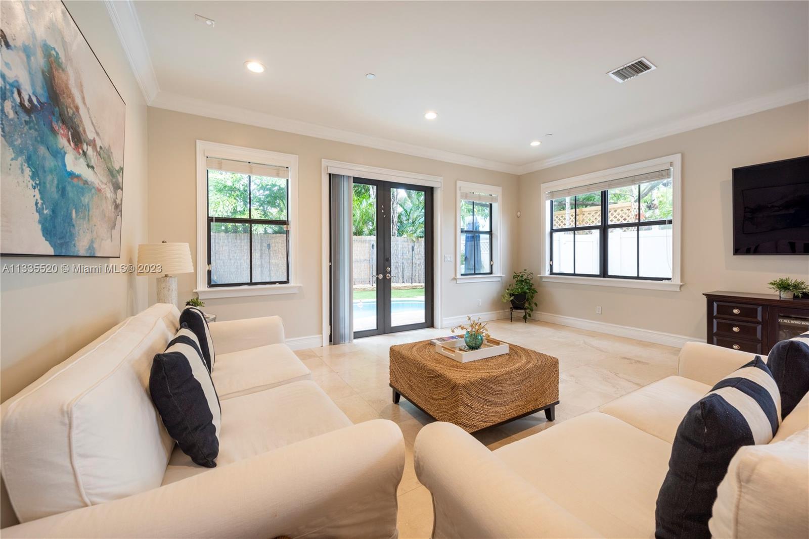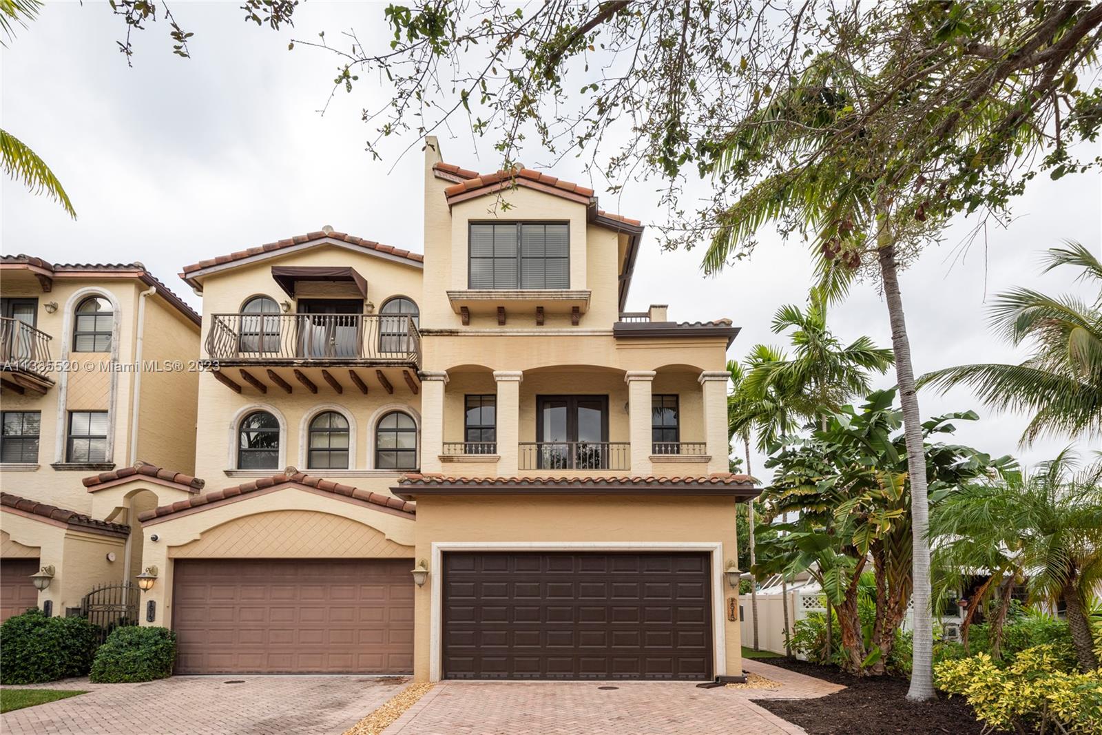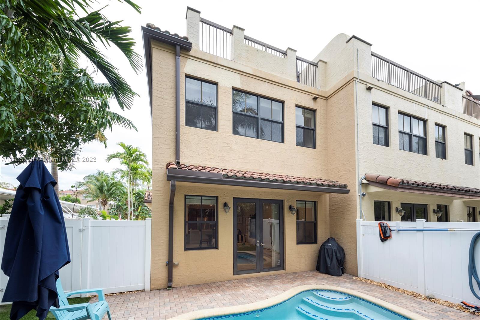 Nestled against the backdrop of swaying palms and the glow of orange/pink sunsets find this stunning tri-story end unit townhome located in sought after Coral Ridge. Inside you're greeted by soaring ceilings & a bright, flowing layout. The kitchen will bring out your inner chef w/new smart appliances, well planned quartz work surfaces & island. The second floor contains the primary bedroom w/dual walk-in closets, a spa-like bath w/jetted tub to help melt the day's stress away and a 2nd bedroom that spills onto an open-air balcony. Up the stairs or via the elevator, the 3rd floor has a bedroom w/vaulted ceiling, a full bath as well as an open living area and huge wrap around porch. Just off the main level a private pool rounds out this fantastic property. NO HOA & daily rentals allowed!