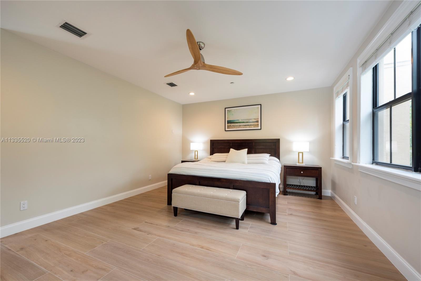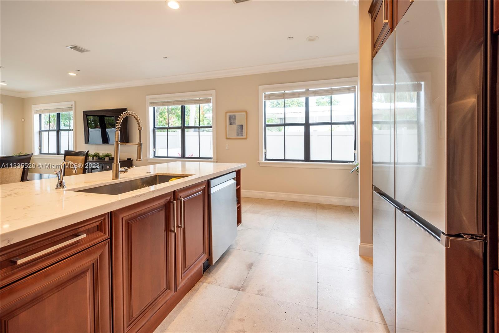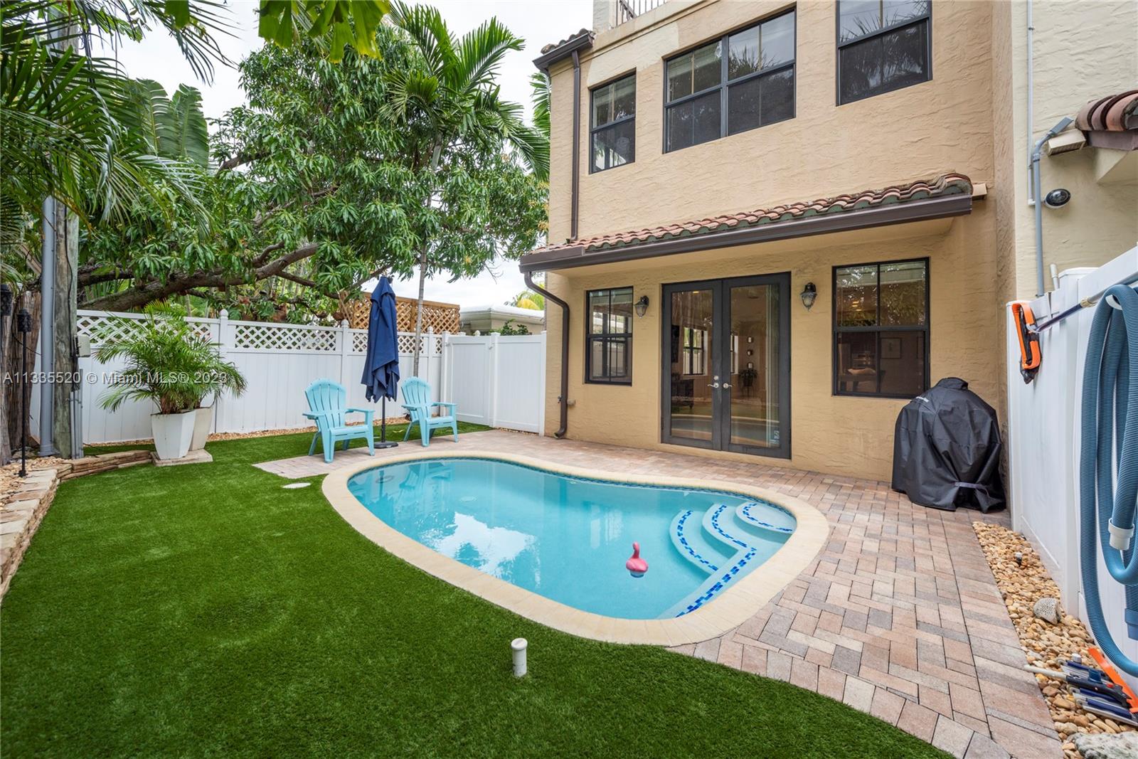 Nestled against the backdrop of swaying palms and the glow of orange/pink sunsets find this stunning tri-story end unit townhome located in sought after Coral Ridge. Inside you're greeted by soaring ceilings & a bright, flowing layout. The kitchen will bring out your inner chef w/new smart appliances, well planned quartz work surfaces & island. The second floor contains the primary bedroom w/dual walk-in closets, a spa-like bath w/jetted tub to help melt the day's stress away and a 2nd bedroom that spills onto an open-air balcony. Up the stairs or via the elevator, the 3rd floor has a bedroom w/vaulted ceiling, a full bath as well as an open living area and huge wrap around porch. Just off the main level a private pool rounds out this fantastic property. NO HOA & daily rentals allowed!