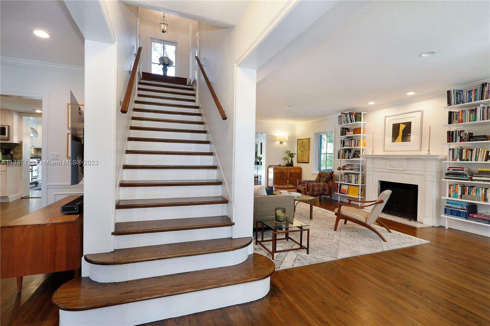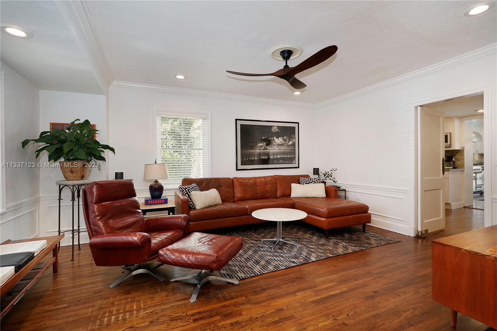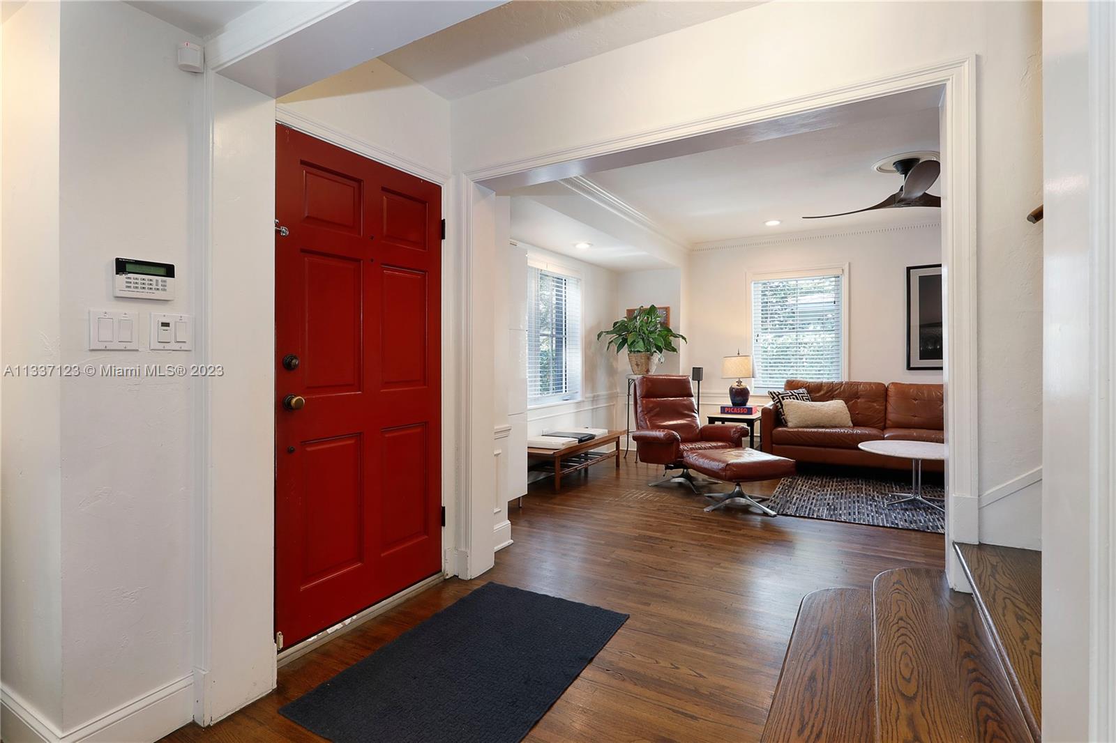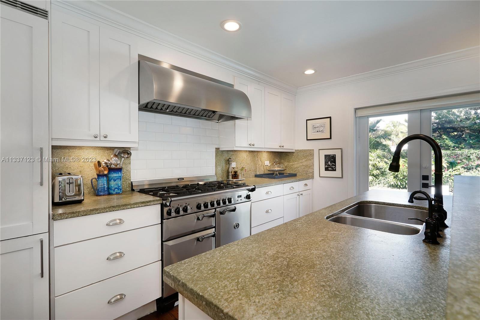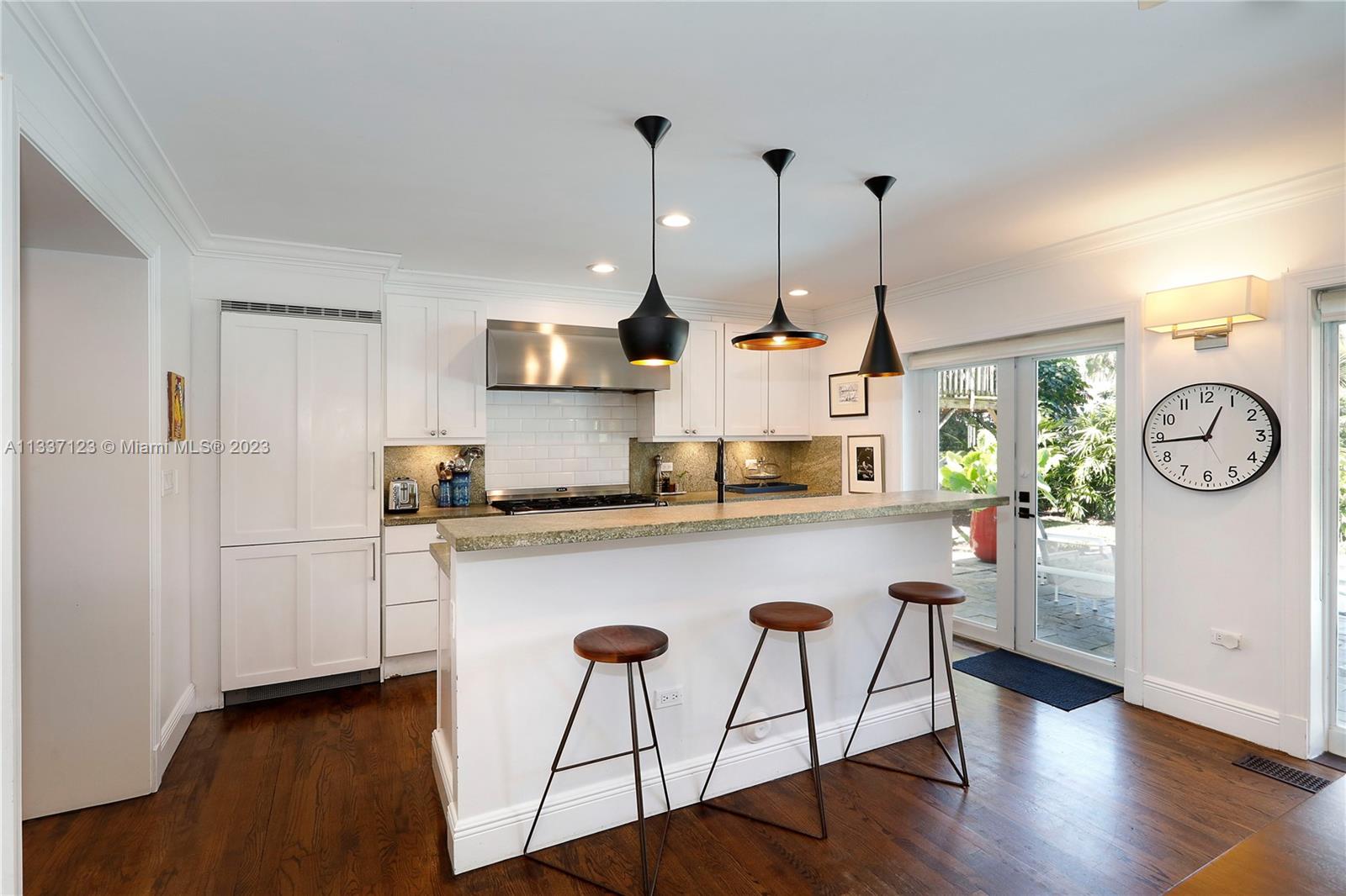 Perfectly located in the heart of the Golden Triangle, this elegant 3 bedroom, 3.2 bathroom Colonial home features a traditional floorplan with fabulous spaces for living &entertaining! The foyer entry leads to an ample living room with fireplace plus sunny Florida room to one side & formal dining room to the other. To the back of the home, overlooking the pool & patio area, the family room opens to the gorgeous white kitchen with high-end appliances including 48” Aga range, & ample butler’s pantry! Upstairs you will find the primary suite with private terrace & 2 additional bedrooms as well as 3 beautifully upgraded bathrooms. Spectacular features include heated saline pool, honed marble counters, wood floors, dental molding, wainscoting, & impact glass windows & doors throughout.