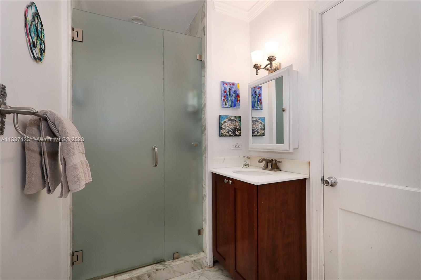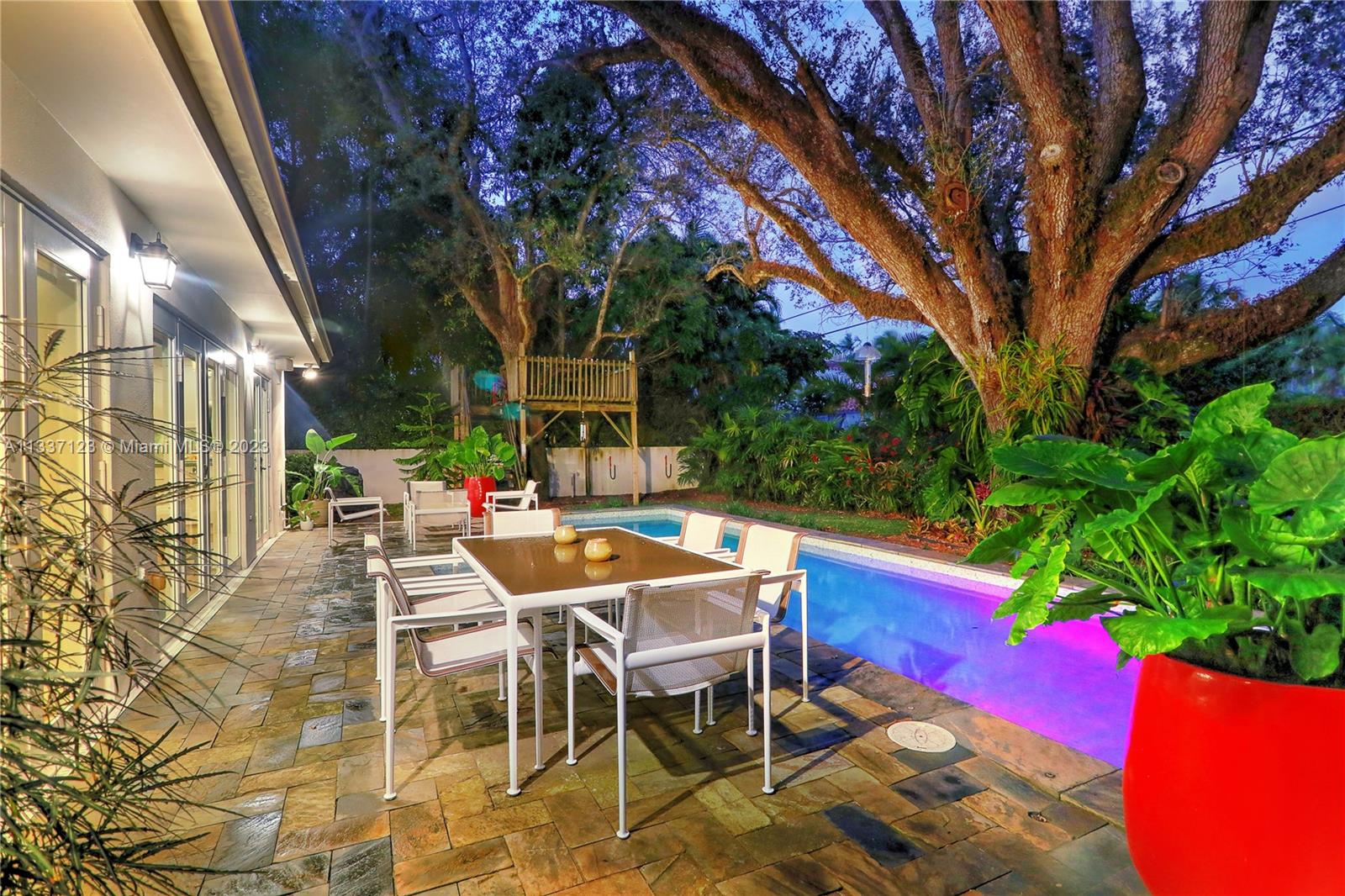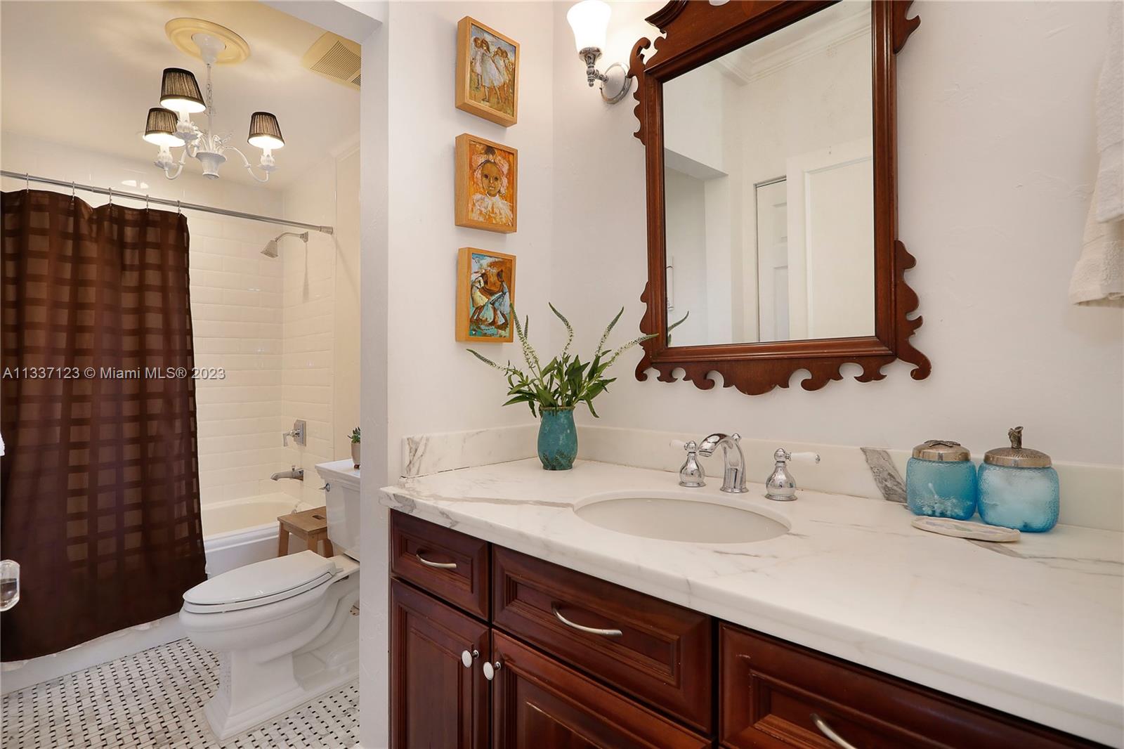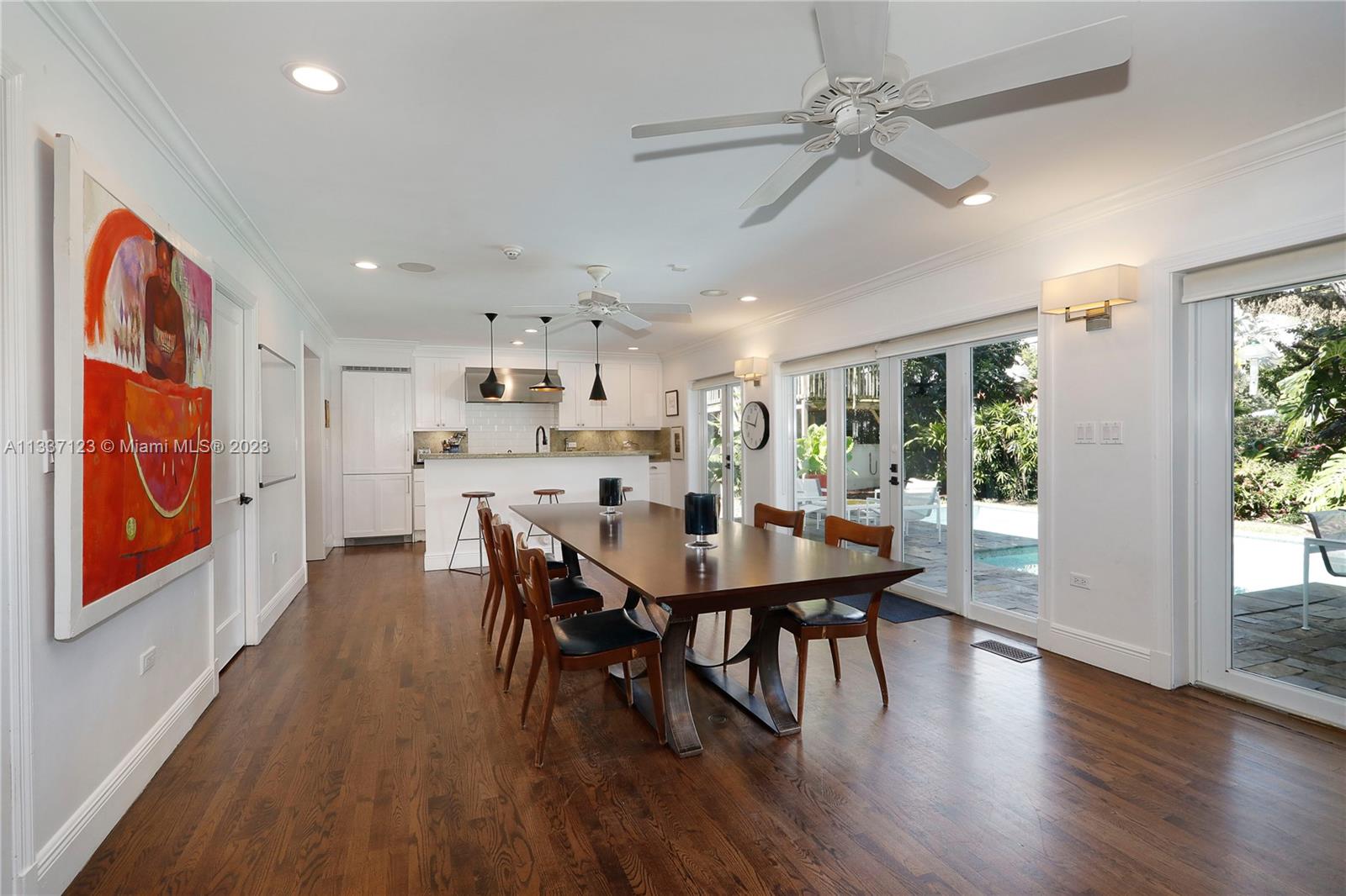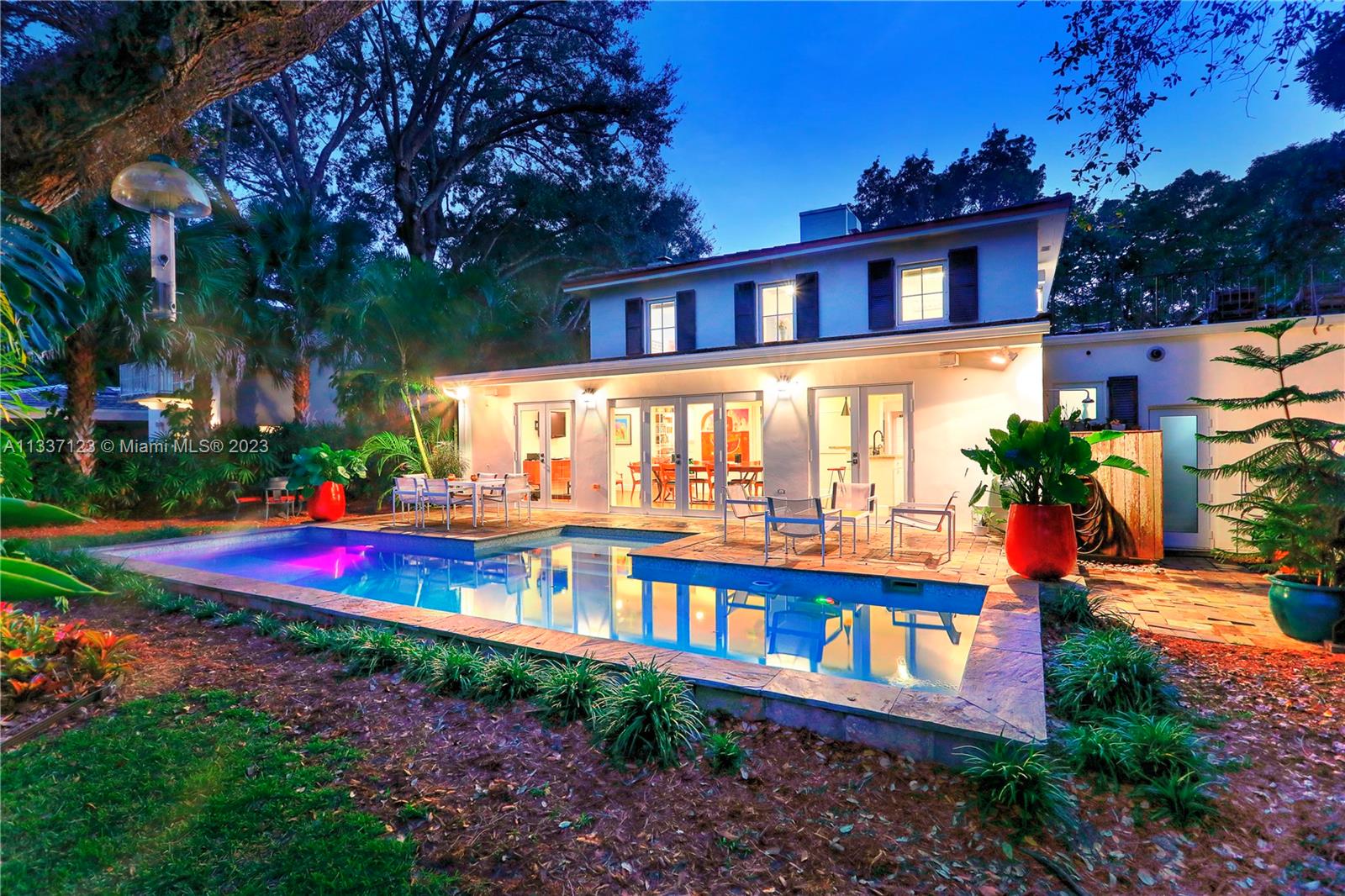 Perfectly located in the heart of the Golden Triangle, this elegant 3 bedroom, 3.2 bathroom Colonial home features a traditional floorplan with fabulous spaces for living &entertaining! The foyer entry leads to an ample living room with fireplace plus sunny Florida room to one side & formal dining room to the other. To the back of the home, overlooking the pool & patio area, the family room opens to the gorgeous white kitchen with high-end appliances including 48” Aga range, & ample butler’s pantry! Upstairs you will find the primary suite with private terrace & 2 additional bedrooms as well as 3 beautifully upgraded bathrooms. Spectacular features include heated saline pool, honed marble counters, wood floors, dental molding, wainscoting, & impact glass windows & doors throughout.