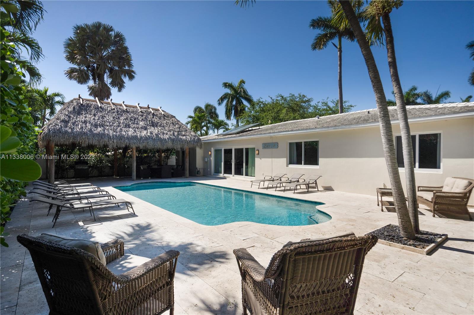 THIS STUNNING 4 BED 3 BATH TURN KEY HOME SITS ON BEAUTIFUL TREE LINED HISTORIC HARRISON ST HOLLYWOOD FL, JUST A FEW BLOCKS WALK FROM THE BEACH AND DOWNTOWN HOLLYWOOD. THE LARGE FITTED KITCHEN HAS DBL DOOR FRIDGE FREEZER, DISHWASHER, UNDER CABINET ICE MAKER, 6 BURNER GAS STOVE, MARBLE COUNTER TOPS WITH BREAKFAST BAR. OPEN PLAN LIVING ROOM, WOOD FLOORS THROUGHOUT. MASTER BED WITH DBL VANITY EN SUITE, ALL BATHROOMS ARE FULLY TILED FLOOR TO CEILING. FITTED CEDAR CLOSETS IN ALL BEDROOMS. PRIVATE SECLUDED BACKYARD, TRAVERTINE POOL DECK, LARGE HEATED POOL, HUGE 37X15 TIKKI HUT WITH LIGHTS, FANS, 65" TV AND CONNECTION FOR JACUZZI GREAT FOR ENTERTAINING / RELAXING, IMPACT WINDOWS, CONCRETE TILED ROOF WITH HURRICANE TIE DOWS. AND MATURE LANDSCAPING FOR EXCLUSIVITY