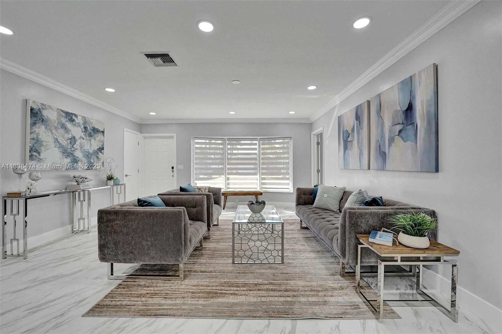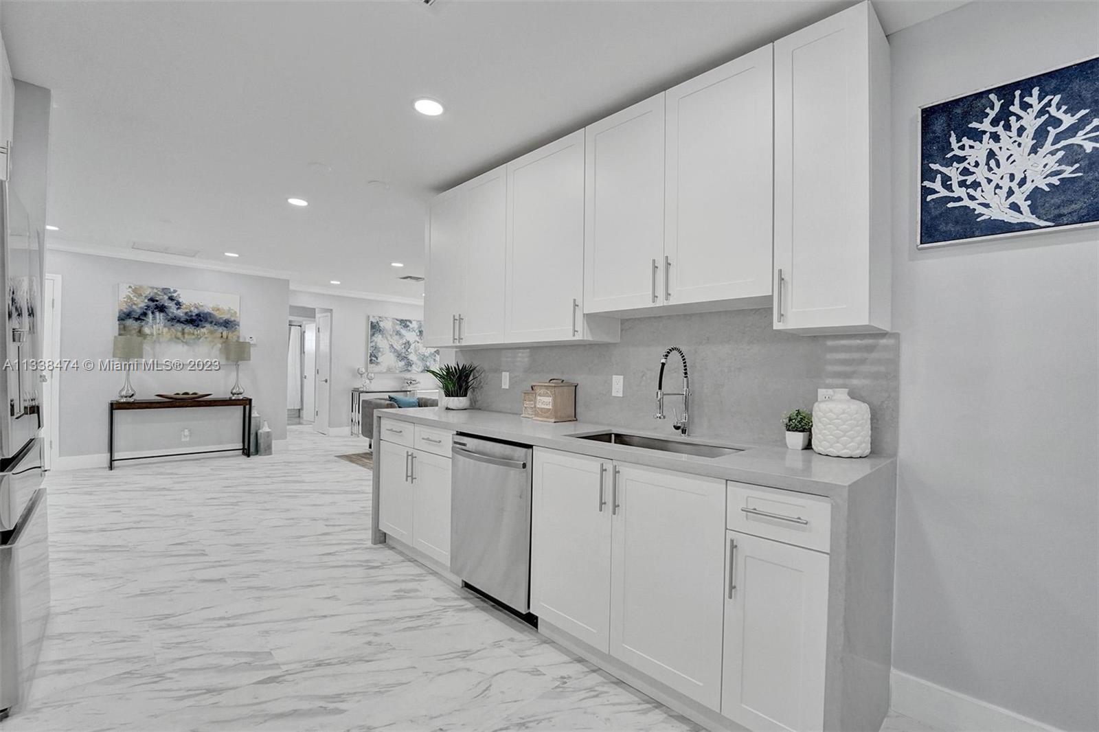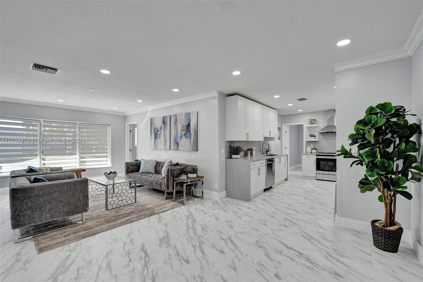 Wow! Totally Brand New Modern Remodeled 4/2 in Hallandale Beach with private pool! House has brand new flooring throughout! New Open Kitchen w/ stainless steel appliances, white cabinetry and Gray Slate Quartz Countertops! All New Modern bathrooms with modern vanities and marble covered showers! House has hurricane impact windows throughout! New Custom Blinds! New Lighting throughout! Large backyard with private pool! 5 Minute bike ride to the Beach and 10 minute walk to House of Worship! This is the best deal in Hallandale Beach to get a brand new totally remodeled home with pool and a great price! Priced to Sell!!